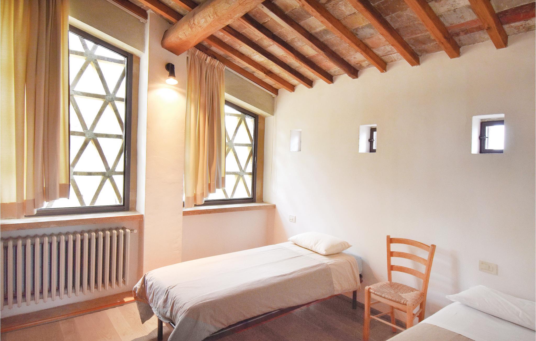 Bondekompleks bestående af et bondehus, oprindelig er et udsigtstårn fra det 15. århundrede, en lille kirke fra det 18. århundrede, en forhenværende lade (ITC829) og to uafhængige landlige bygninger (ITC907 + 525). Ved siden af ejerens hus ligger i hoveddelen af komplekset også to dejlige dobbelthuse (ITC952 og ITC243); laden er uafhængig. Ejendommen har gennemgået en opmærksom og omhyggelig renovering, indretningen er på et optimalt niveau, specielt udformet med et lyst design med rette linjer. Hver af lejlighederne har sat-tv og private udendørs områder med udstyr. Tilkørslen til huset sker ad en 1 km lang grusvej. I har en fælles vaskemaskine i et siderum. Alle boligerne har en komfortabel indretning. I kan låne en babyseng, hvis I spørger. Ejendommen har en skøn beliggenhed på bakkerne i nærheden af Poggibonsi (3 km, butikker af enhver slags). I er her på en egn, der indbyder jer til at slappe af og føle jer godt tilpas. Afstande: Firenze 40 km, Siena 25 km, San Gimignano 12 km.