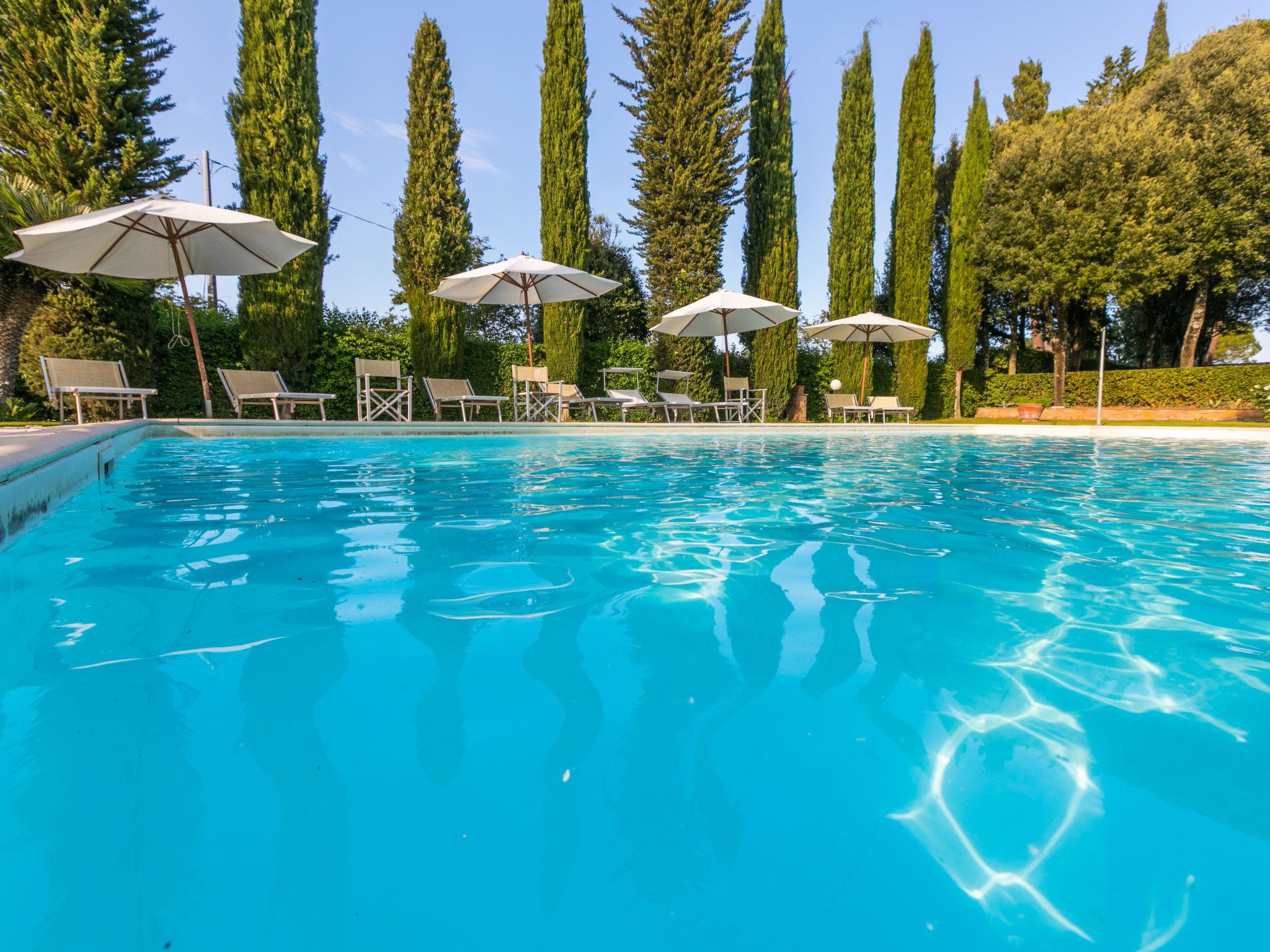 Cosy country house "Giuggiolo", surrounded by trees and vineyards. 3 houses in the residence. 4 apartments in the residence. In the hamlet Casaglia 4 km from the centre of Poggibonsi, 11 km from the centre of San Gimignano, 30 km from the centre of Siena, in a sunny position, in the countryside. For shared use: large, beautiful garden 5'000 m2 (fenced) with plants and trees, meadow, swimming pool (14 x 7 m, depth 120 - 160 cm, seasonal availability: 02.May. - 03.Oct.). Terrace, pool maintenance by the owner/gardener. Heating to be paid on the spot (01.Nov. - 31.Mar.). 800 m long motor access to the grounds (via unmade road). Parking on the premises. Supermarket 2 km, railway station "Poggibonsi" 4 km. Please note: residence with electric gates. The owner lives in the same residence. Wine tasting in a wine cellar near San Gimignano 17 km away 1x per stay included (on request).