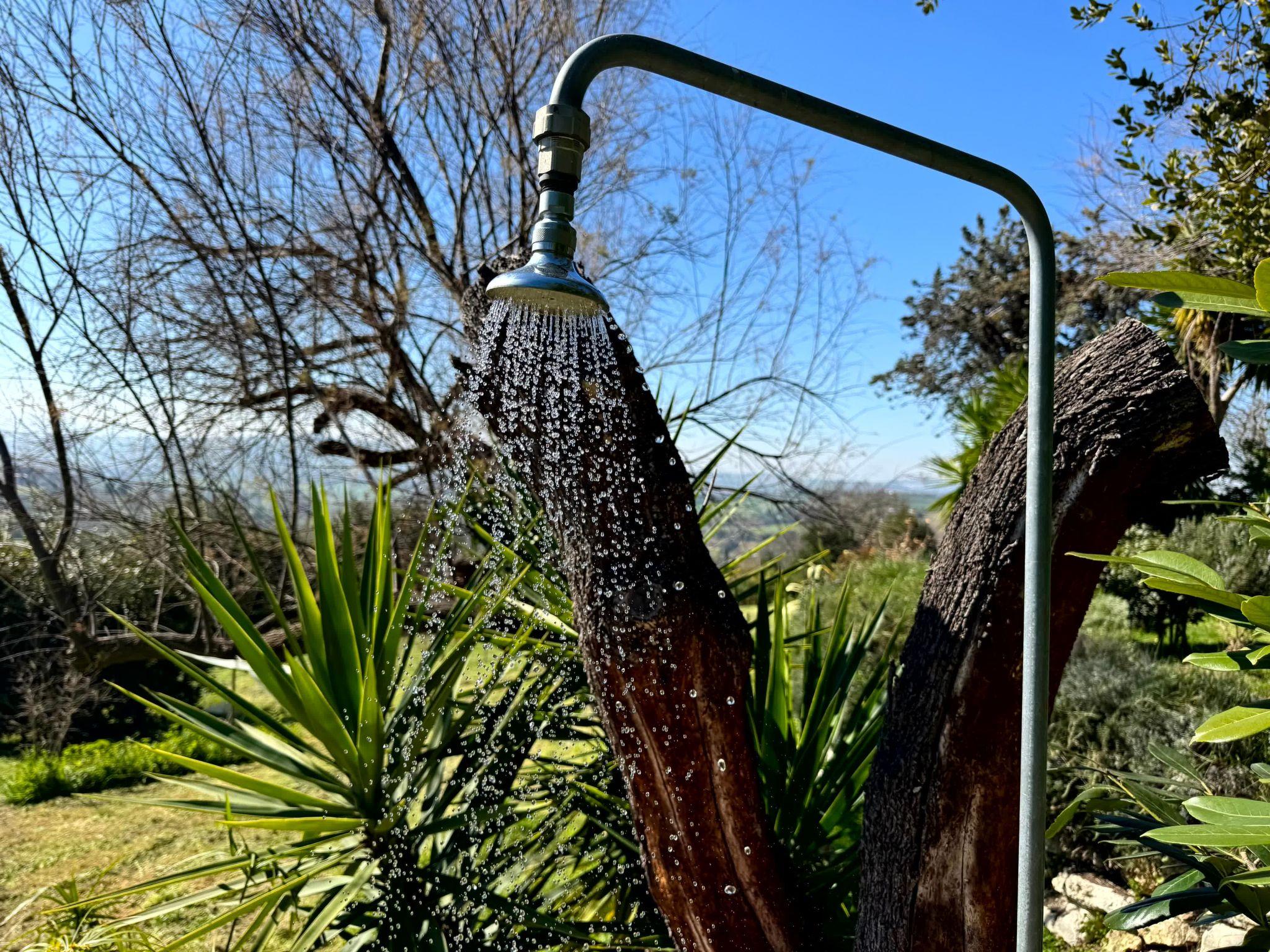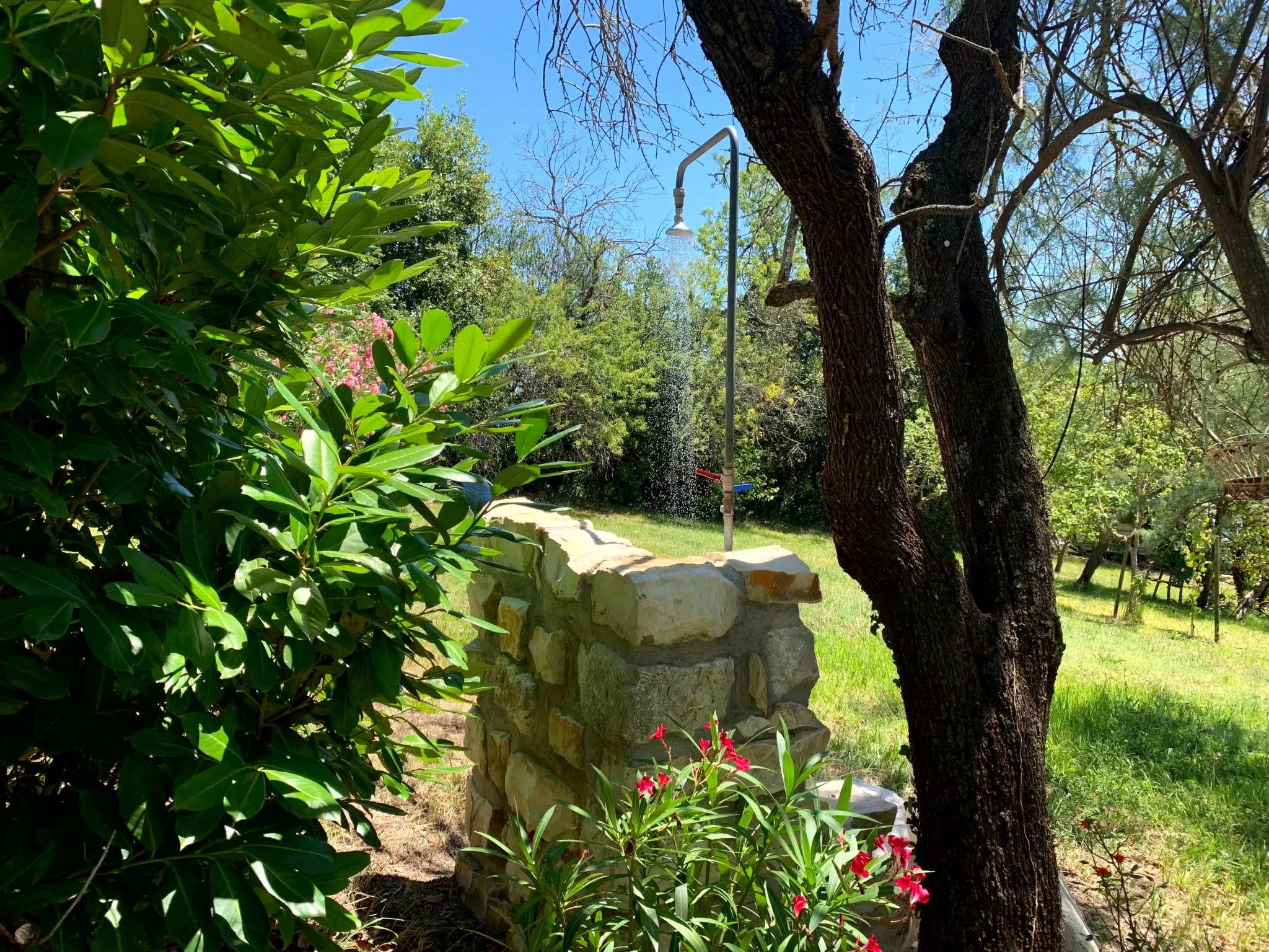 In the private garden area there are tables, chairs, parasols and sun loungers, as well as a barbecue and an outdoor shower. With its own lavender field, vines, fruit and almond trees, pine trees and olives, the 5000 square metre garden is an oasis with plenty of opportunities to relax.