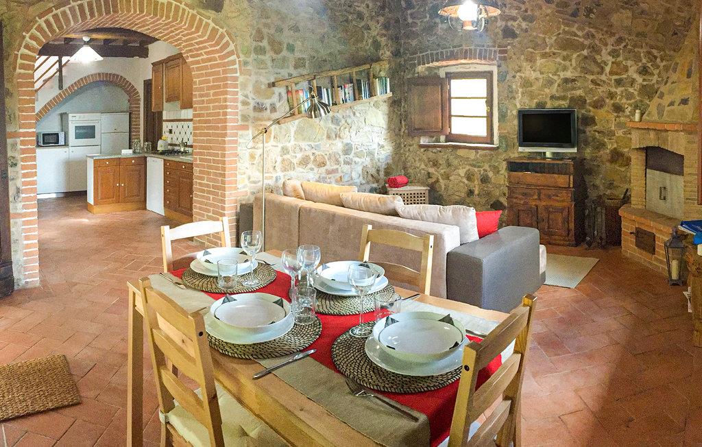 Dette historiske stenhus har en smuk beliggenhed midt i malerisk natur. I de indbydende værelser, hvor moderne møbler møder traditionelle elementer, vil I føle jer hjemme fra den allerførste dag. Uanset om I laver mad sammen eller sidder komfortabelt sammen i stuen efter en dejlig dag, omgivet af bart murværk, kan I virkelig forkæle jer selv her. En pejs skaber en særlig hyggelig atmosfære.
