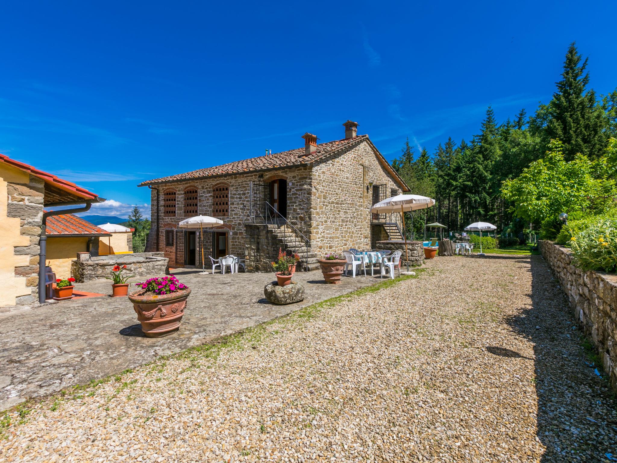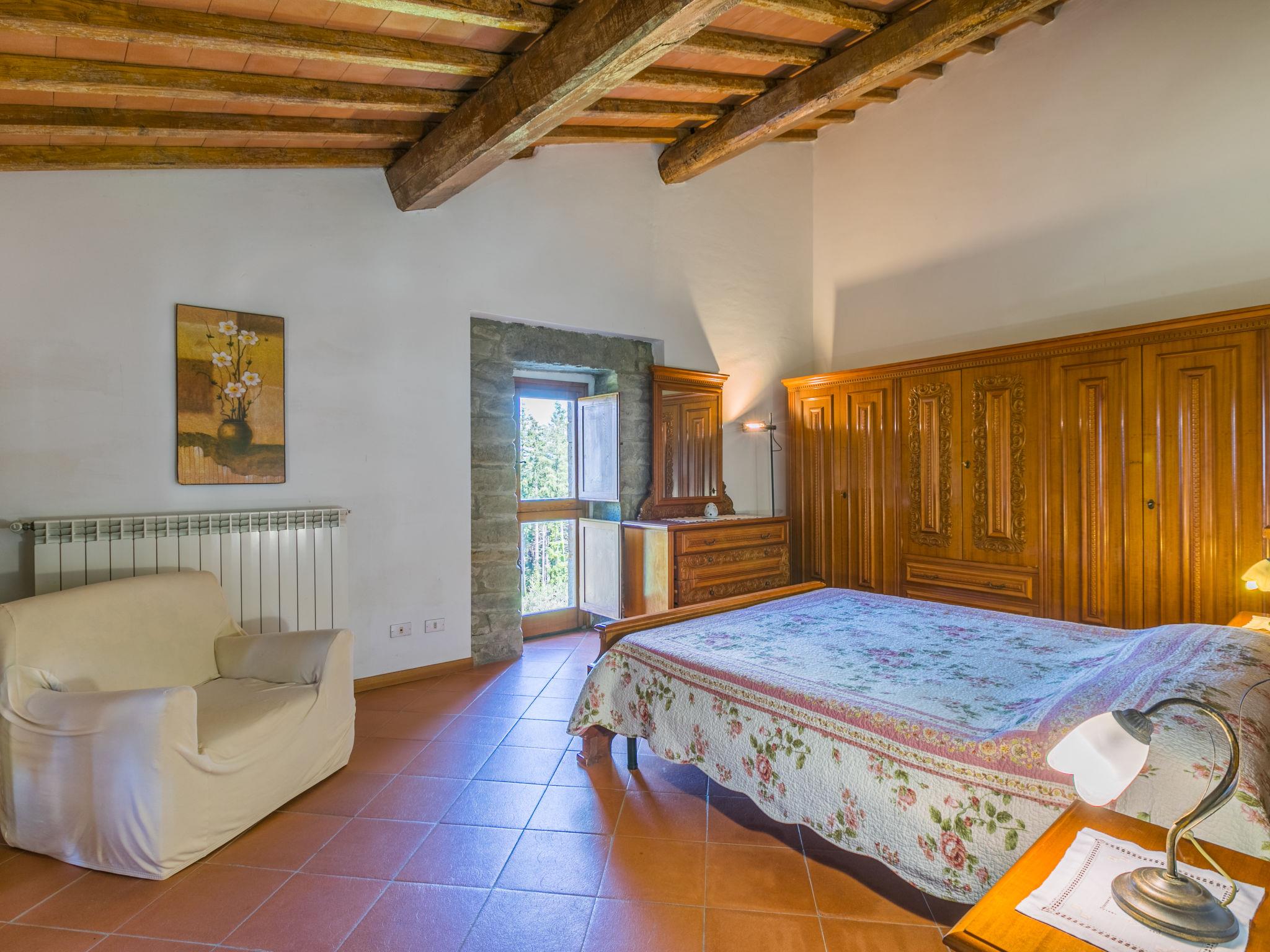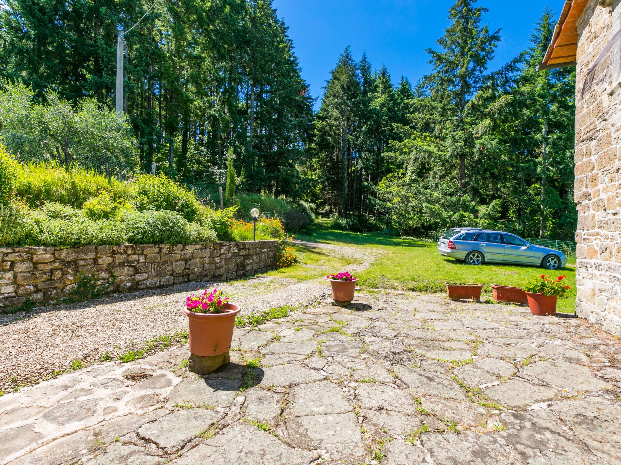 Certina is made up of 2 buildings: the owner's house and another building with 4 independent apartments. The buildings are surrounded by a stone courtyard. Thers is a wood with firs, pines, olive trees and chestnut trees and paths for walking or mountain biking. Very old country house "Certina", 510 m a.s.l., renovated, surrounded by trees. 13 km from the centre of Pontassieve, 30 km from the centre of Firenze, in a quiet, elevated position on top of a hill, in the countryside. For shared use: property 33 ha, garden, swimming pool fenced (6 x 12 m, depth 130 - 160 cm, seasonal availability: 06.May. - 23.Sep.) with internal staircase. Outdoor shower, barbecue. Private: terrace, garden furniture. In the house: central heating system, washing machine (for shared use), heating to be paid on the spot, heating available only from 01.Nov. - 07.Apr.. Linen change weekly. Room cleaning on request (extra). Motor access to the house (1 km via unmade road). Parking at the house. Shop 5 km, restaurant 7 km, bus stop 4.7 km, railway station "Pontassieve" 13 km.