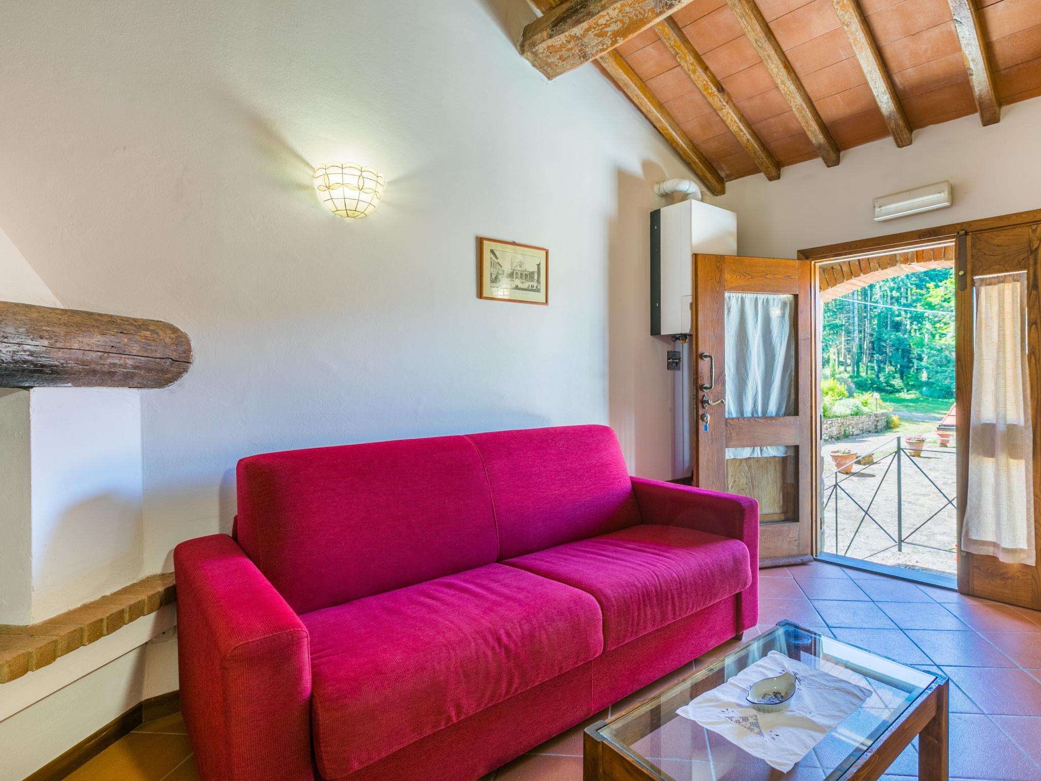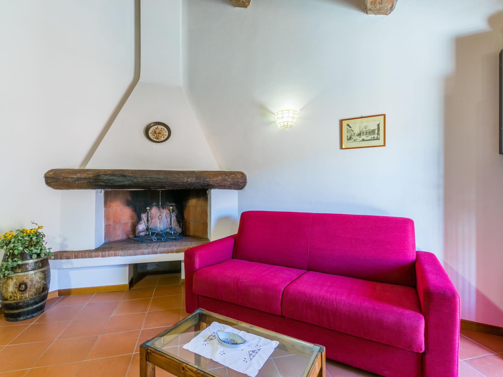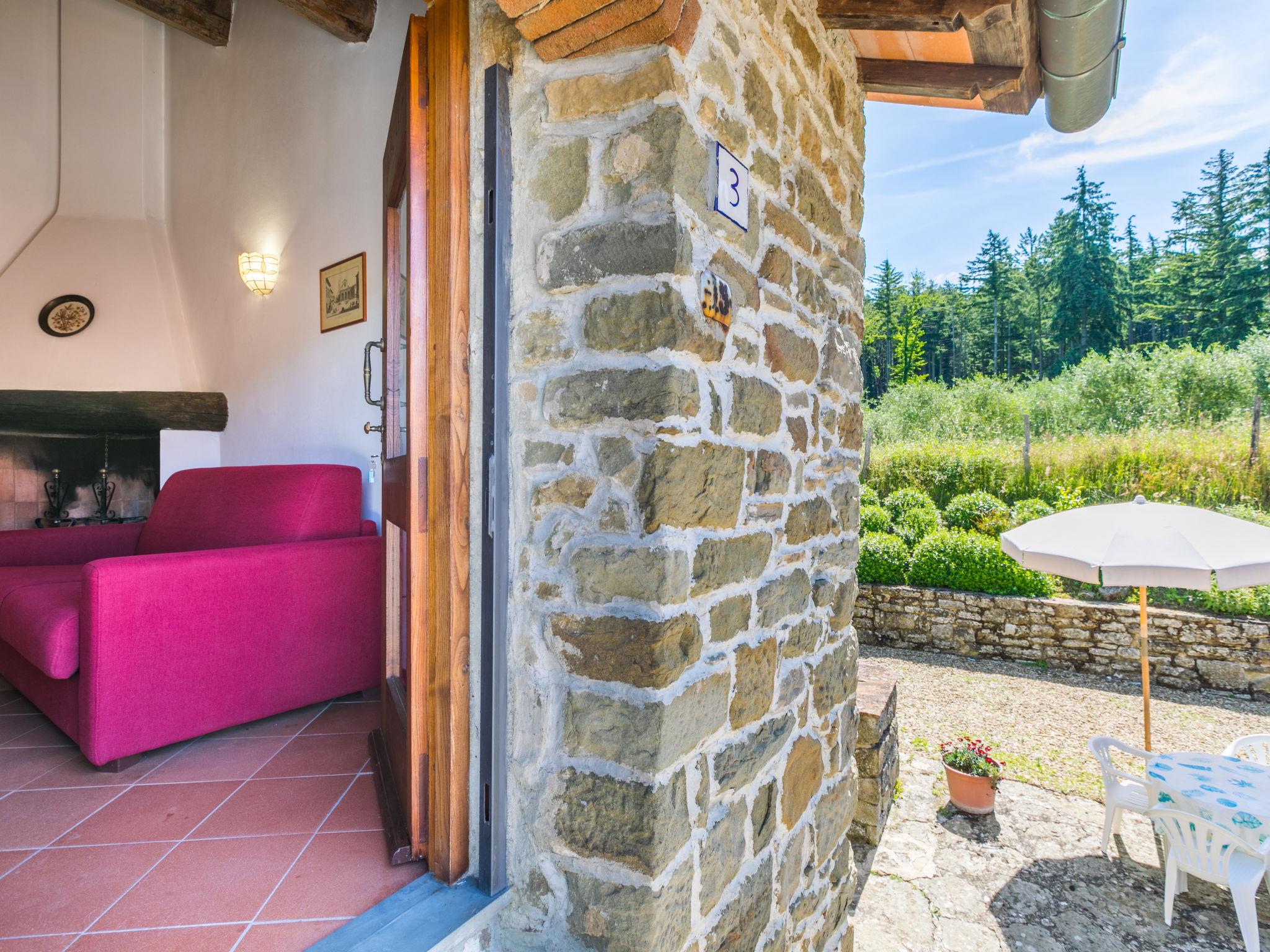 Certina is made up of 2 buildings: the owner's house and another building with 4 independent apartments. The buildings are surrounded by a stone courtyard. Thers is a wood with firs, pines, olive trees and chestnut trees and paths for walking or mountain biking. Very old country house "Certina", 510 m a.s.l., renovated, surrounded by trees. 13 km from the centre of Pontassieve, 30 km from the centre of Firenze, in a quiet, elevated position on top of a hill, in the countryside. For shared use: property 33 ha, garden, swimming pool fenced (6 x 12 m, depth 130 - 160 cm, seasonal availability: 06.May. - 23.Sep.) with internal staircase. Outdoor shower, barbecue. Private: terrace, garden furniture. In the house: central heating system, washing machine (for shared use), heating to be paid on the spot, heating available only from 01.Nov. - 07.Apr.. Linen change weekly. Room cleaning on request (extra). Motor access to the house (1 km via unmade road). Parking at the house. Shop 5 km, restaurant 7 km, bus stop 4.7 km, railway station "Pontassieve" 13 km.