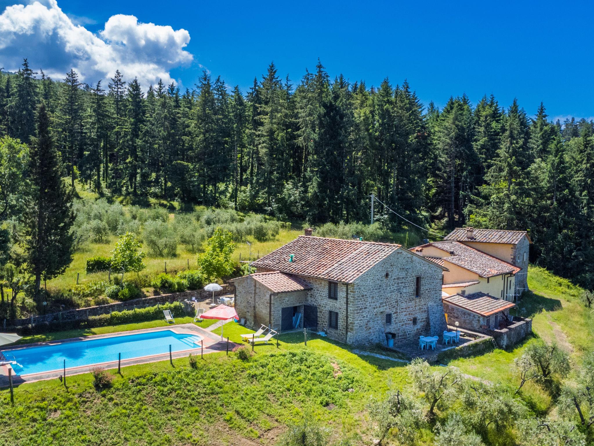 Certina is made up of 2 buildings: the owner's house and another building with 4 independent apartments. The buildings are surrounded by a stone courtyard. Thers is a wood with firs, pines, olive trees and chestnut trees and paths for walking or mountain biking. Very old country house "Certina", 510 m a.s.l., renovated, surrounded by trees. 13 km from the centre of Pontassieve, 30 km from the centre of Firenze, in a quiet, elevated position on top of a hill, in the countryside. For shared use: property 33 ha, garden, swimming pool fenced (6 x 12 m, depth 130 - 160 cm, seasonal availability: 06.May. - 23.Sep.) with internal staircase. Outdoor shower, barbecue. Private: terrace, garden furniture. In the house: central heating system, washing machine (for shared use), heating to be paid on the spot, heating available only from 01.Nov. - 07.Apr.. Linen change weekly. Room cleaning on request (extra). Motor access to the house (1 km via unmade road). Parking at the house. Shop 5 km, restaurant 7 km, bus stop 4.7 km, railway station "Pontassieve" 13 km.