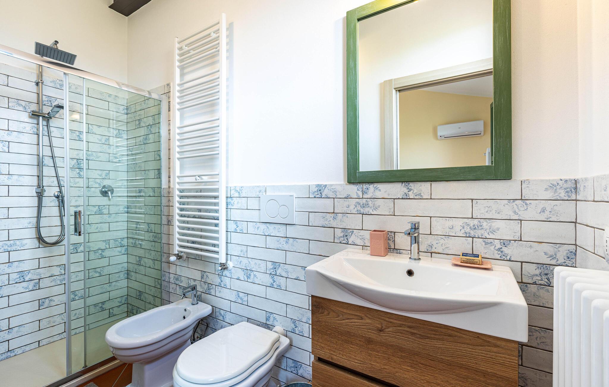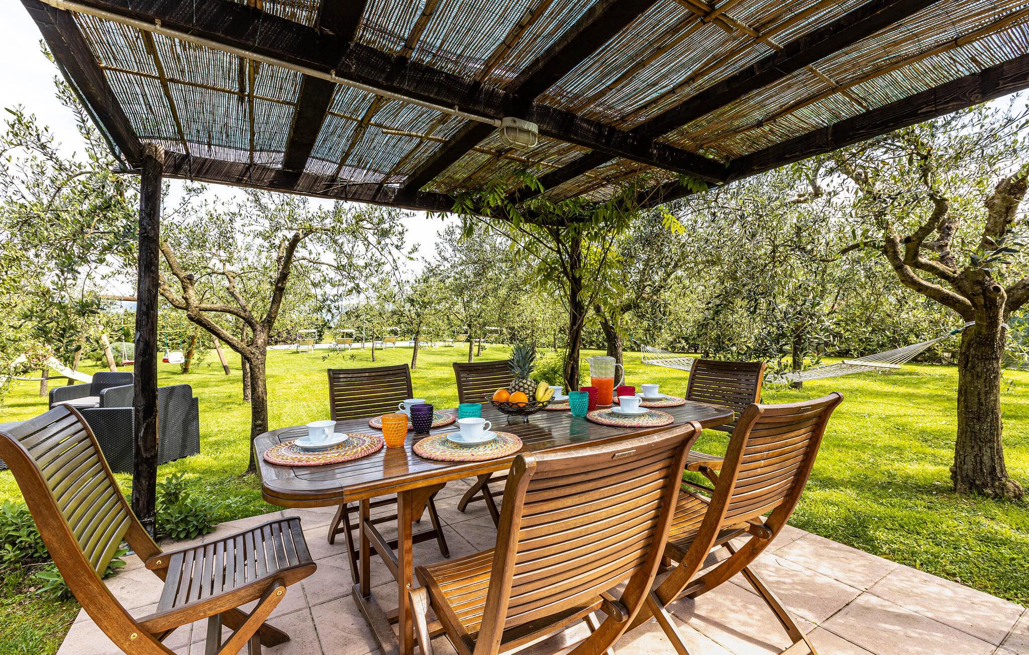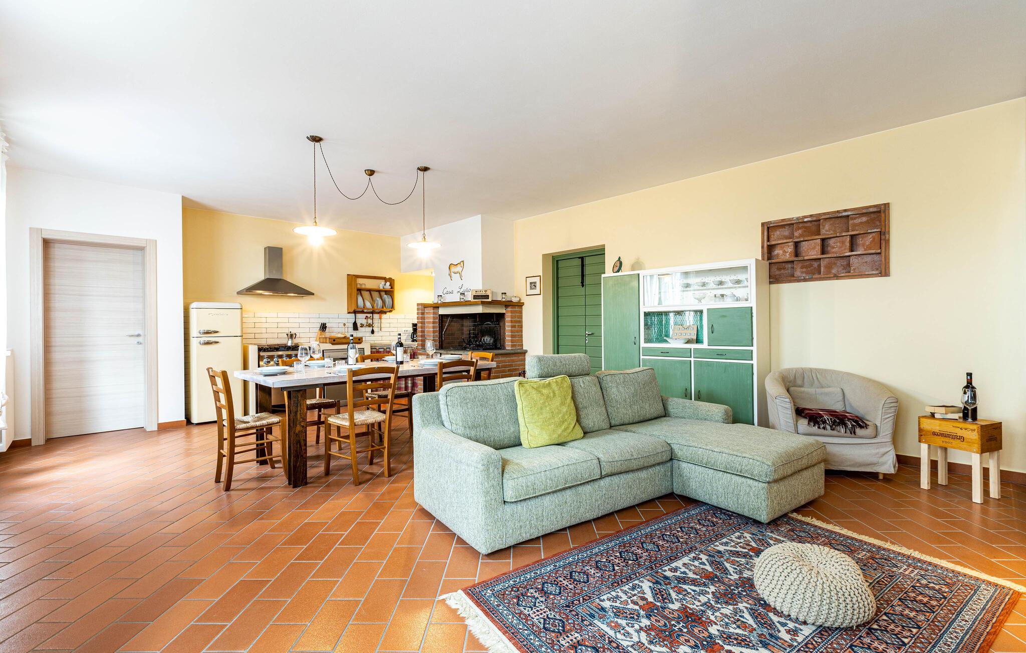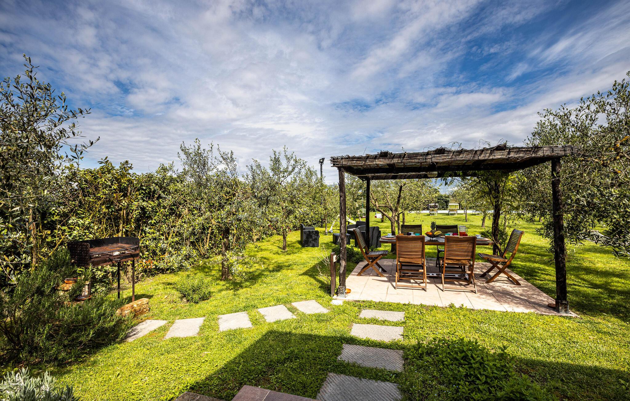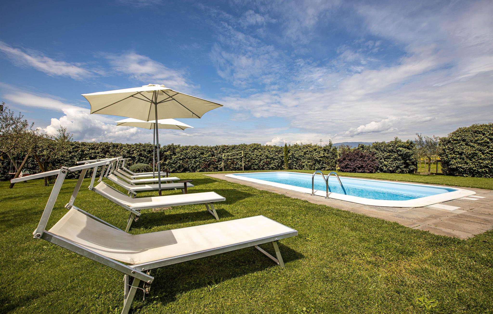 Her er der et dejligt feriehus med pool og herligt udendørsområde beliggende mellem Lucca og Montecatini Terme ude på landet i absolut rolige omgivelser. Den ældgamle pilgrimsrute Via Francigena går lige gennem egnen. Fra huset er der udsigt til de toskanske Appenniner ude i horisonten. Den kan I nyde fra den fine grund, som er udstyrret til omfattende udendørsliv. Her er grill og legeplads for børnene med rutsjebane og gynge. hvis I har lyst til at fiske er der kun fem km til nærmeste fiskersø.