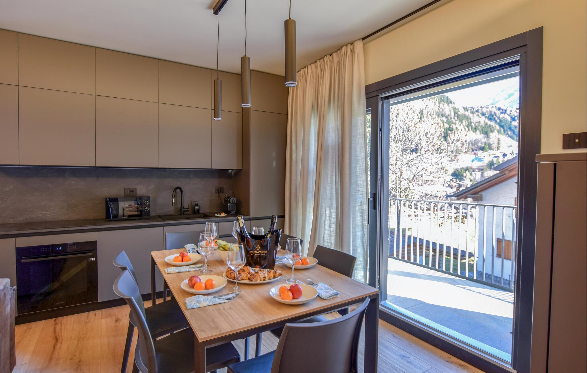 Oplev naturen på nært hold i denne komfortable ferielejlighed med en smuk beliggenhed. Denne smagfuldt møblerede lejlighed tilbyder et hyggeligt tilflugtssted i enhver sæson, så I kan nyde en afslappende, men aktiv ferie. Tilbered lækre måltider, saml jer til harmoniske måltider i den lyse spisestue, og planlæg jeres aktiviteter sammen. Efter en lang dag inviterer den komfortable sofa jer til rolig læsetid eller hyggelige spilleaftener. Udnyt den fælles altan til at indånde den friske bjergluft med en friskbrygget kaffe om morgenen, og glæd jer til en spændende dag udenfor. Tag svævebanen op til Tonale-passet, og udforsk de charmerende vandrestier. Tag en tur til Adamello Nationalpark, hold en picnic ved den alpine sø Lago d'Arno, og observer murmeldyr. Om vinteren indbyder de velpræparerede pister til skiløb. Bagefter kan I slappe af i de termiske bade i Pejo eller Bormio, eller kombinere kultur og kulinariske lækkerier med en dagstur til Tirano og en tur med den berømte Bernina Express.