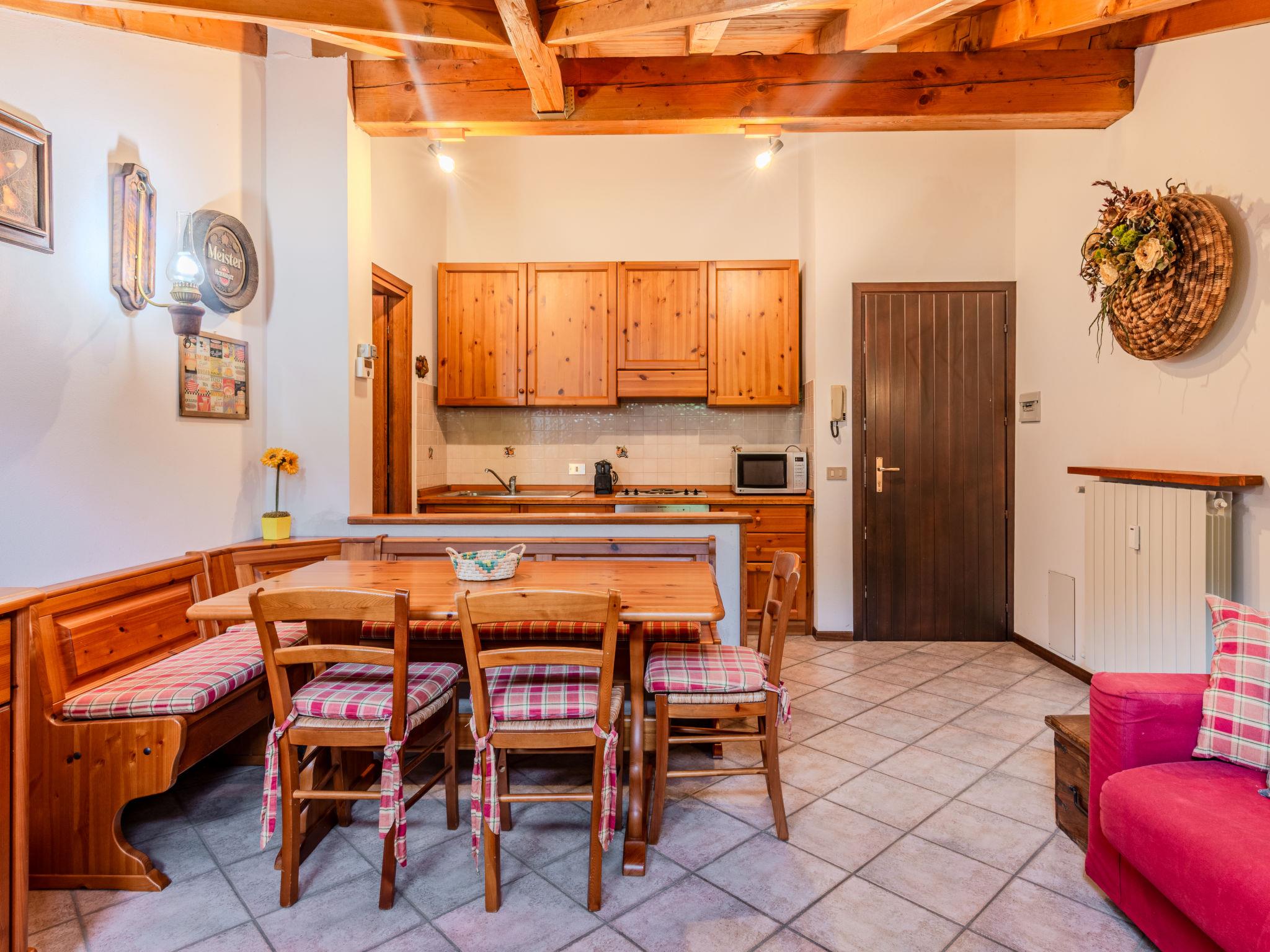Ponte di Legno: Cosy, rustic apartment block "Castello", 2 storeys. In the centre of Ponte di Legno, excellent location: right in the centre but still quiet, in the heart of the city, 1 km from the skiing area. In the house: central heating system. Linen change weekly (suppl. charge extra). Towel change weekly (suppl. charge extra). Room cleaning weekly on request (extra). Parking (limited number of spaces) at the house, public parking 100 m on the road. Supermarket 300 m, restaurant, bar 200 m, pedestrian zone 100 m, 5 minute walk to the centre, bus stop 50 m. Walking paths from the house, cycle lane 100 m, mountain railway, gondola lift 500 m, slopes 1 km, ski rental 500 m, ski bus stop 50 m, ski school 500 m. Nearby attractions: Città di Vermiglio 24 km, Parco Adamello Brenta 66 km, Terme di Pejo 36 km, Sozzine Park 2.5 km, Fonte di Sant'Apollonia 7.9 km. Well-known ski regions can easily be reached: Pontedilegno - Tonale 1 km, Folgarida - Marilleva - M.di Campiglio 36 km. Well-known lakes can easily be reached: Lago di Pian Palù 41 km, Lago D'Aviolo 13 km, Lago Denza 23 km. Hiking paths: Passo del Tonale 12 km, Monte Adamello 12 km, Case di Viso Trekking 10 km. Neighbourhood highly sensitive to noise. Quietness and good behaviour expected.