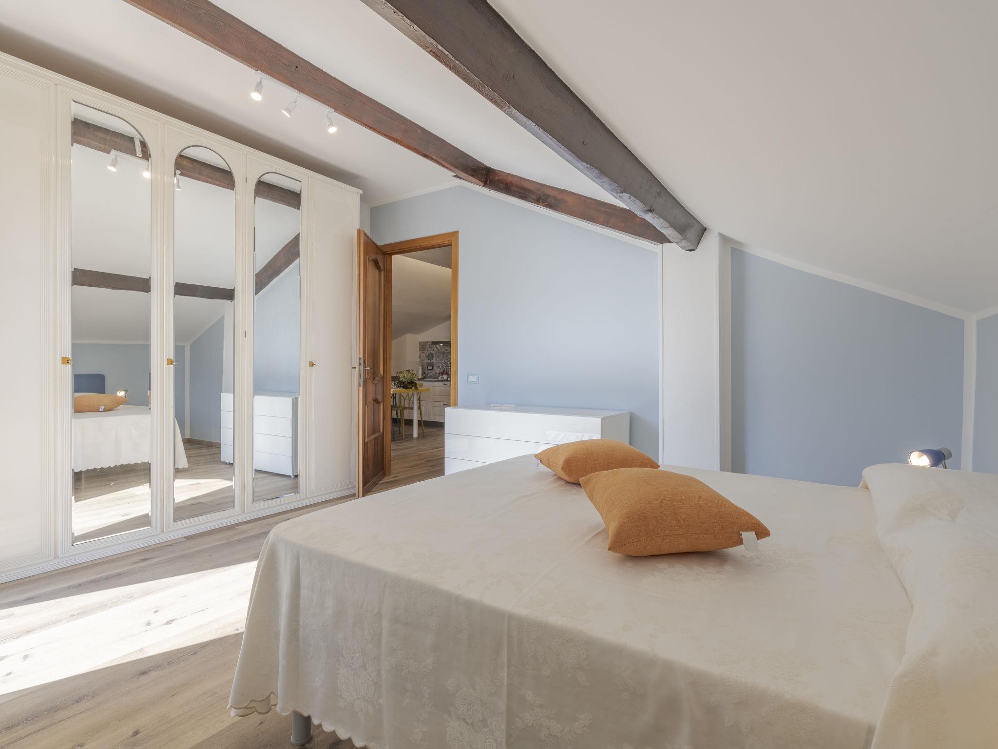 "Gabriella", 3-room apartment 70 m2 on 1st floor. Bright, with sloping ceilings, fully renovated in 2022, beautiful and cosy furnishings: 1 room with 1 double bed (1 x 160 cm). Exit to the balcony. 1 room with 1 bed (80 cm). With sloping ceilings kitchen-/living room (oven, 4 gas rings, toaster, electric coffee machine) with dining table, 1 double sofabed (1 x 160 cm), satellite TV. Exit to the balcony. Shower/WC. Air-conditioning, forced-air heating (extra). Heating available only from 02.11. to 29.04. Parquet floors. 2 balconies. Panoramic view of the sea, the mountains and the valley. Facilities: washing machine, hair dryer. Internet (WiFi, free). Please note: non-smokers only. IT008045C2L6DQ99Q7