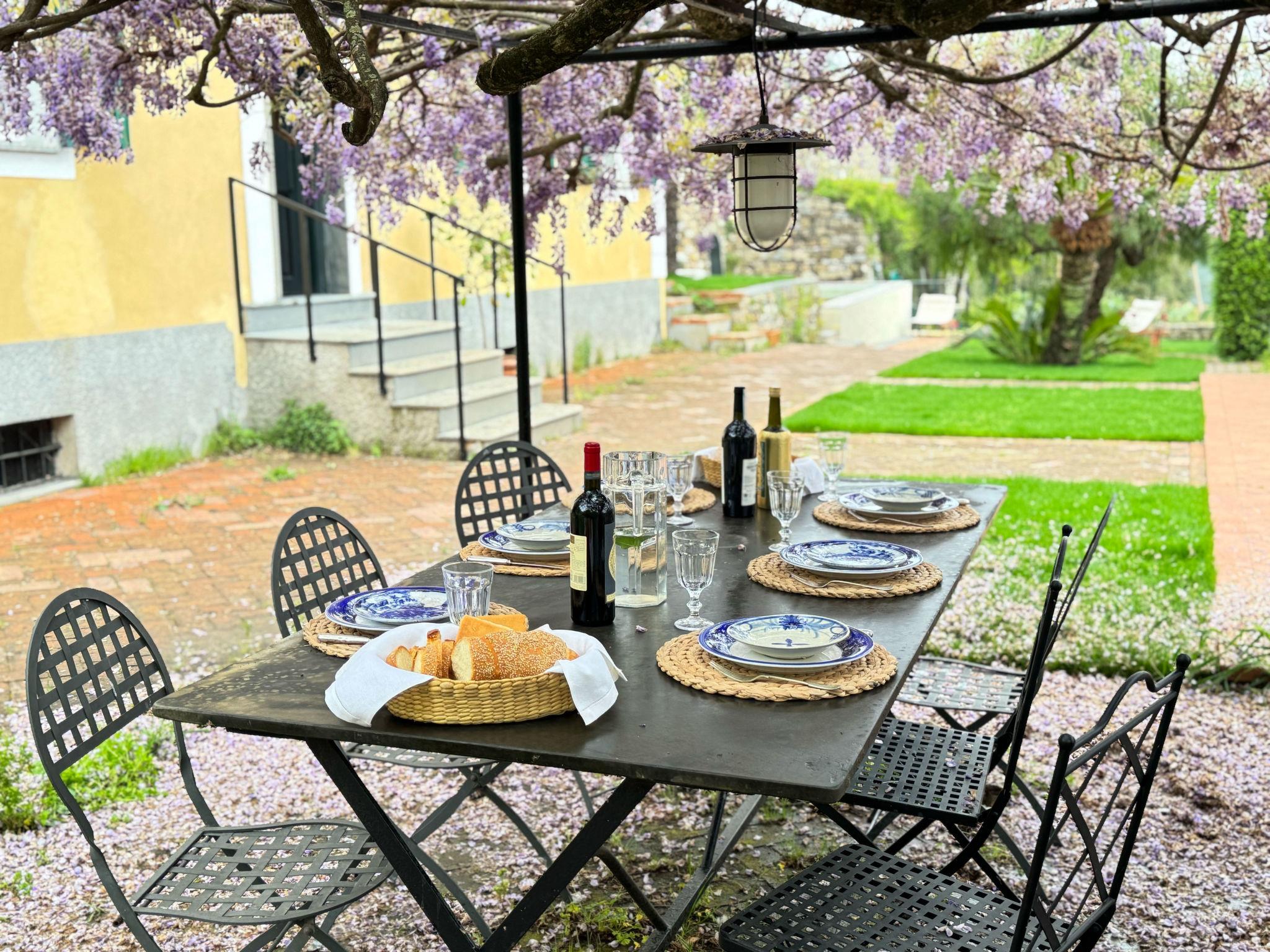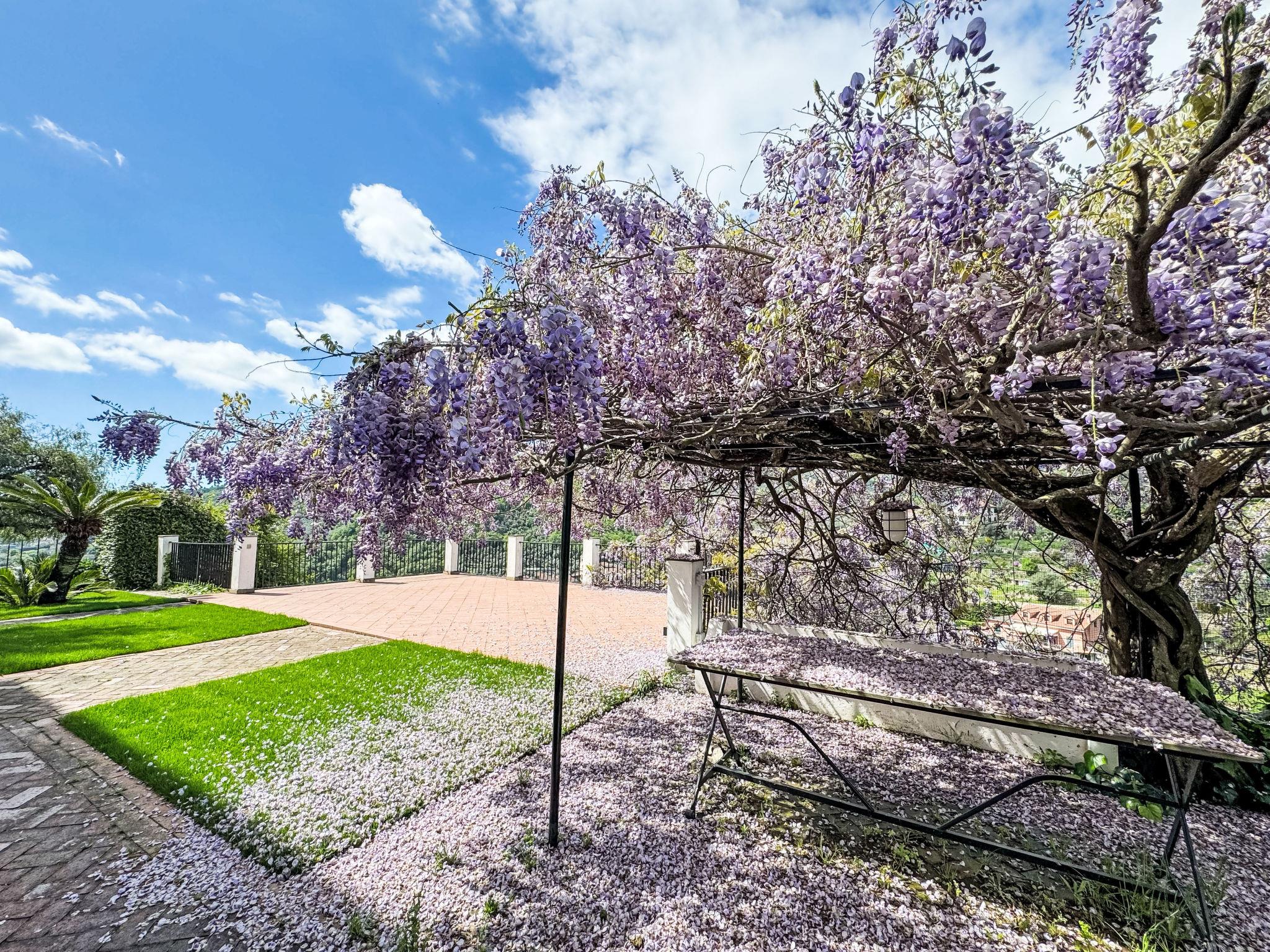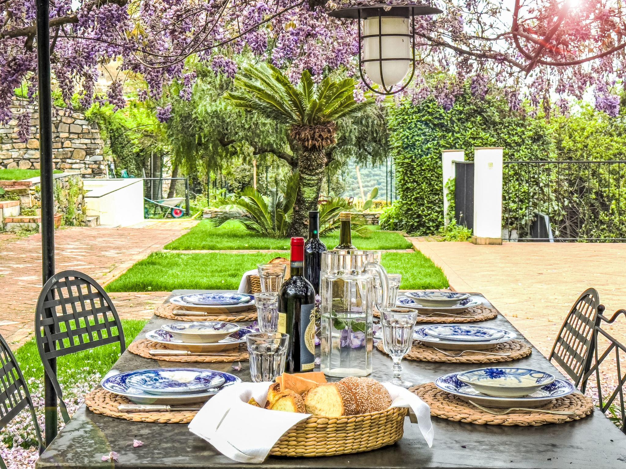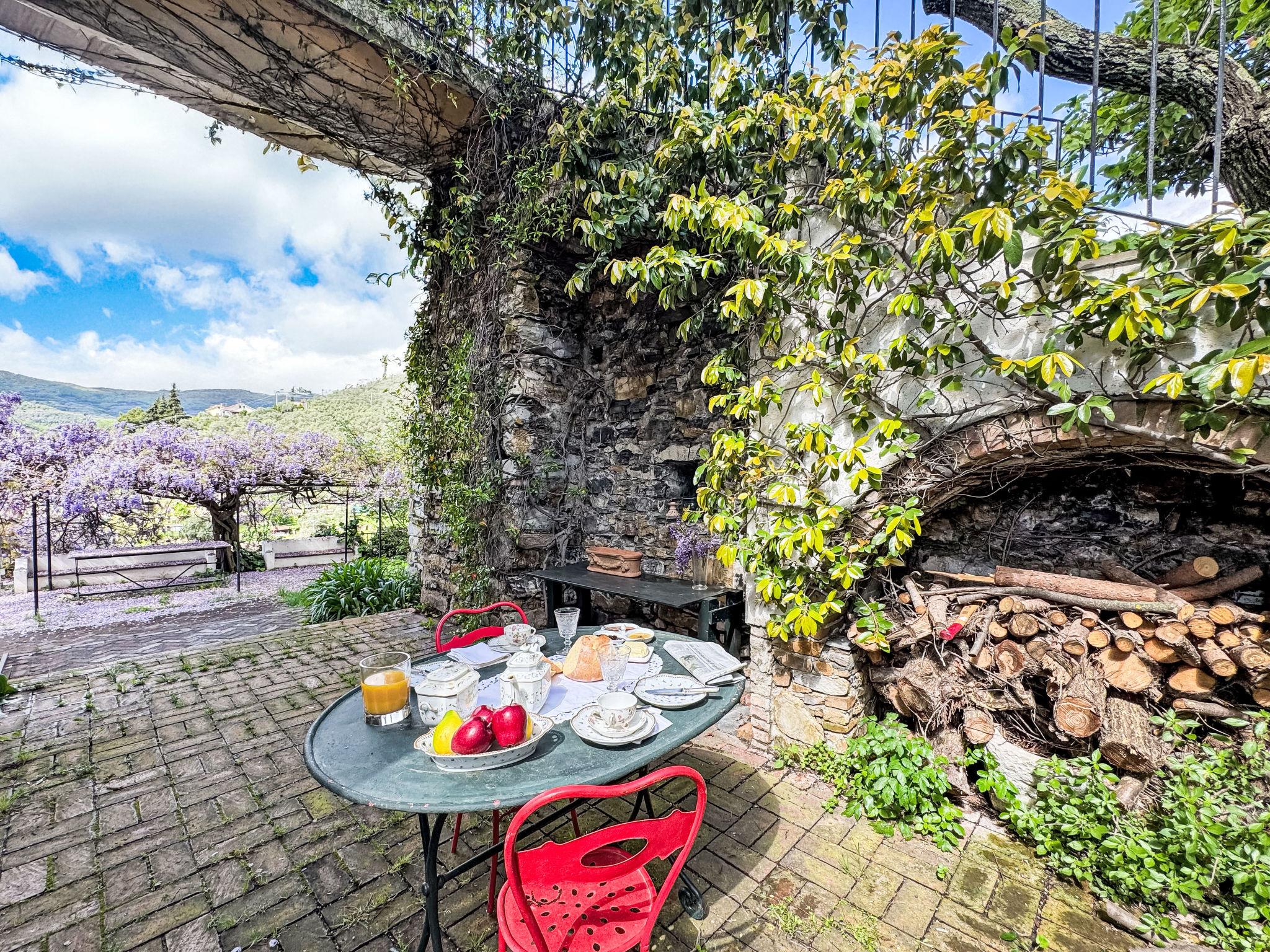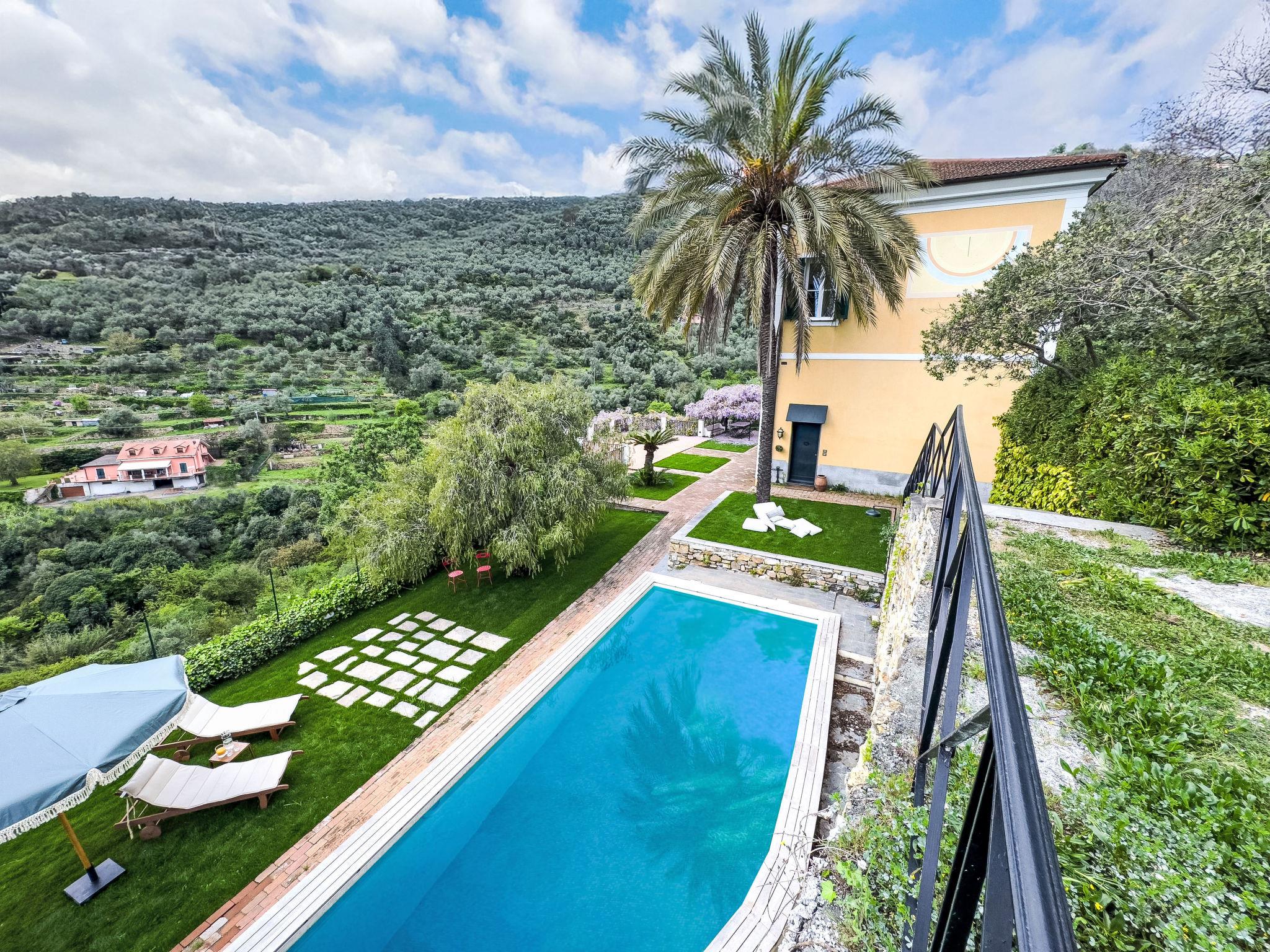 Comfortable, historical villa, 3 storeys, detached, surrounded by trees and vineyards. 1 km from the centre of Pontedassio, 7 km from the centre of Imperia, 13 km from the centre of Diano marina, 9 km from the sea. Private: park 2'000 m2, terraced garden, natural garden, meadow, orchard, swimming pool (10 x 5 m, depth 100 - 160 cm, seasonal availability: 15.May. and 30.Sep.). Shower/WC in the pool area. In the house: fitness room, storage room for bicycles. Parking on the premises. Grocery 1 km, supermarket 1 km, shopping centre 1 km, restaurant 1 km, bicycle rental 1 km, bus stop 300 m, railway station "Imperia Oneglia" 7 km, sandy beach "Imperia" 9 km. Cycle lane 7 km. Please note: car recommended. Loading and unloading of baggage is possible at the holiday house.