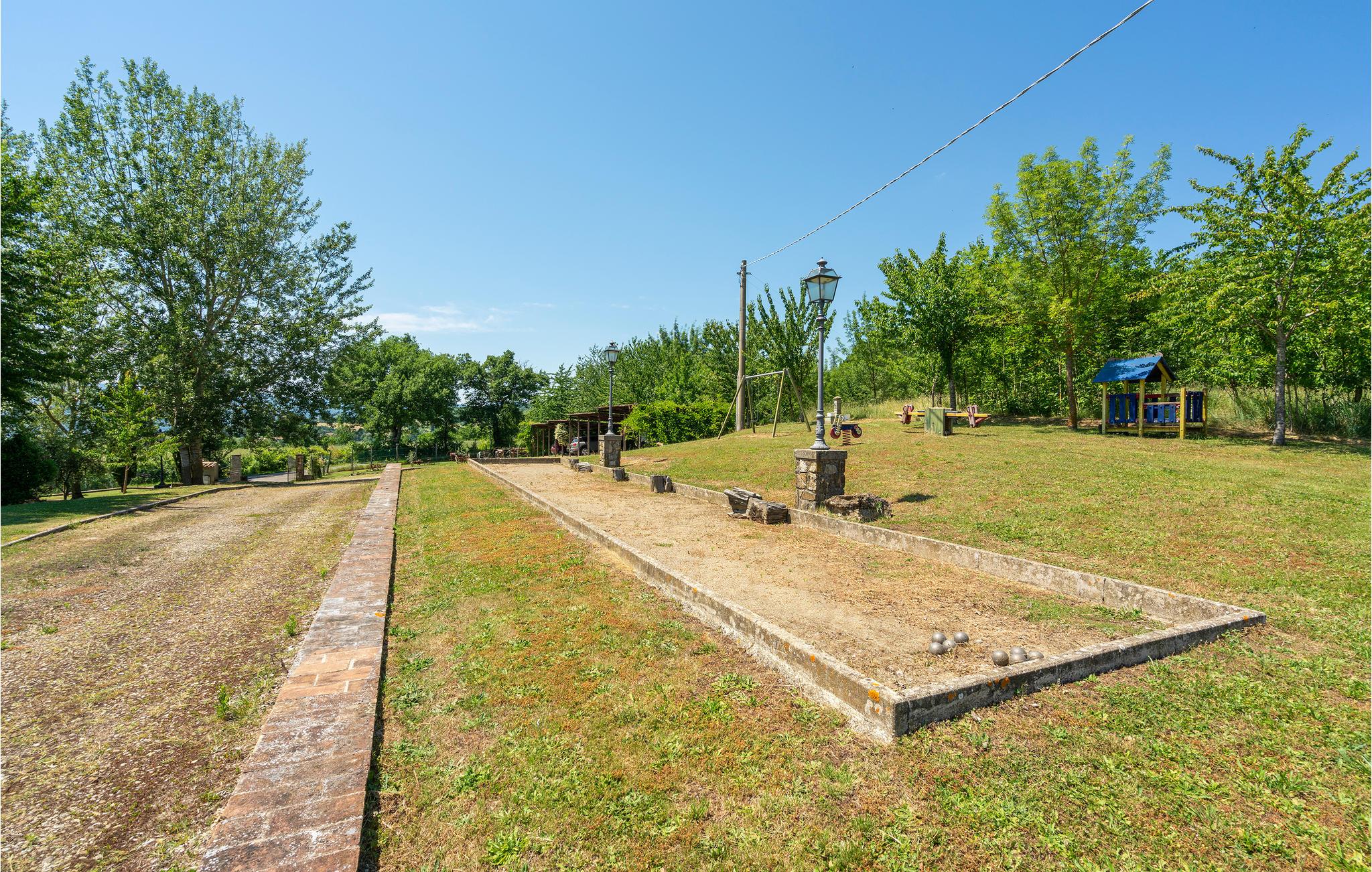 Jeres lejlighed er et sandt paradis af hygge, som vil opfylde alle ønsker om fred og ro. En petanquebane, et udendørs køkken, en autentisk stenpizzaovn og en stor pool fuldender grundens tilbud udendørs.