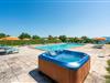 Udenfor er der et reserveret område til behagelige frokoster i det fri. Huset er omgivet af en stor have (1 hektar), hvor børn kan have det sjovt i et udstyret område, og voksne kan spille boccia, bordtennis, volleyball og slappe af i det 5-personers boblebad.
