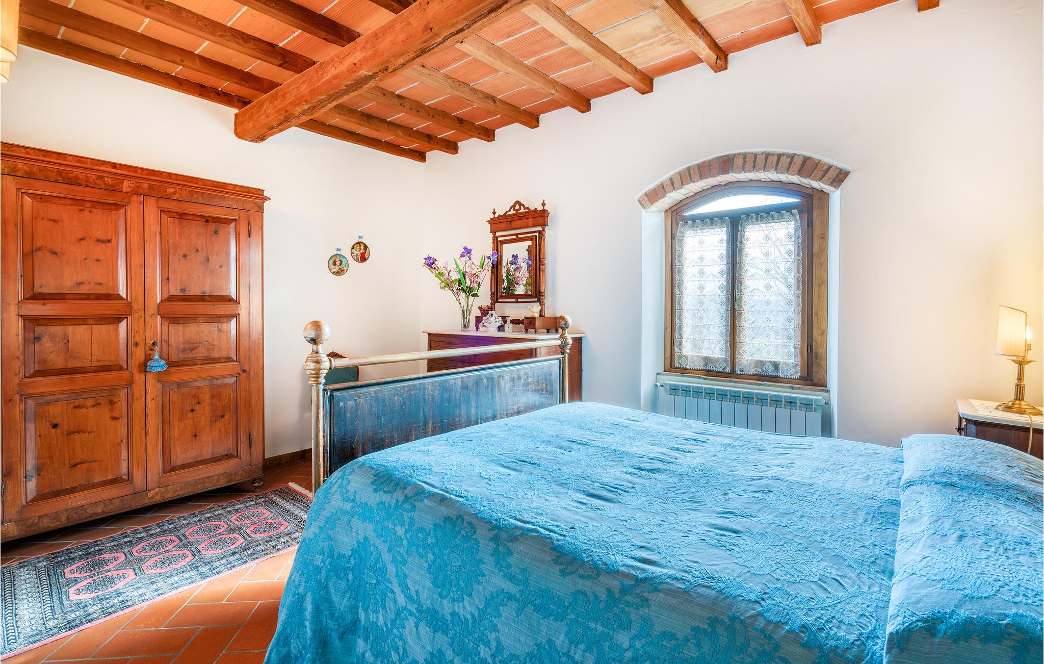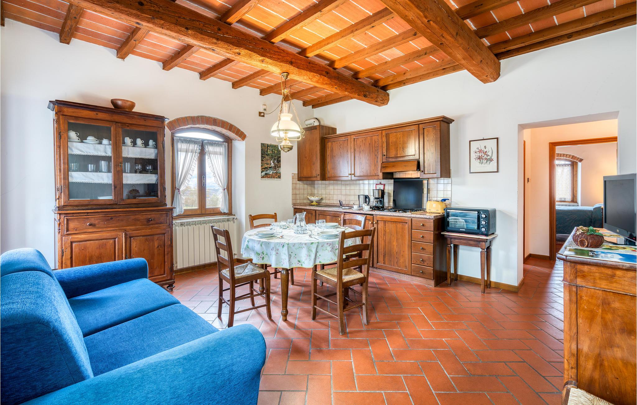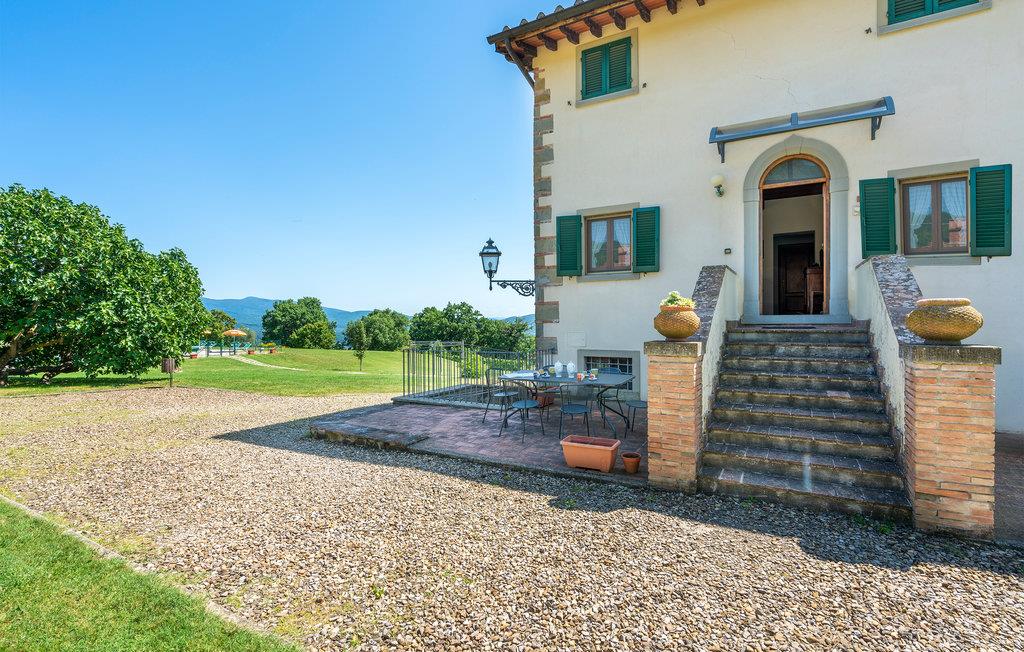 Denne ferielejlighed er en del af en typisk toscansk herregård, der er opdelt i 9 lejligheder, med en fælles pool og på en 12 hektar stor, indhegnet ejendom med græsplæne og skov.