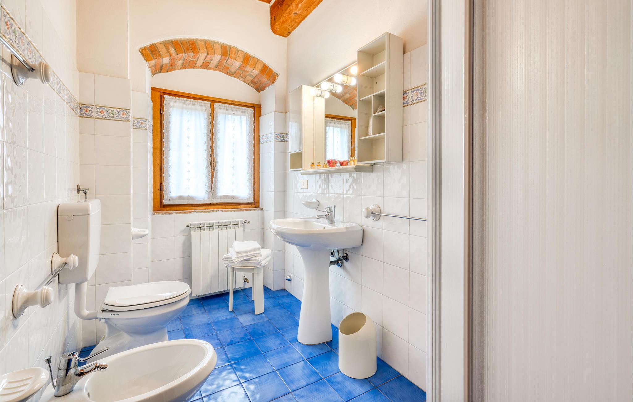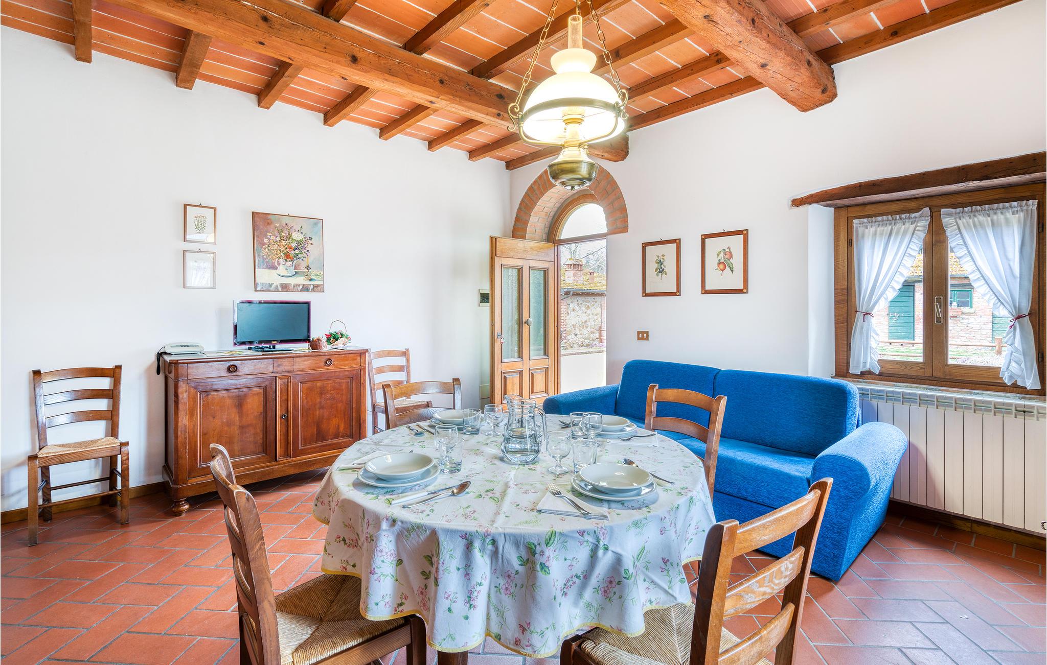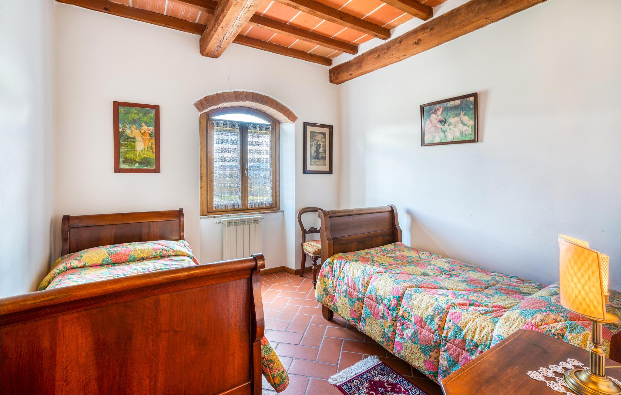 Denne ferielejlighed er en del af en typisk toscansk herregård, der er opdelt i 9 lejligheder, med en fælles pool og på en 12 hektar stor, indhegnet ejendom med græsplæne og skov.