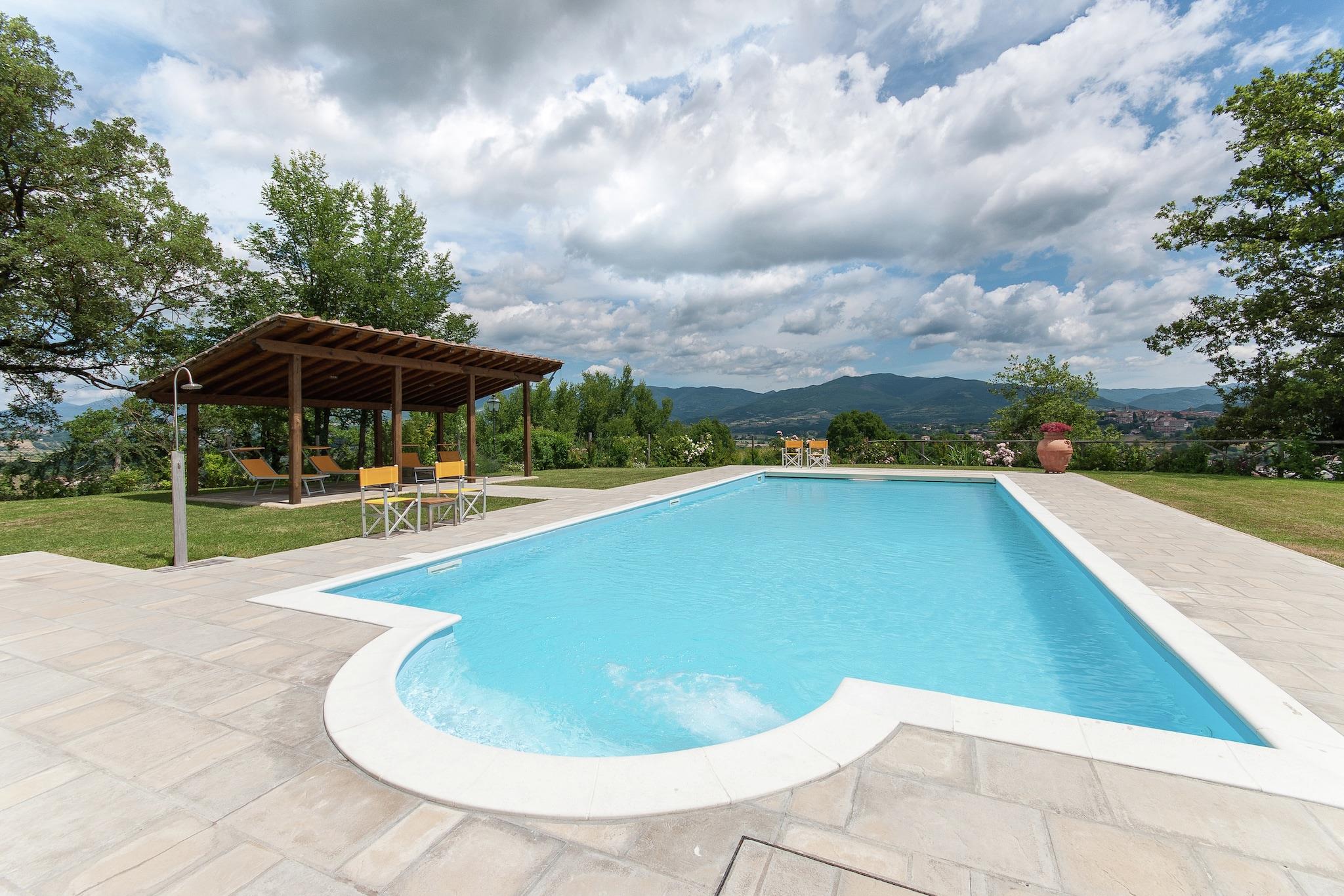 Luksus sommerhus i en lille landsby med en fælles pool og en smuk have nær Poppi. Ferieboligen ligger på en omhyggeligt restaureret ejendom i Casentino-dalen. Denne dal ligger mellem Firenze og Arezzo. Ejendommen ligger ved siden af Casentino National Park. Med lidt held kan du se hjorten eller vildsvinet på kort afstand om aftenen. Casa Quattro er bygget i autentisk stil. Huset har en lille loggia på østsiden og en rummelig terrasse på syd / vestsiden, så masser af sol (eller skygge) kan nydes. Huset er smagfuldt indrettet med en kombination af antikke skabe og moderne møbler. Køkkenet er udstyret med alle moderne apparater. De traditionelle smedejern senge er lavet af fagfolk fra området. Selvfølgelig har huset wifi. Den (opvarmede) swimmingpool er rummelig og udstyret med et rullebetræk, liggestole, paraplyer og en rummelig terrasse. Det er på et fremtrædende sted med smuk udsigt over området. Du har en smuk udsigt over slottet i den middelalderlige by Poppi og de imponerende skove af et af Italiens største naturreservater. Casa Quattro byder på masser af plads til afslapning Bliv. -- Attention: arrivals after the official arrival time are possible but must be strictly agreed in advance with the manager and involve extra costs, to be paid on the spot. --