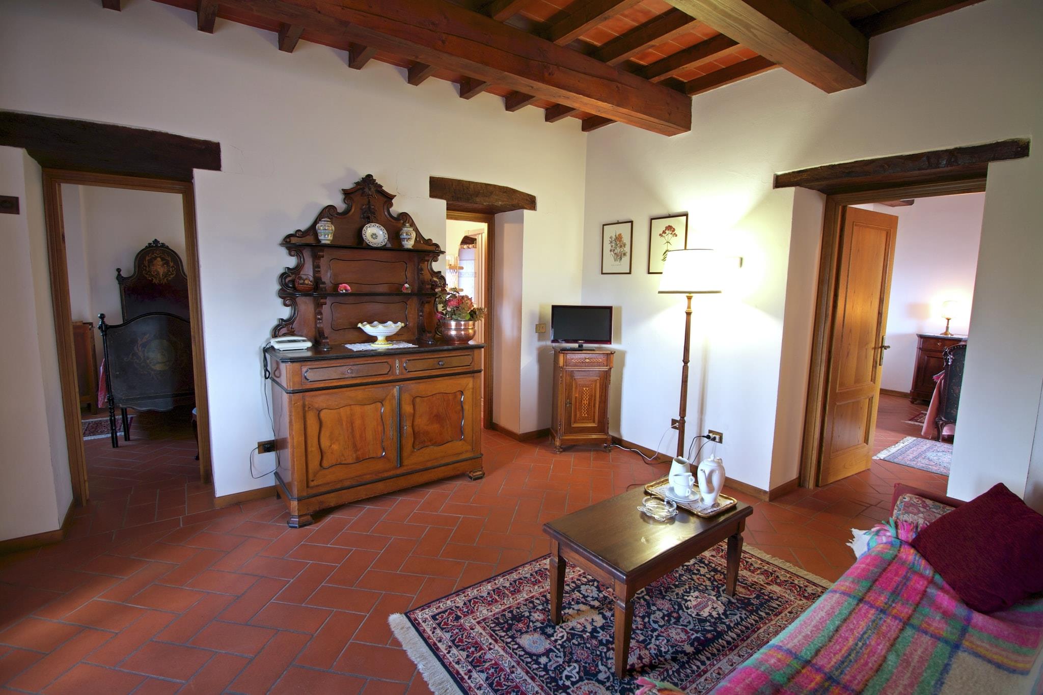 Denne autentiske toscanske gård ligger i Poppi, nær Arezzo. I denne storslåede gård er i alt 9 lejligheder indrettet i autentisk toscansk stil. Det ligger i et stort indhegnet område på 12 hektar med haver og skove, ideel til vandreture. Gæsterne kan også benytte legepladsen, bowlingbanen, bordtennis, grill, træovn, overdækket parkeringsplads, pool og en smuk og afslappende Jacuzzi. På gården kan du købe skinke og salami, der er lavet af deres egne grise. Agriturismo er beliggende i Casentinos grønne dal. Dette område har stadig charmen af et område, hvor historisk, religiøs og kunstnerisk arv kombineret med en smuk natur. I området er bjerge, dale, små søer, vandløb og skove. Tag også kig på nationalparken Casentino og Monte Falterona. Den fortryllende dal løber langs floden Arno. Kunstområder, som du kan besøge Cortona, Anghiari og Caprese Michelangelo. Kort sagt, i denne agriturismo kan du tilbringe en god ferie!