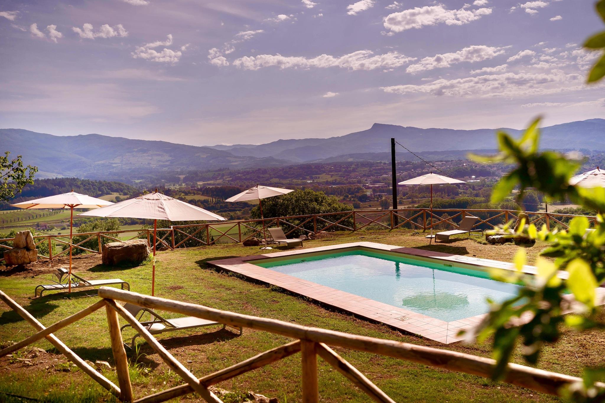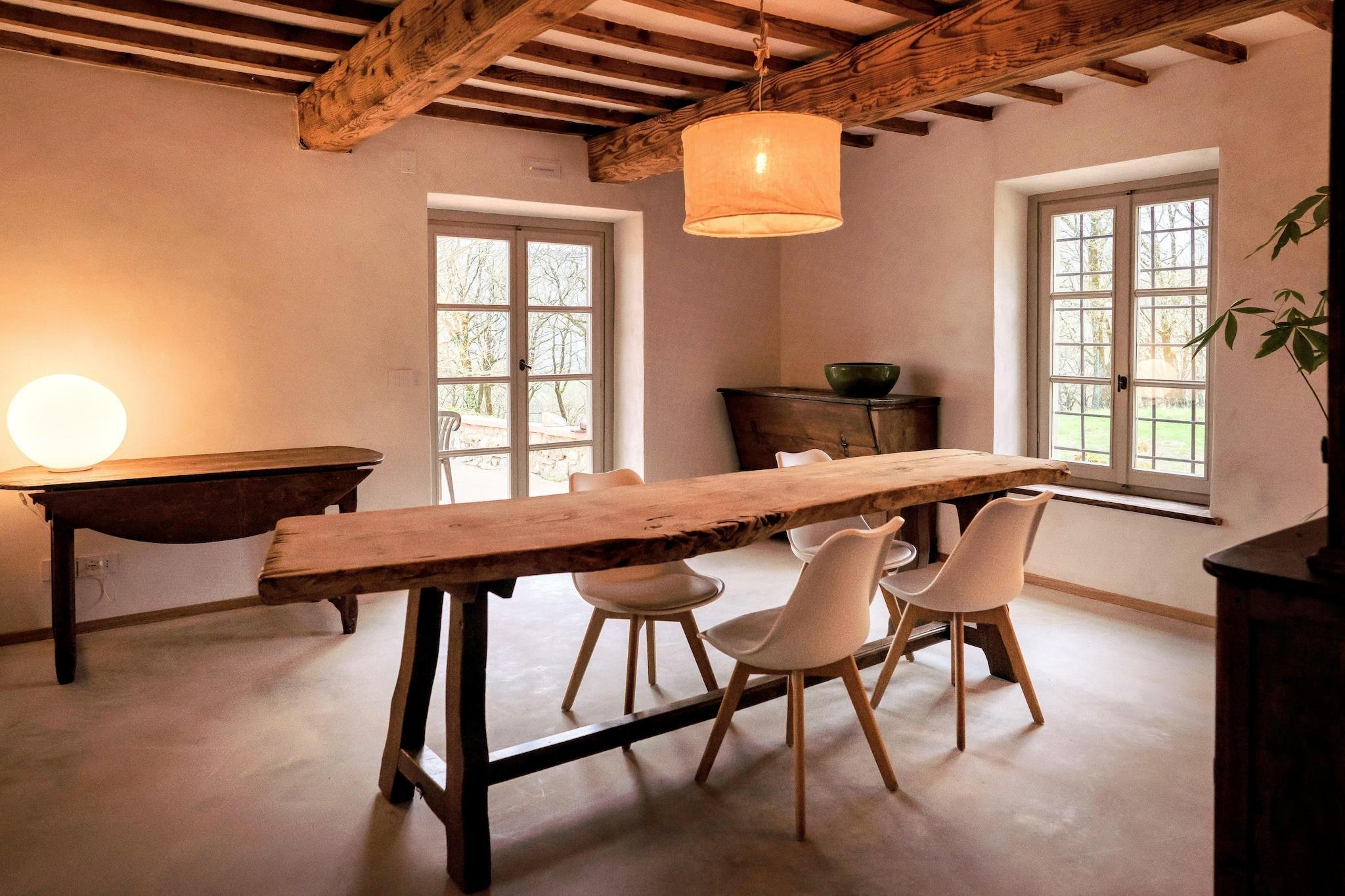 Beliggende i de toscanske bjerges suggestive landskab repræsenterer denne eksklusive villa en oase af fred og raffinement. Ejendommen blev fuldstændig renoveret i 2025 og kombinerer den autentiske charme af toscansk arkitektur med moderne bekvemmeligheder og finish af høj kvalitet. Hvert værelse er omhyggeligt designet, udsmykket med raffinerede møbler og udstyret med aircondition i alle værelser. Et ophold her er synonymt med afslapning og velvære: en pragtfuld opvarmet udendørs swimmingpool, en multibane (velegnet til tennis, femmands fodbold eller volleyball) og et bordtennisområde gør villaen perfekt til øjeblikke af fritid og sjov i hver sæson. Ejendommen er sammensat af en hovedvilla og et anneks: i stueetagen er der de lyse opholdsområder, ideelle til at bo sammen og slappe af, mens der på de øverste etager er de elegante og indbydende soveværelser, alle indrettet med smag og sans for detaljer. Denne bolig er det ideelle valg for familier og vennegrupper, der ønsker at opleve en afslappende, sjov og charmerende ferie, nedsænket i den unikke atmosfære i en typisk toscansk bolig. Det omkringliggende område, præget af bølgende bakker og fortryllende landskaber, byder på et rigt udvalg af oplevelser: gamle landsbyer, middelalderbyer, mad- og vinruter og smagninger af de bedste toscanske vine. Et privilegeret udgangspunkt for at udforske Toscanas autentiske skønhed.