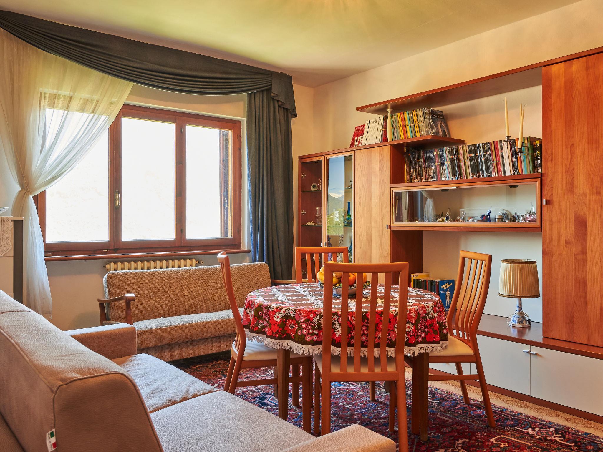 3-room apartment 90 m2 on 1st floor. Practical furnishings: living/sleeping room with 1 sofabed, dining table, satellite TV and heating stove. 1 double bedroom. 1 room with 1 bed and 1 double bed. Kitchen (oven, Gas stove, 4 gas rings, toaster, kettle, microwave, electric coffee machine) with dining table. Exit to the balcony. Bath/bidet/WC. Gas heating (extra). Heating available only from 15.10. to 30.04. Natural stone floors. Balcony, patio. Terrace furniture, balcony furniture, barbecue (portable), deck chairs (2). Very beautiful view of the lake, the mountains and the valley. Facilities: washing machine, children's high chair, baby cot for up to 2 year olds. Internet (WiFi, free). Please note: non-smokers only, no parking. Maximum 1 pet/ dog allowed. Private entrance. IT013077C2OPQAGBIH