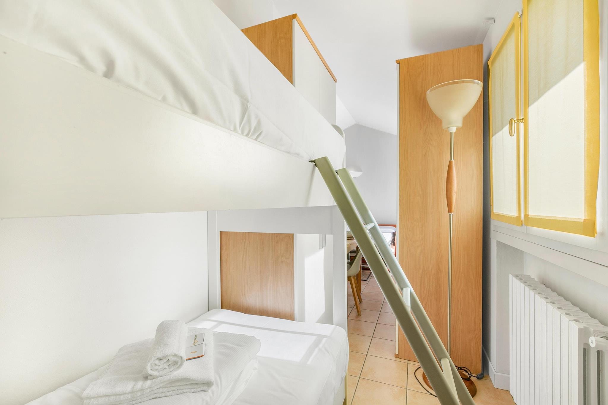 Åbent køkken(kogeplade(Komfur med to kogeplader, elektrisk), kaffemaskine, mikrobølgeovn, køleskab(+ fryser)), Stue/soveværelse(dobbeltsovesofa, køjeseng, Fjernsyn(fladskærm, parabol), spisebord), badeværelse(badekar med bruser, bruser, håndvask, toilet, bidet), vaskemaskine(deles med andre gæster, betalt), balkon, varme, terrasse, havemøbler, parkering