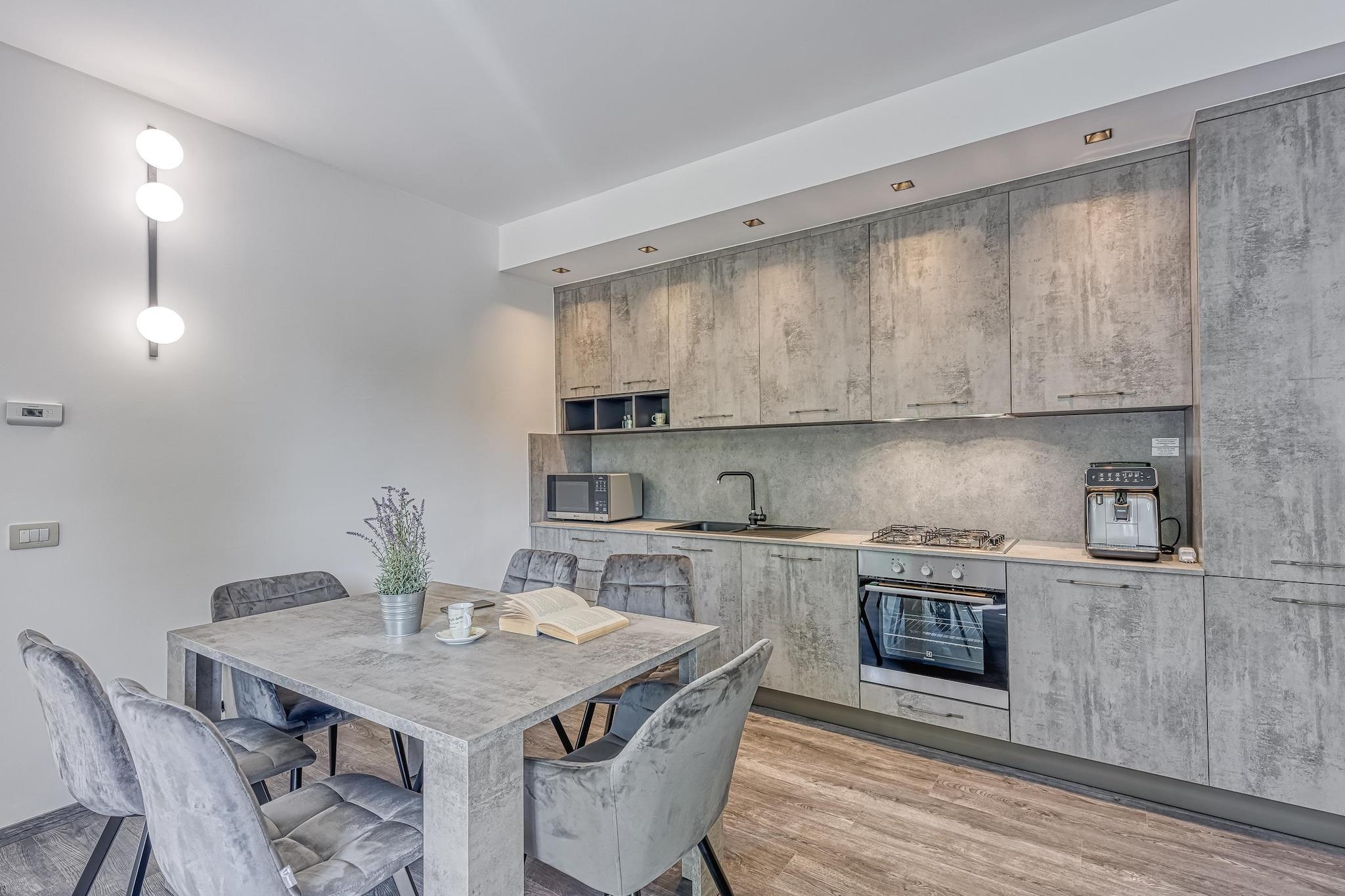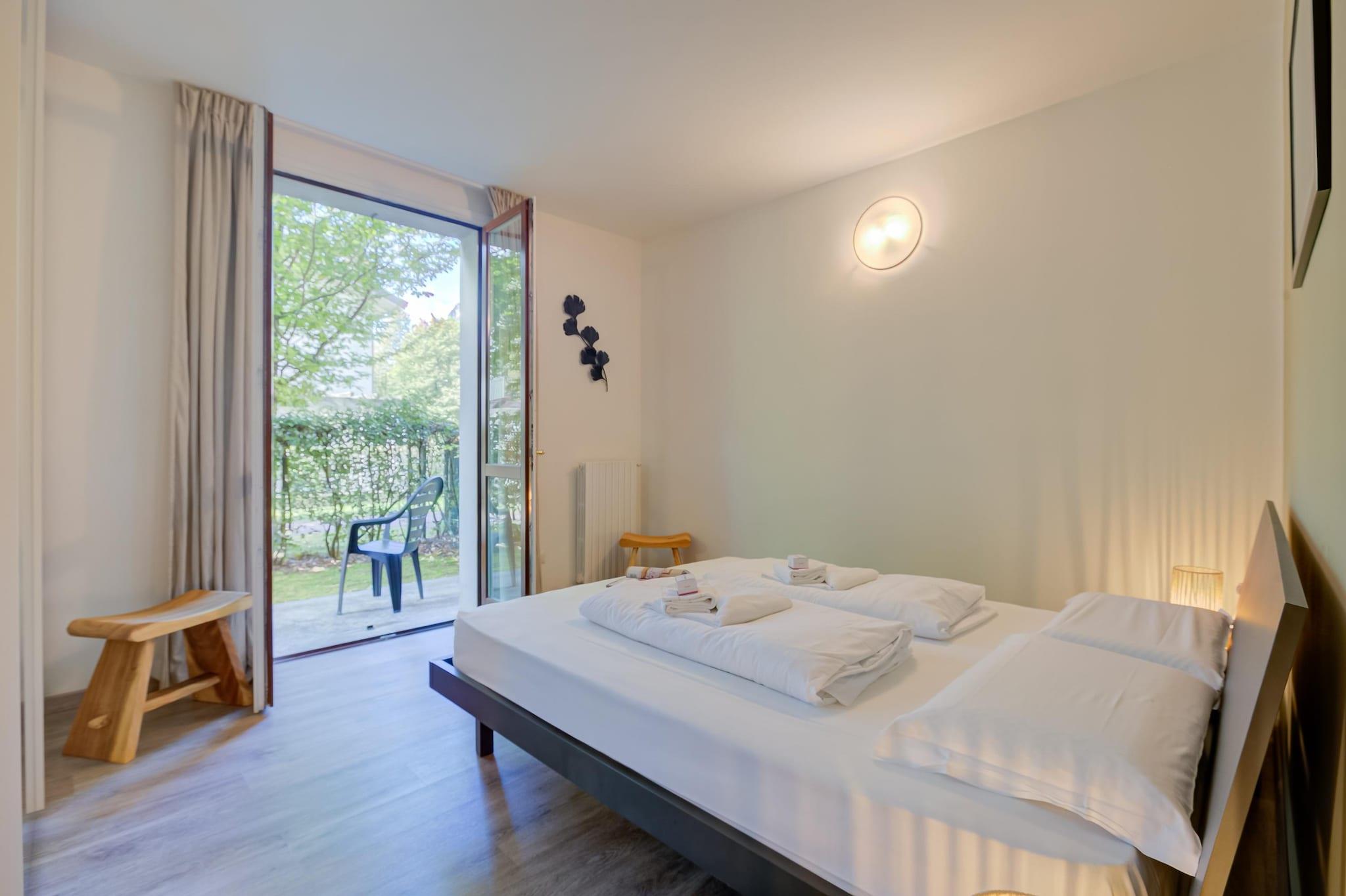 Åbent køkken(kogeplade(Komfur med to kogeplader, elektrisk), kaffemaskine, mikrobølgeovn, køleskab(+ fryser)), stue / spisestue(dobbeltsovesofa, Fjernsyn(fladskærm, parabol), spisebord), soveværelse(dobbeltseng eller 2 enkeltsenge Senge), badeværelse(badekar med bruser, håndvask, toilet, bidet), vaskemaskine(deles med andre gæster, betalt), varme, parkering
