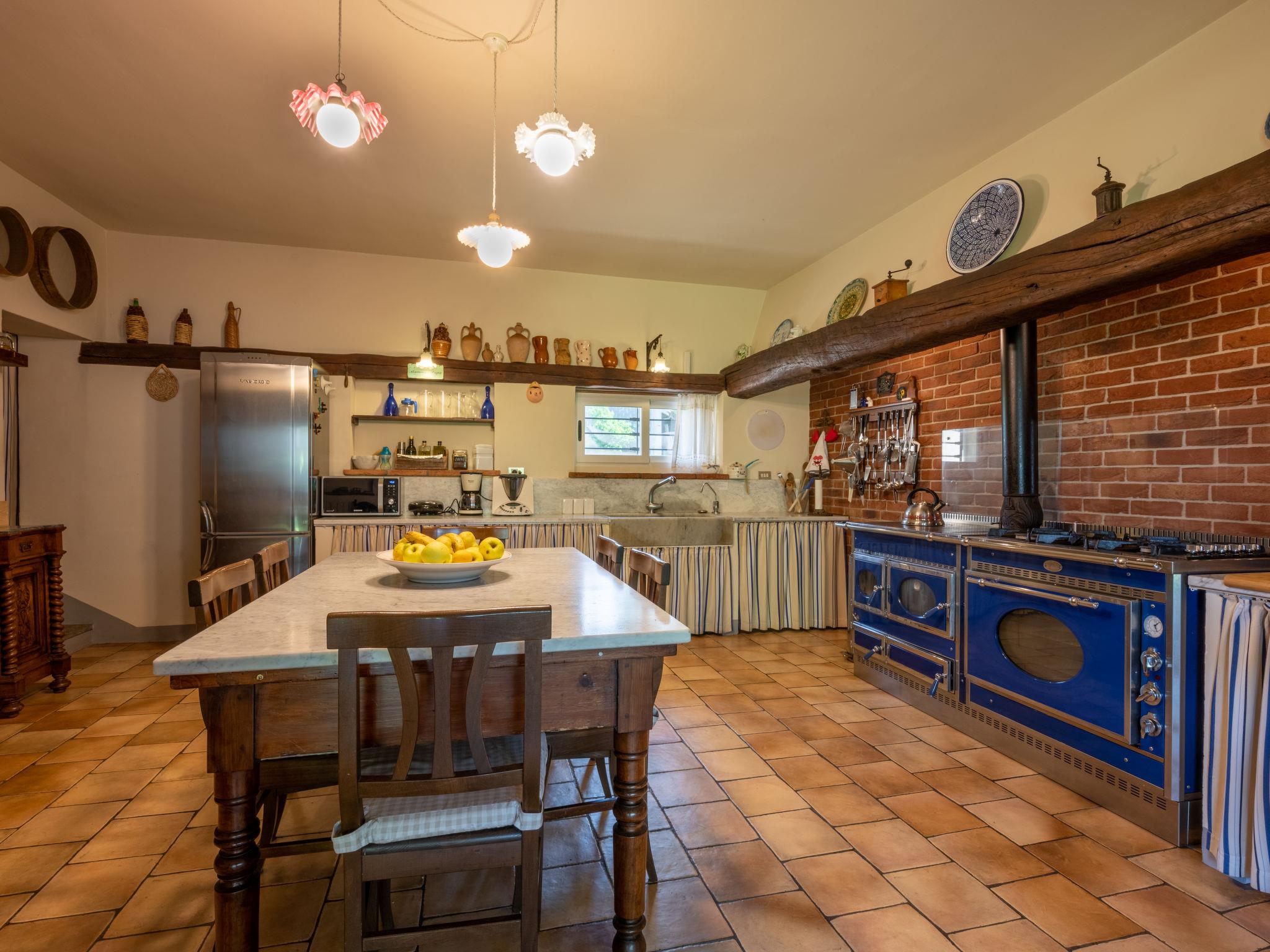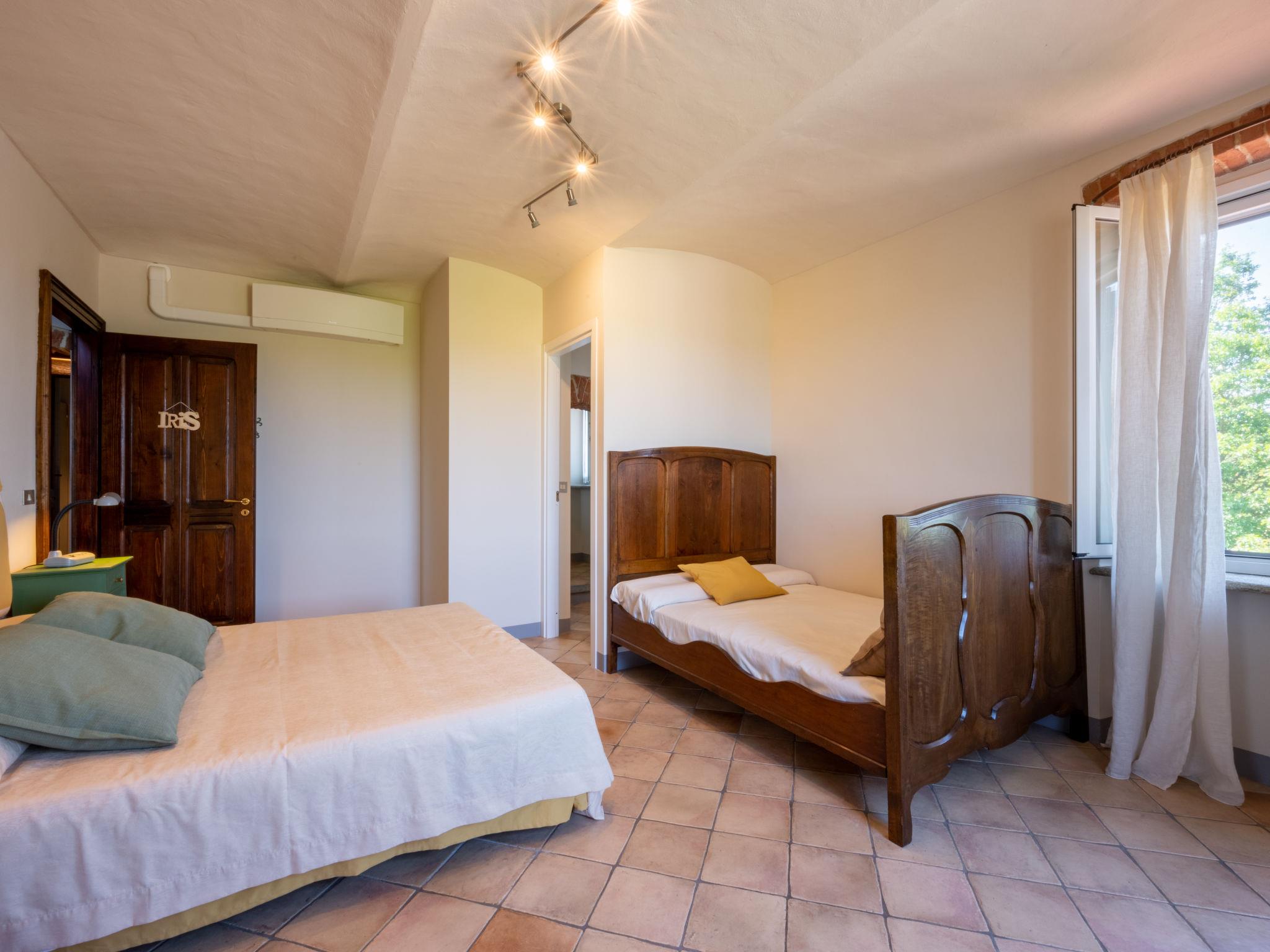 4-room house 230 m2 on 2 levels. Tasteful furnishings: living/dining room with open-hearth fireplace, dining table, satellite TV, CD-player, hi-fi system and DVD. Exit to the garden. Large kitchen (oven, dishwasher, 5 gas rings, toaster, microwave, freezer, electric coffee machine) with dining table and wood-burning stove. Exit to the terrace. Sep. WC. Upper floor: 1 room with 1 double bed, shower/WC and air conditioning. Exit to the balcony. 1 room with 1 french bed (160 cm), 1 double bed, shower/WC and air conditioning. 1 room with 1 french bed (160 cm), shower/WC and air conditioning. Heating, air-conditioning (extra). Parquet floors, natural stone floors. 2 balconies, terrace 25 m2, roofed. Terrace furniture, barbecue, deck chairs (8). Panoramic view. Facilities: washing machine, dryer, children's high chair, baby cot. Internet (WiFi, free). Garage on the property (2 cars) at the house. Please note: non-smoking house. IT005005C2TAW1617N