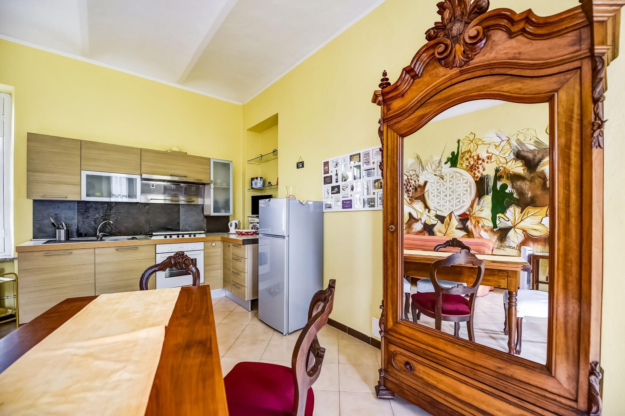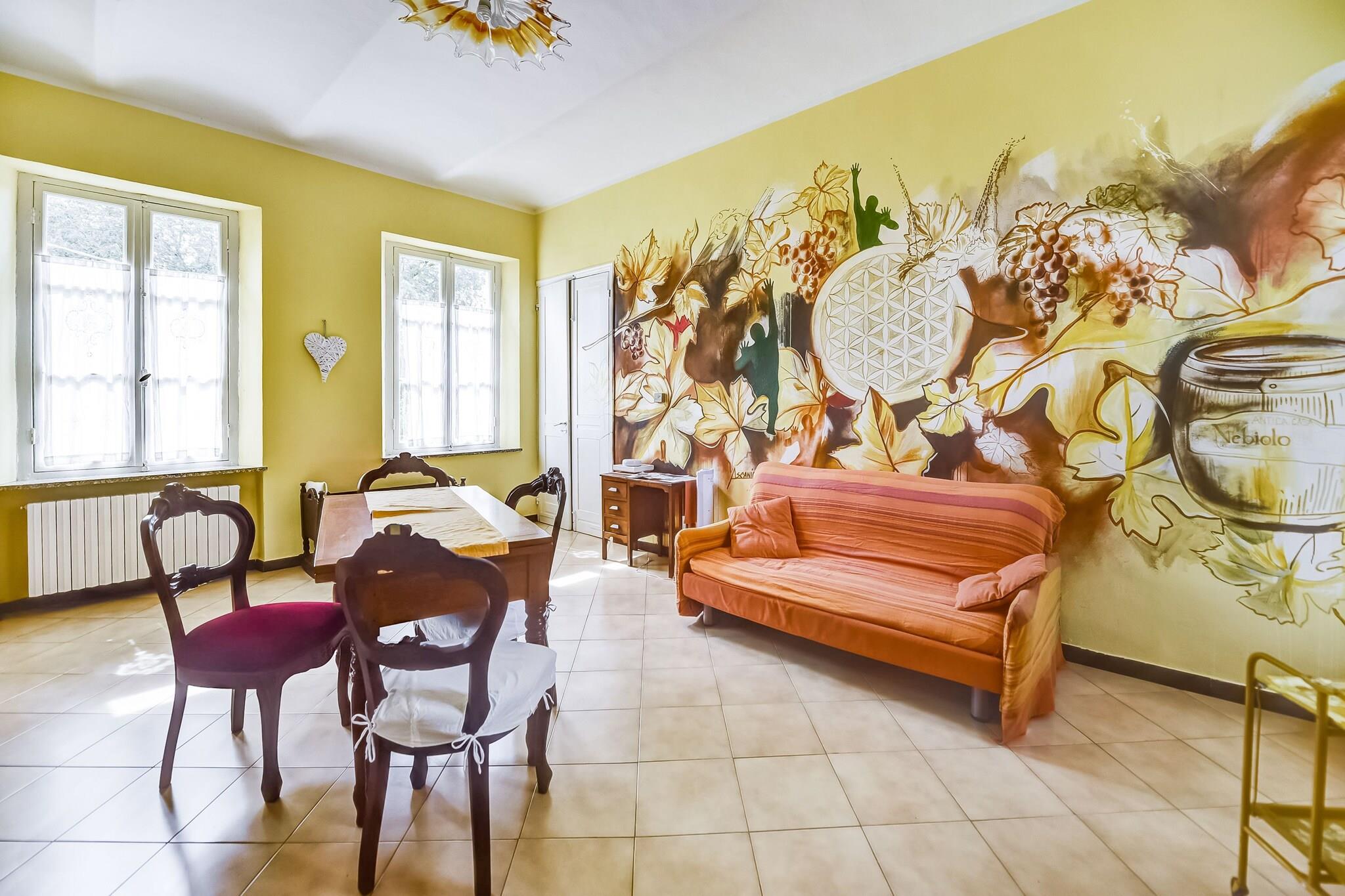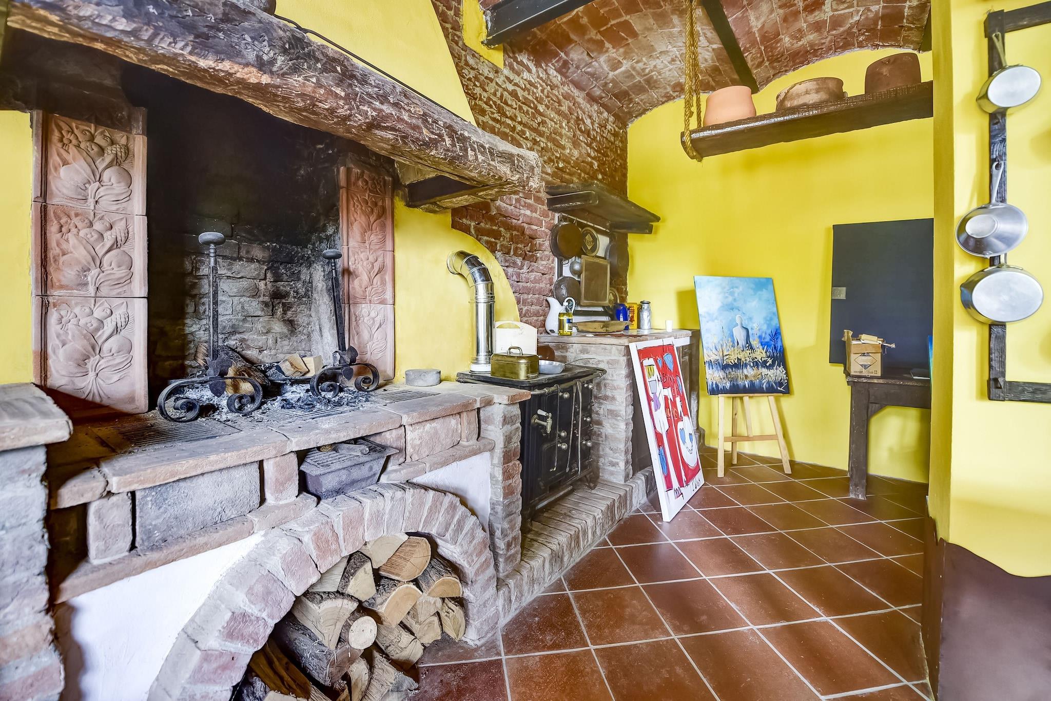 På 1. etage: (gang, Stue(dobbeltsovesofa, spisebord, sofahjørne), åbent køkken(Fjernsyn, kogeplade, elkedel, emhætte, ovn, køle-fryseskab, håndvask), soveværelse(dobbeltseng eller 2 enkeltsenge Senge, Fjernsyn), badeværelse(bruser, håndvask, toilet, bidet), terrasse(privat, indhegnet, 30 m2), havemøbler) vaskerum (vaskemaskine(deles med andre gæster)), sal(deles med andre gæster)(spisebord, pejs, kakkelovn, håndvask), opholdsrum(deles med andre gæster), have(deles med andre gæster), havemøbler, grill(deles med andre gæster), parkering
