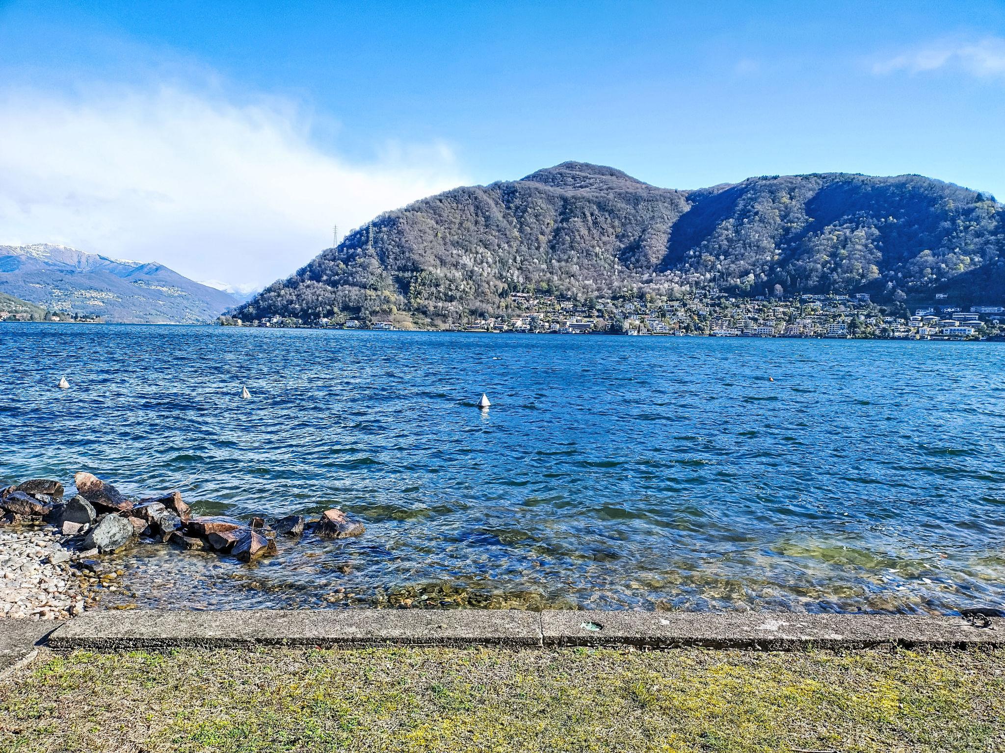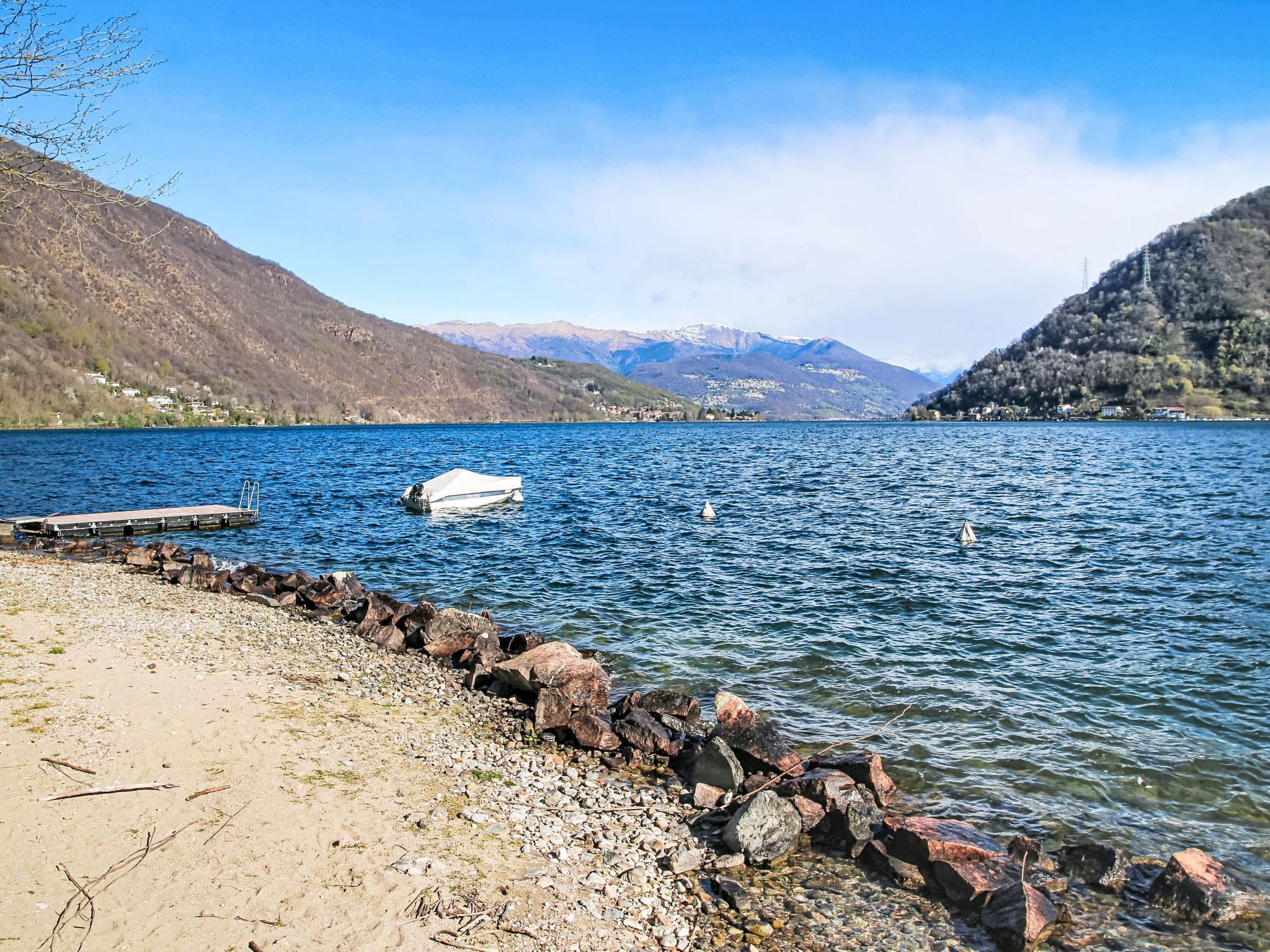 Apartment block "Primavera". 2 km from the centre of Porto Ceresio, 6.5 km from the centre of Lavena Ponte Tresa, 20 m from the lake, road to cross, on a main road. For shared use: private beach. Motor access to the house. Parking (limited number of spaces) at 20 m. Supermarket 2.2 km, restaurant 1 km, bus stop 200 m, railway station "Porto Ceresio" 2.2 km, shingle beach 20 m (small). Nearby attractions: Luino 19 km, Campione d'Italia 23 km, Lugano 20 km. Well-known lakes can easily be reached: Maggiore 20 km, Como 28 km. Please note: car recommended, no lift.