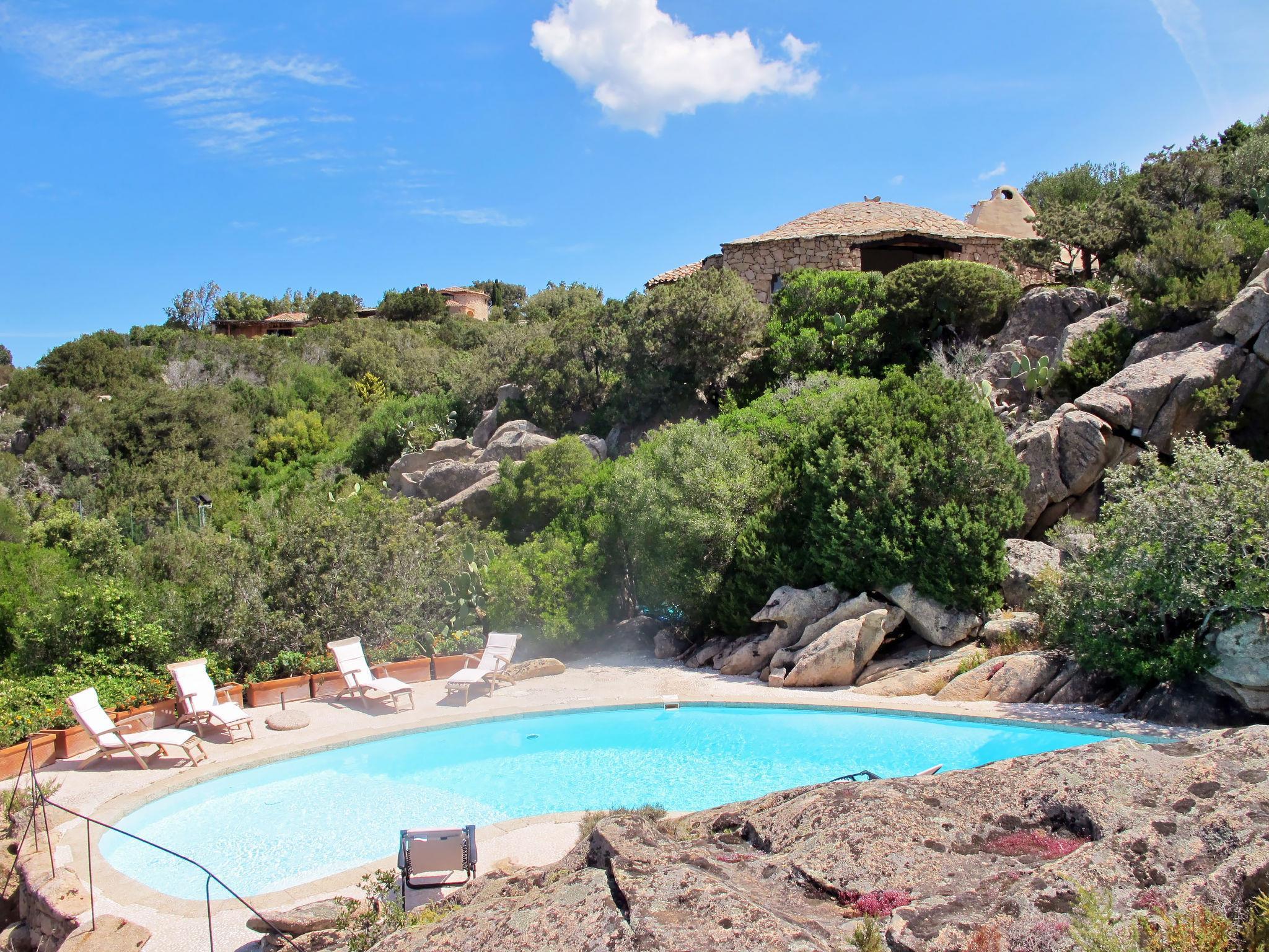 House "Roccia di Volpe". In the district of Cala di Volpe 8 km from the centre of Porto Cervo, 4 km from the centre of Abbiadori, 15 km from the centre of Baia Sardinia, on a slope, residential area (villas), 400 m from the sea, in a cul-de-sac. Private: property 3'000 m2 (fenced), terraced garden with wildlife garden and trees, swimming pool kidney shaped (18 x 5 m, depth 80 - 200 cm, seasonal availability: 01.May. - 15.Oct.). Outdoor shower, terrace, garden furniture, barbecue, pool maintenance by the owner/gardener. Motor access to the house (20 m via unmade road). 20 m footpath to the house. Roofed, parking (for 2 cars) on the premises. Supermarket 4 km, bus stop 8 km, sandy beach "La Celvia" 400 m. Golf course (18 hole) 2.5 km. Please note: car recommended. The stairway to the pool has in parts an open railing and in some parts no railing at all. Small children must therfore be accompanied by adults.