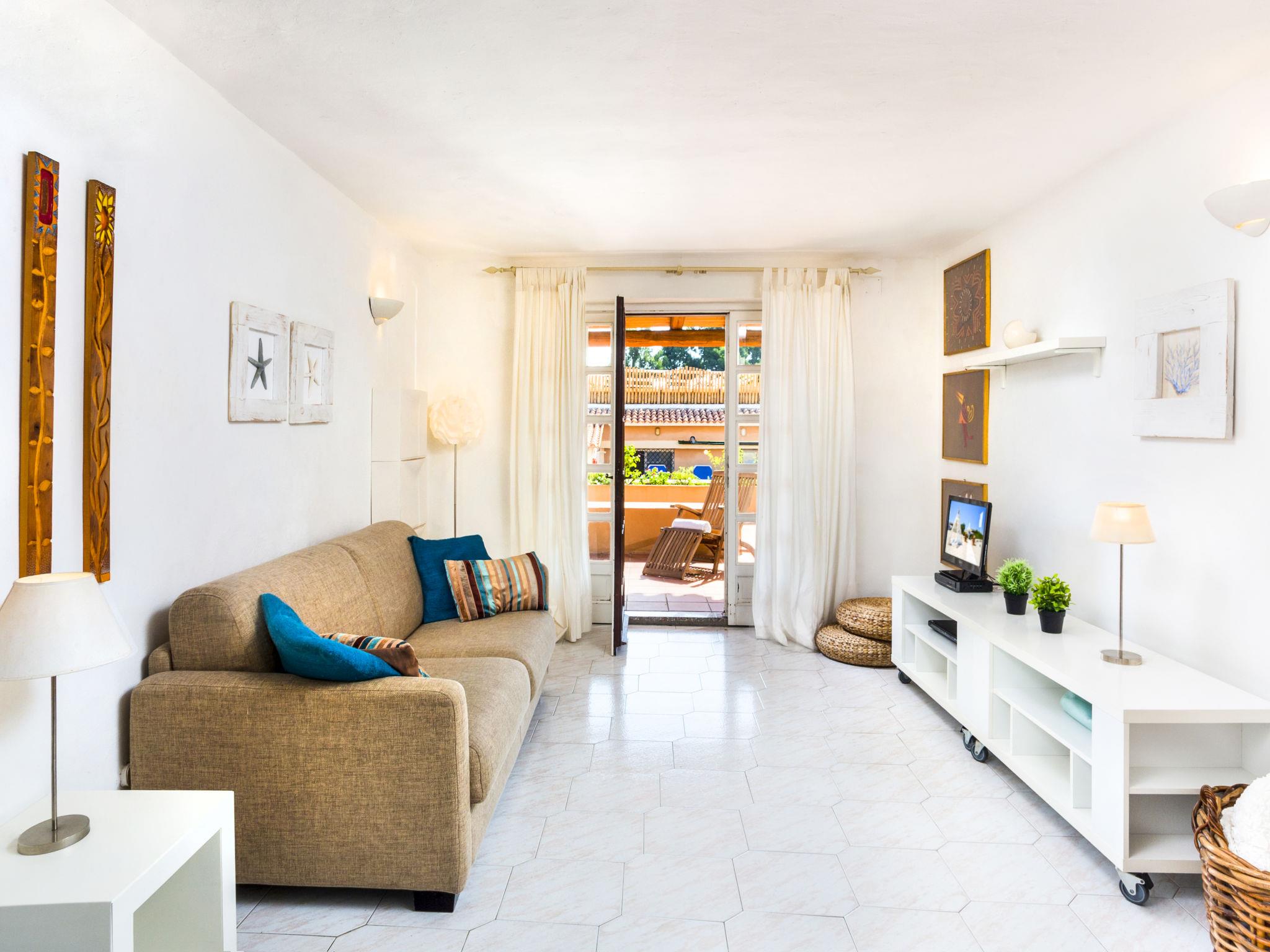 Resort "Bougainvillae", 3 storeys, built in 1985. 70 apartments in the residence. 1.5 km from the centre of Porto Cervo, on the outskirts, 5 km from the centre of Baia Sardinia, 15 km from the centre of Arzachena, 300 m from the sea. For shared use: property (fenced), well-kept garden with plants and trees, swimming pool (15 x 10 m, depth 250 cm, seasonal availability: 01.Jun. - 30.Sep. pool opening hours: 09:00-13:00 and 15:00-20:00). Outdoor shower. In the complex: reception, restaurant. Public parking. Shop, supermarket 300 m, bus stop 400 m, sandy beach "Spiaggia dei Gigli" 300 m. Marina 300 m, golf course (18 hole) 5 km. On request: airport transfer to the holiday accommodation. Please note: the photograph shows a typical example.