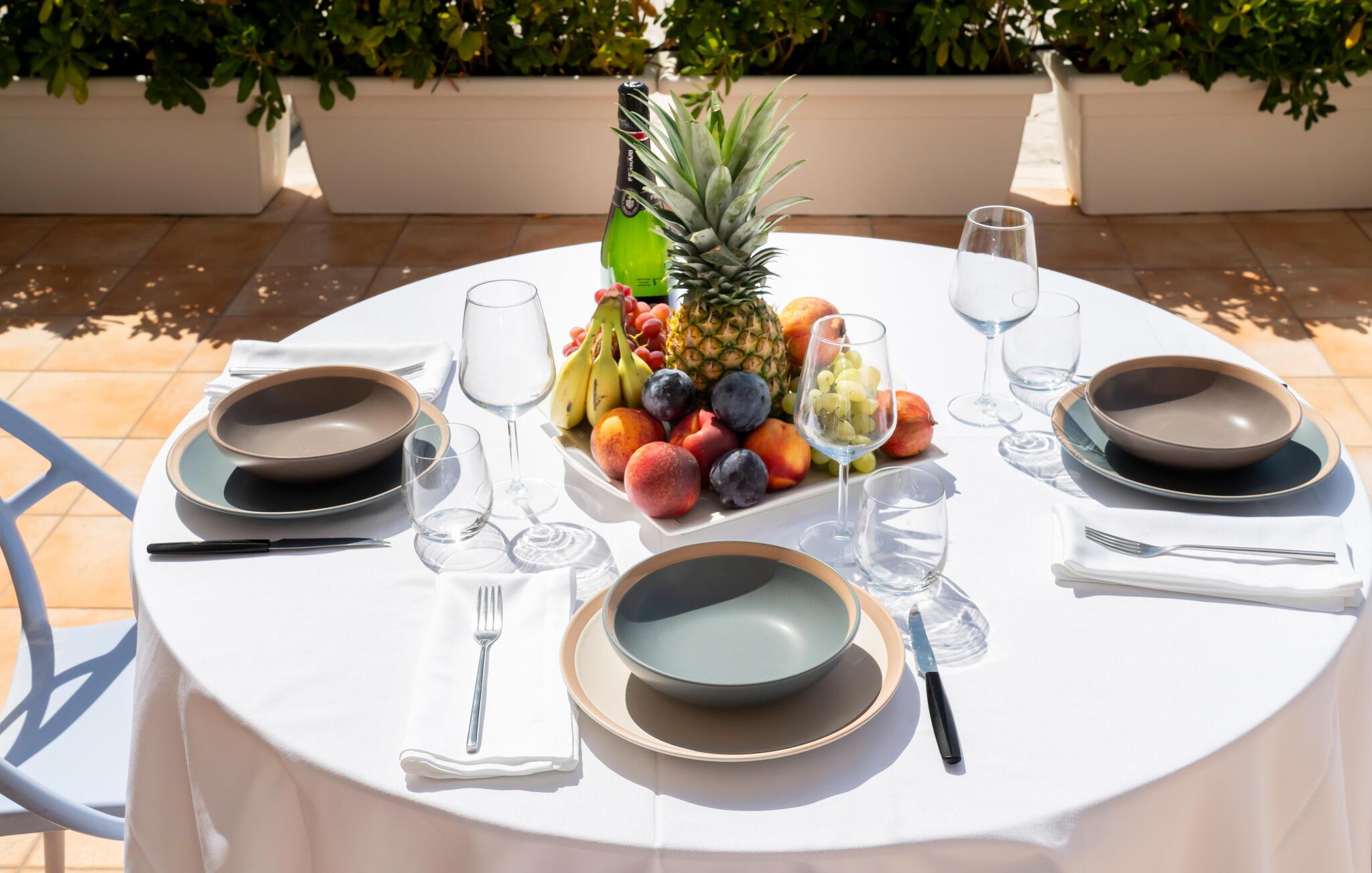 Træd ud på terrassen og nyd det turkisblå hav. Sid ved bordet under pergolaen og nyd jeres måltider under åben himmel. Læn jer tilbage og nyd solen. Det velholdte udendørsområde skaber en åben middelhavsatmosfære. Dvæl her og nyd nærheden til kysten.