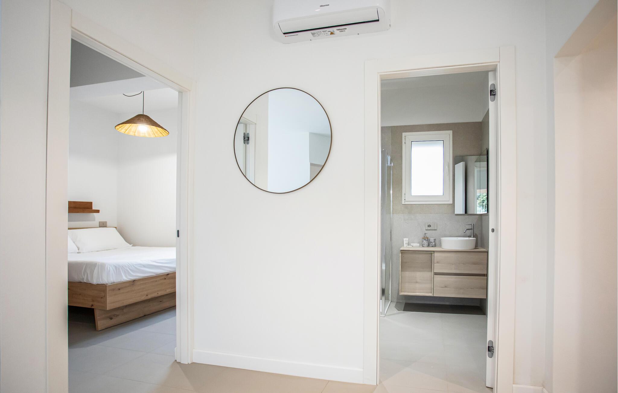 Tilbring en solrig ferie nær stranden i dette moderne feriehus med pool. Kun en kort gåtur fra sandstranden byder denne elegante villa jer velkommen med sit minimalistiske og smagfuldt møblerede interiør. Her kan I nyde en lys og afslappet atmosfære, mens I tilbereder lækre pastaretter sammen, nyder harmoniske måltider og samles i den indbydende stue til en god samtale eller en hyggelig spilleaften. Tag en afslappet dukkert i poolen som det første om morgenen og nyd den fredelige atmosfære under afslappende siestaer på de behagelige liggestole. Tænd grillen og snak over vin og stearinlys indtil de lune sommernætter. Gå en tur langs Porto Cesareos turkiskyst og se fiskerbåde og pelikaner i den lille havn. Tag en dukkert i det lave, klare vand ved Punta Prosciutto-stranden og vandr langs den livlige promenade i Torre Lapillo med en gelato i hånden. Gå en tur gennem den barokke gamle bydel i Nardò, vandr gennem duftende fyrreskove til skjulte bugter i naturparken Porto Selvaggio, og smag frisk fisk og skaldyr i Gallipoli.