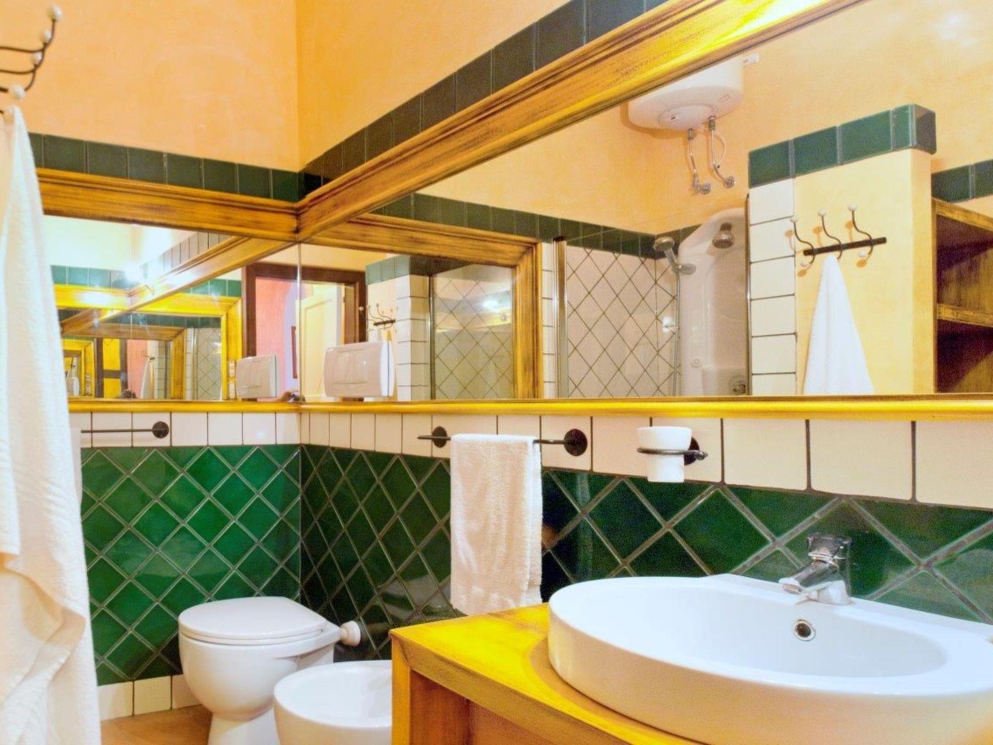 The interior of the historic and comfortable accommodation is on two floors. On the lower floor there are two bedrooms, a large bathroom, a living area and entrance area, and the kitchen. One of the two bedrooms has a double bed, with an east-facing window at its head and a large wardrobe. The other bedroom has a bunk bed and a wardrobe. In the living and entrance area and in the kitchen there are double sofa beds. On the upper floor there is a third bedroom with an adjoining bathroom. It has a single bed and a cupboard. The room on the upper floor is connected to the ground floor via a lift. The accommodation also has air conditioning and an ironing board, iron and hairdryer are provided. A washing machine and wireless internet access are available.