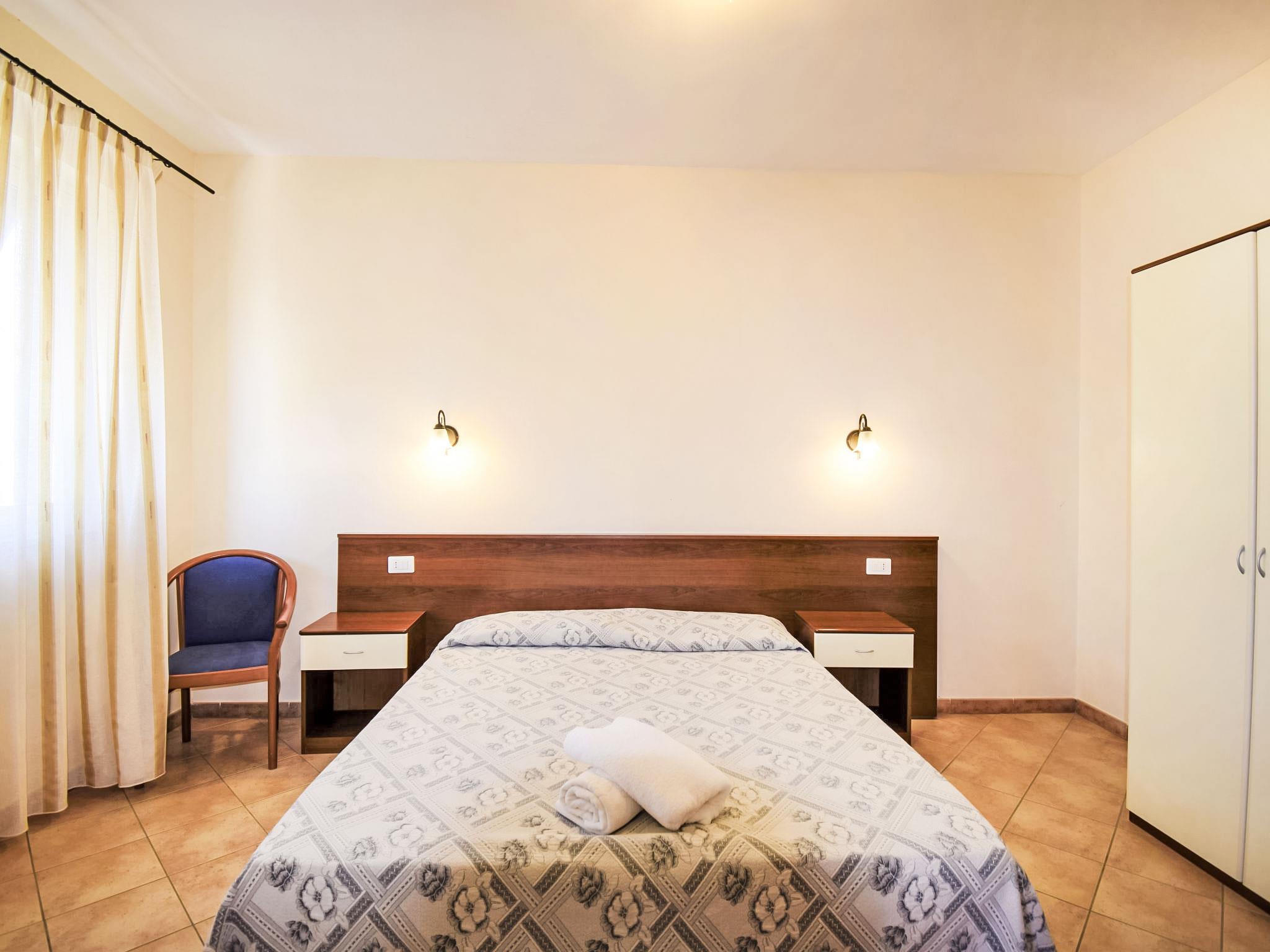 2-room apartment 30 m2 on 1st floor. Simple and practical furnishings: living/dining room with 1 x 2 bunk beds, TV (flat screen). Exit to the balcony. 1 double bedroom with air conditioning. Small kitchenette (2 hot plates). Shower/bidet/WC. Heating, forced-air heating. Heating available only from 01.12. to 31.03. Small balcony 3 m2. Balcony furniture. Facilities: hair dryer. Internet (WiFi, free). Parking (1 car). Please note: fridge without freezer. Smoke alarm, fire extinguisher. IT084028B45ZYBHTGH