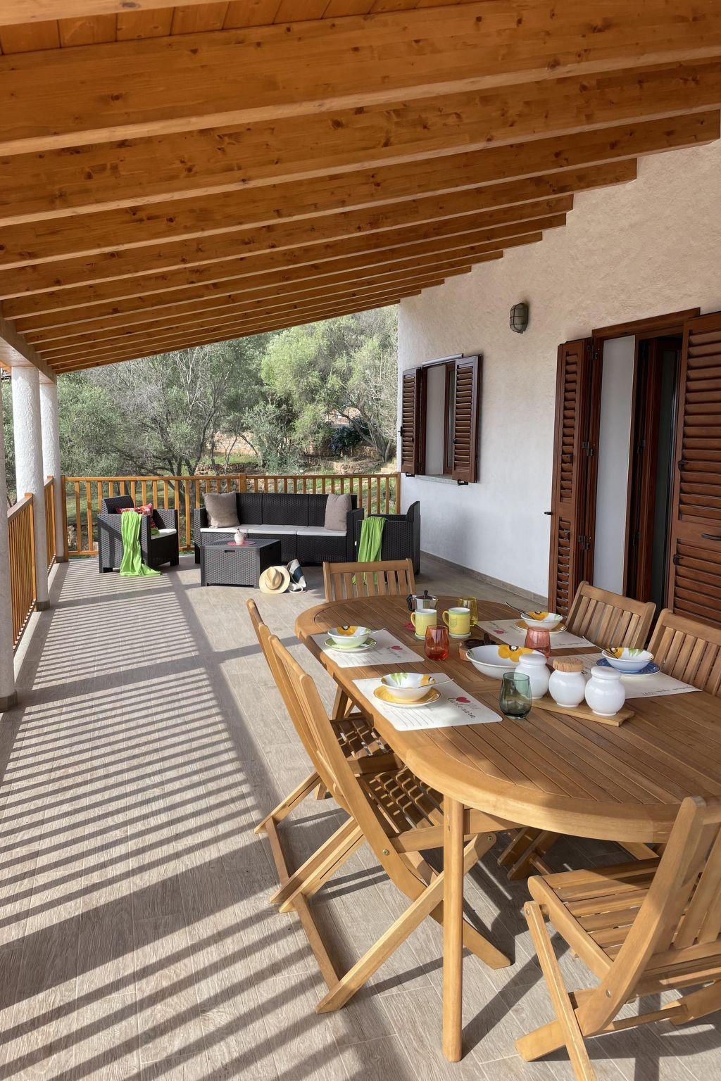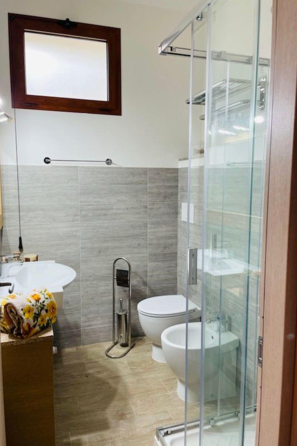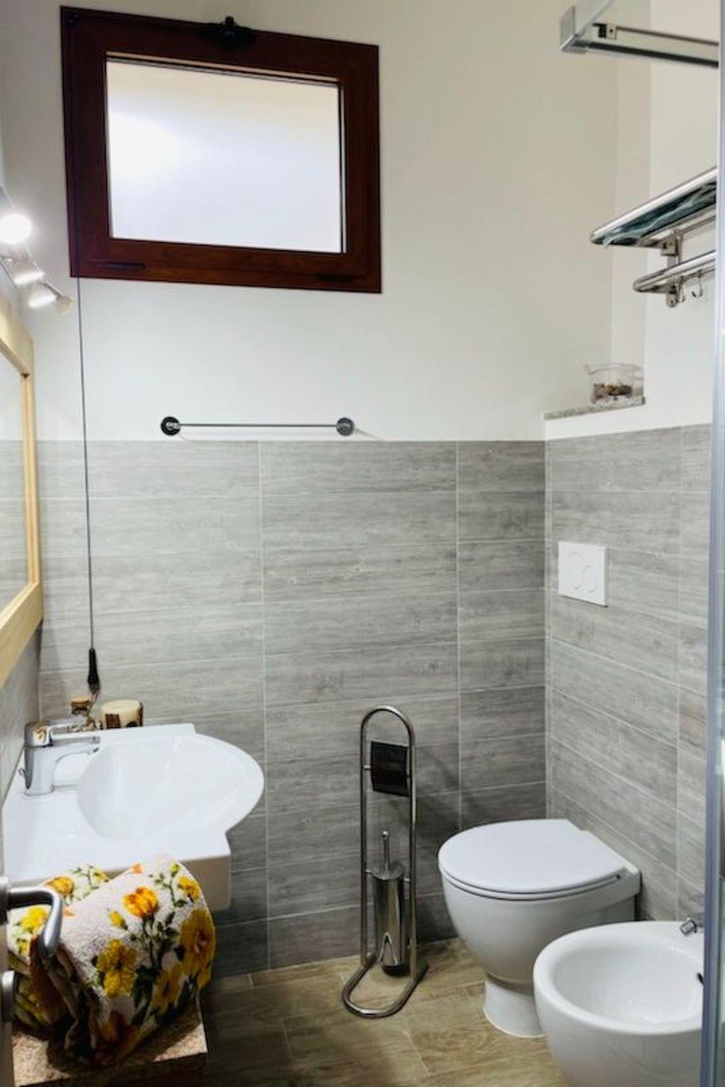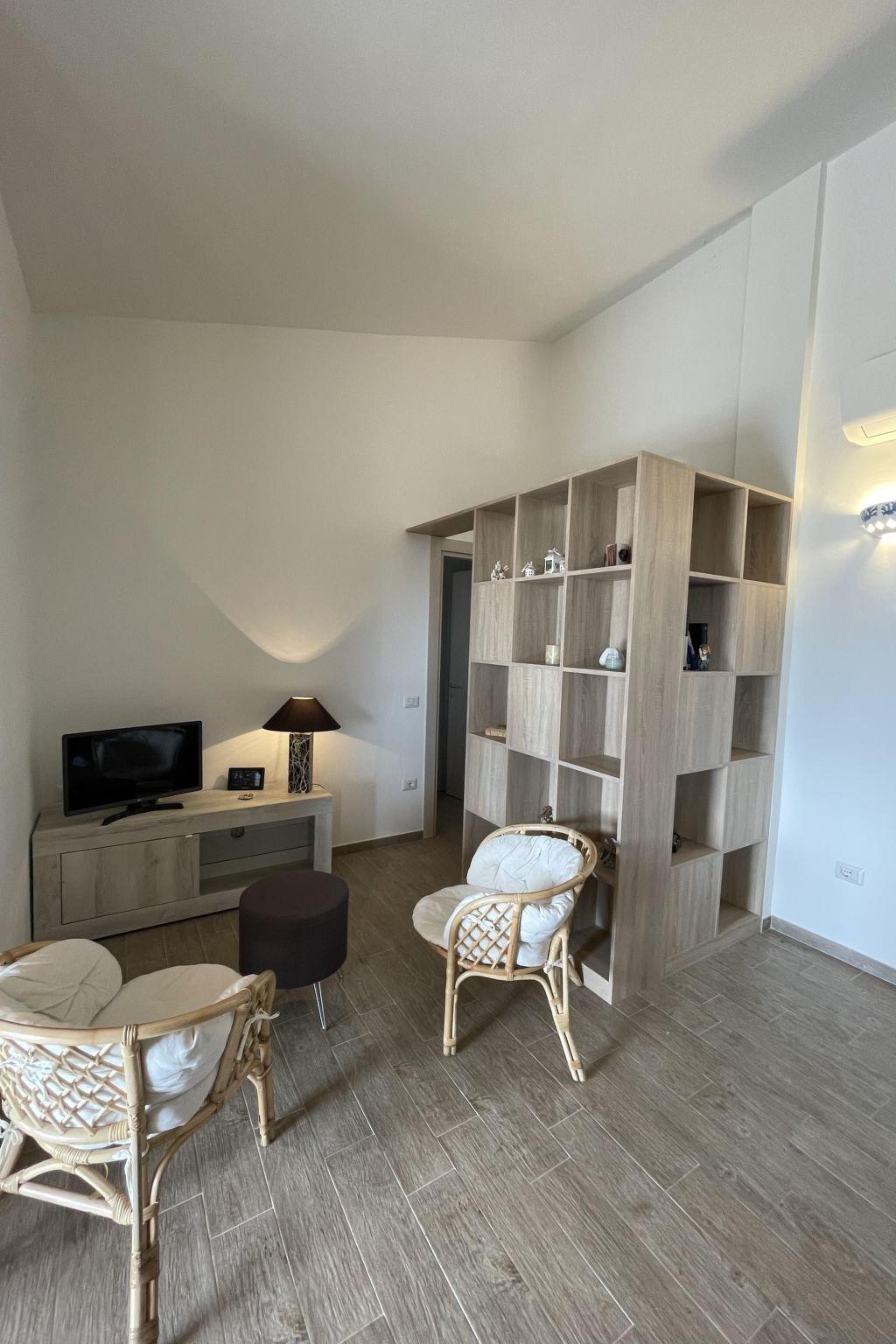 The old building was completely renovated in 2021 keeping the original style of what was once the guest quarters of Don Gelmini's old community. From the large park of Mediterranean maquis and succulent plants, one reaches the structure that opens onto the hill from which there is a 180° view of the entire gulf. The large patio with a relaxation and dining area, introduces us to the flat where there is a large and modern fully equipped kitchen and a TV area. This is completed by 3 double bedrooms and 2 bathrooms with shower. The entire property is equipped with wi-fi connection and air conditioning. Pets are not allowed.
