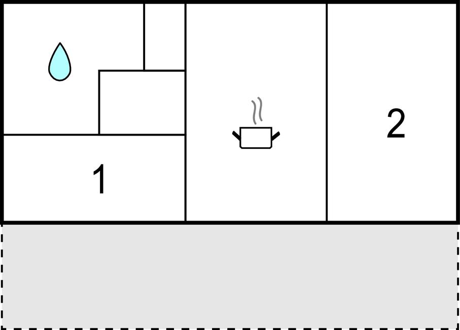 Badeværelse (nr. 1) - WC. Varmt og koldt vand. Bruser