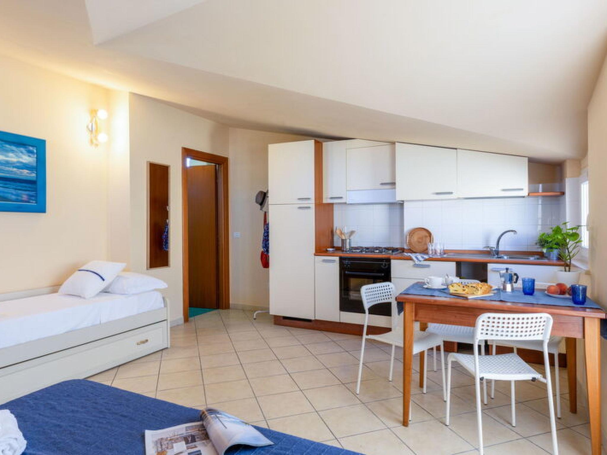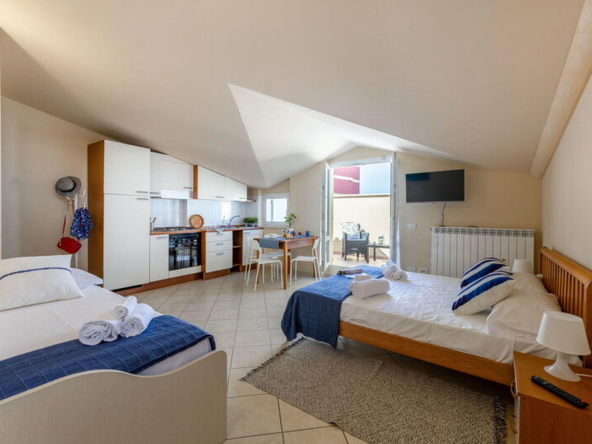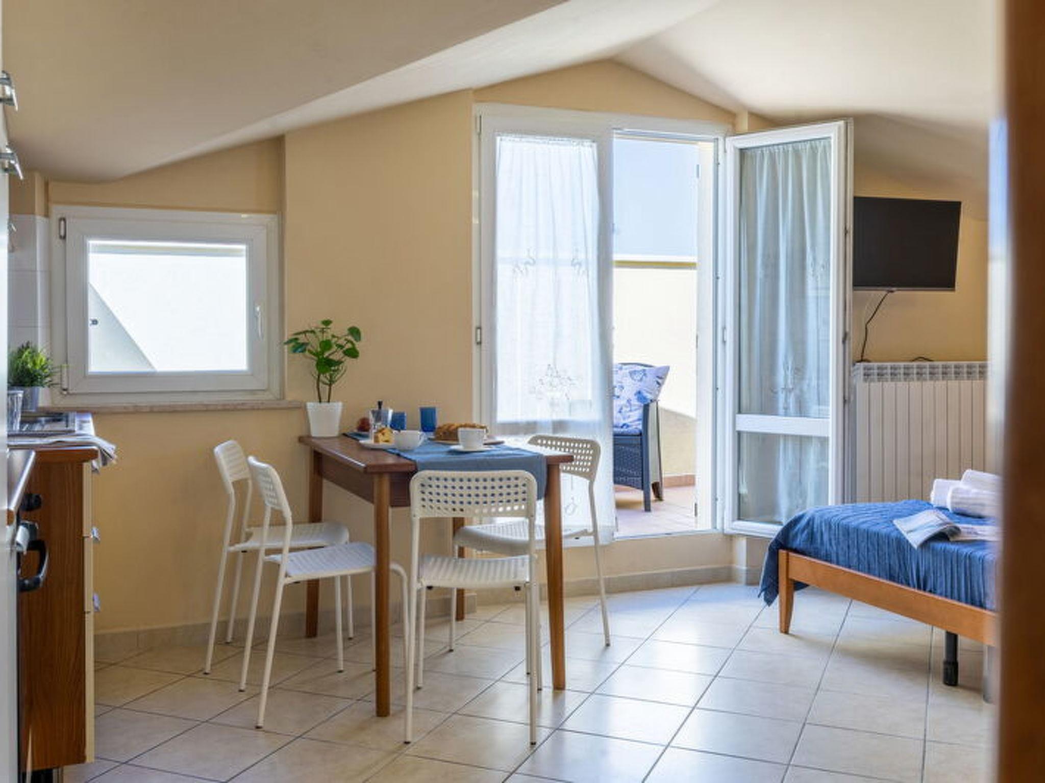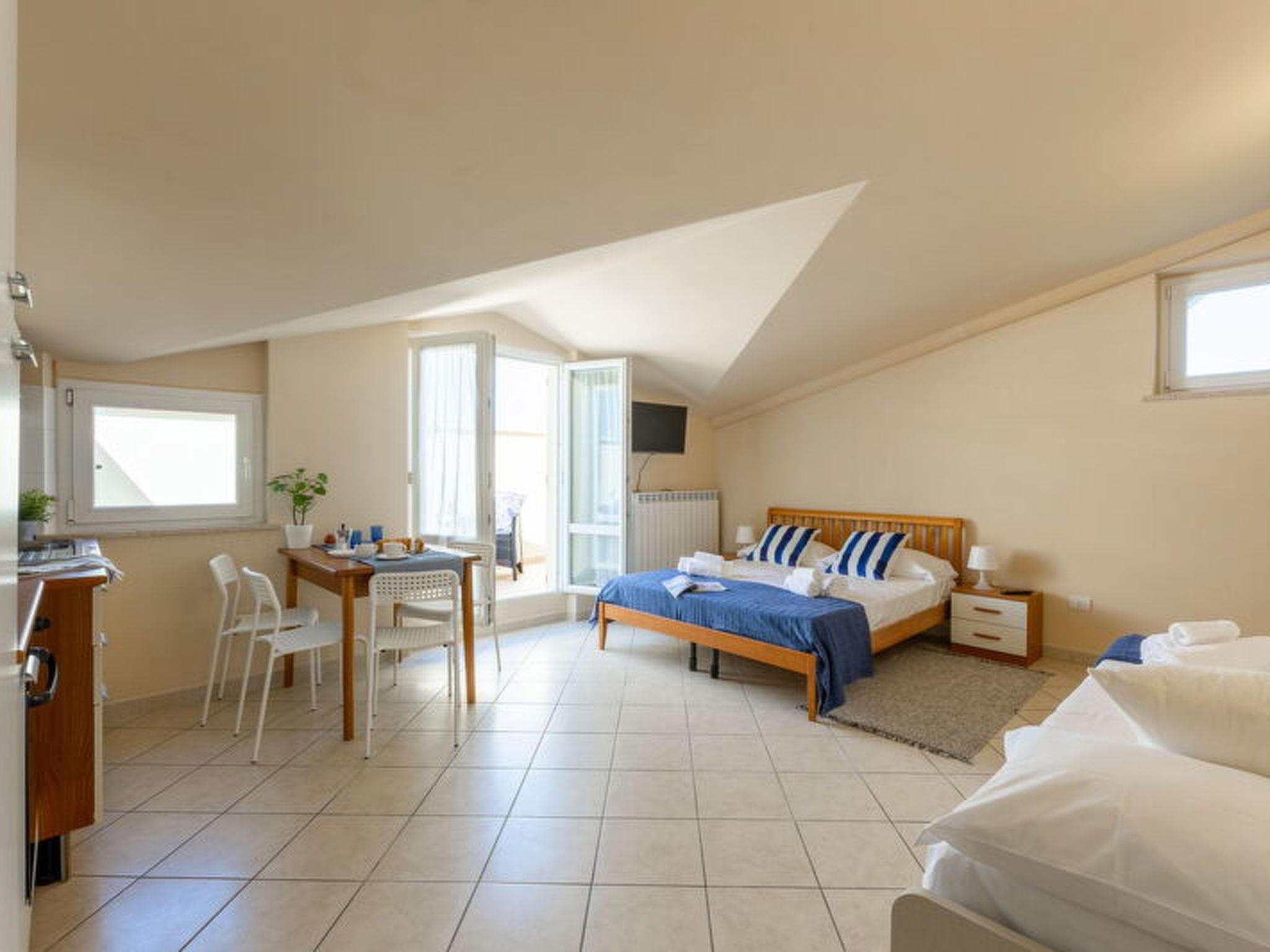 Sweet Conero is a cozy attic apartment located in Porto Recanati, on the third and top floor of a modern apartment building with elevator access, just 50 meters from the beach. Recently renovated, the home is perfect for a relaxing and comfortable holiday.The bright, air-conditioned open space sleeps four, features a fully equipped kitchen, a full bathroom, and a spacious terrace furnished with a table and chairs, ideal for al fresco dining or relaxing at sunset. The town center, restaurants, bars, supermarkets, and all major amenities are just a few minutes' walk away. A modern and functional retreat, perfect for enjoying Porto Recanati's seaside lifestyle.Open spaceDining tableKitchenetteDouble bed2 single beds1 full bathroomWELCOME COURTESY KIT PROVIDED3 towels per person (1 bath towel, 1 face towel, 1 bidet towel)2 sheets per bed2 pillowcasesBATHROOM:1 shower mat for each bathroom1 liquid hand soap with disposable dispenser for each bathroom1 liquid shower shampoo with disposable dispenser for each bathroom2 rolls of wrapped toilet paper for each bathroomKITCHEN1 disposable kitchen kit containing kitchen sponge, dish sponge, liquid dish soap, dishwasher tab, and garbage bags1 bottle of water1 roll of paper towels1 dish towelCLEANINGCleaning is done at the beginning and end of your stayINTERNETFree Wi-Fi is availableAIR CONDITIONING AND HEATINGThe house is equipped with air conditioning and heat pump heatingCHILDRENChildren are welcome and all rooms are SuitableACCESSIBILITYIt is located on the third floor of a building with an elevator.NOISEThe house is close to the seafront, so in the evening you can hear the noise of people walking.PETPets are allowed upon request.PARKINGfree and on payment public parking upon availability