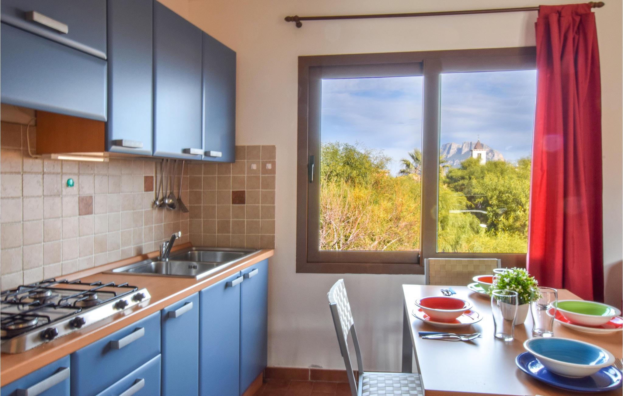 Udover ruiner og historiske bygninger kan I se frem til fantastiske naturlandskaber på en ferie her på Sardinien. Fra denne lejlighed på første sal har I en fantastisk udsigt over bjergene og området. I kan nyde synet med en afslappet morgenmad på den overdækkede terrasse.