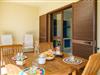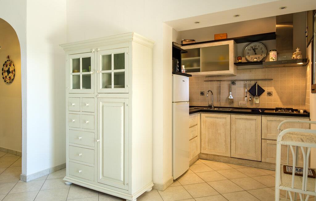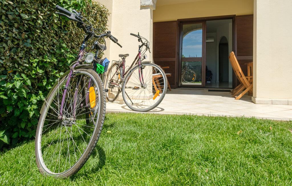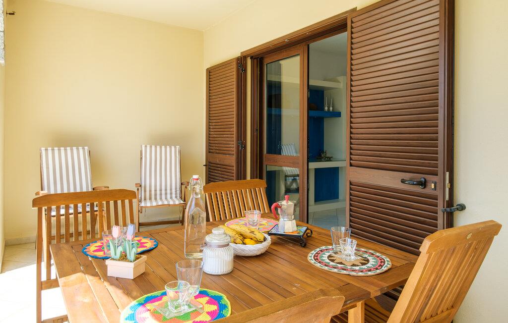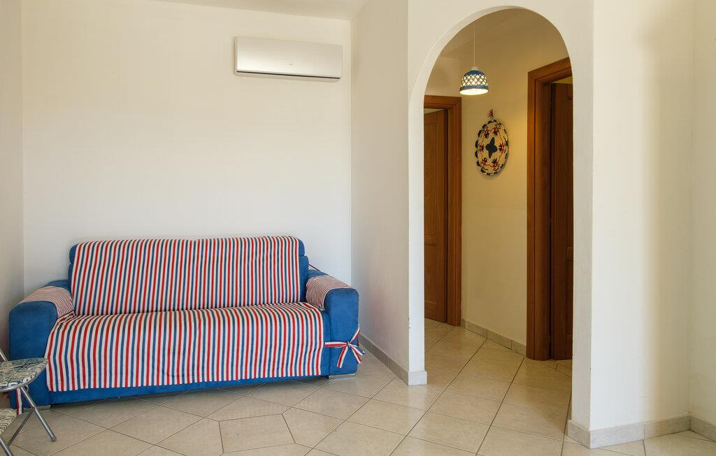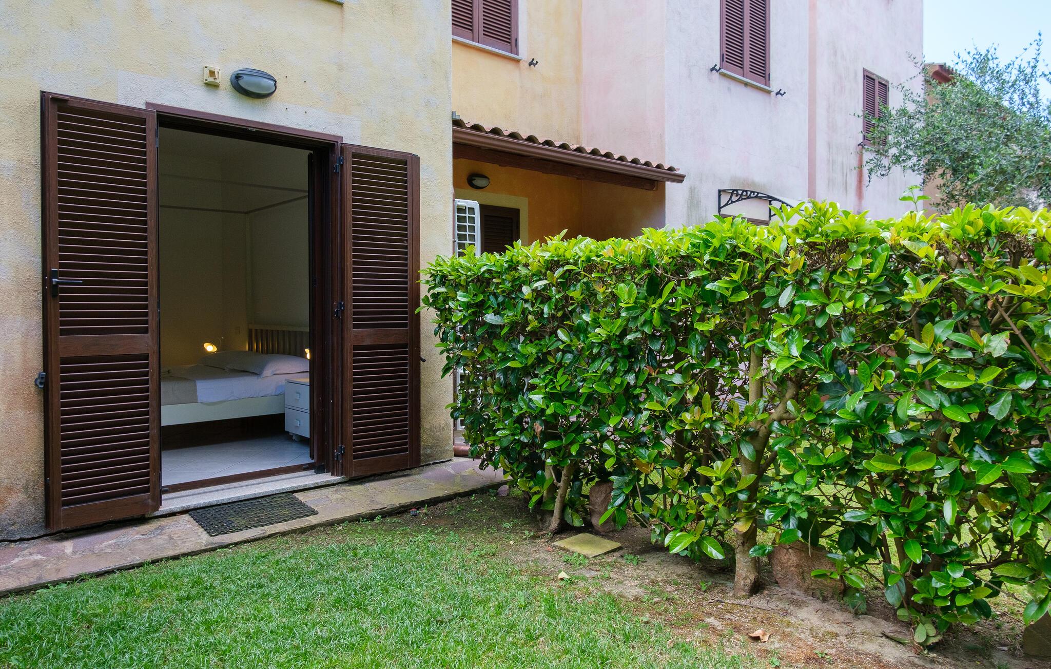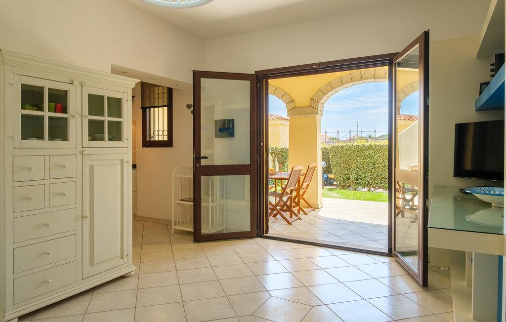 Dette lyse feriehus med plads til familien udgør en god base for en skøn ferie på Sardinien. Køkkenet har direkte adgang til den overdækkede terrasse med de smukke hvælvinger, hvor I kan nyde jeres måltider eller bare en god kop kaffe. Det ene soveværelse har adgang til den lille fine have.