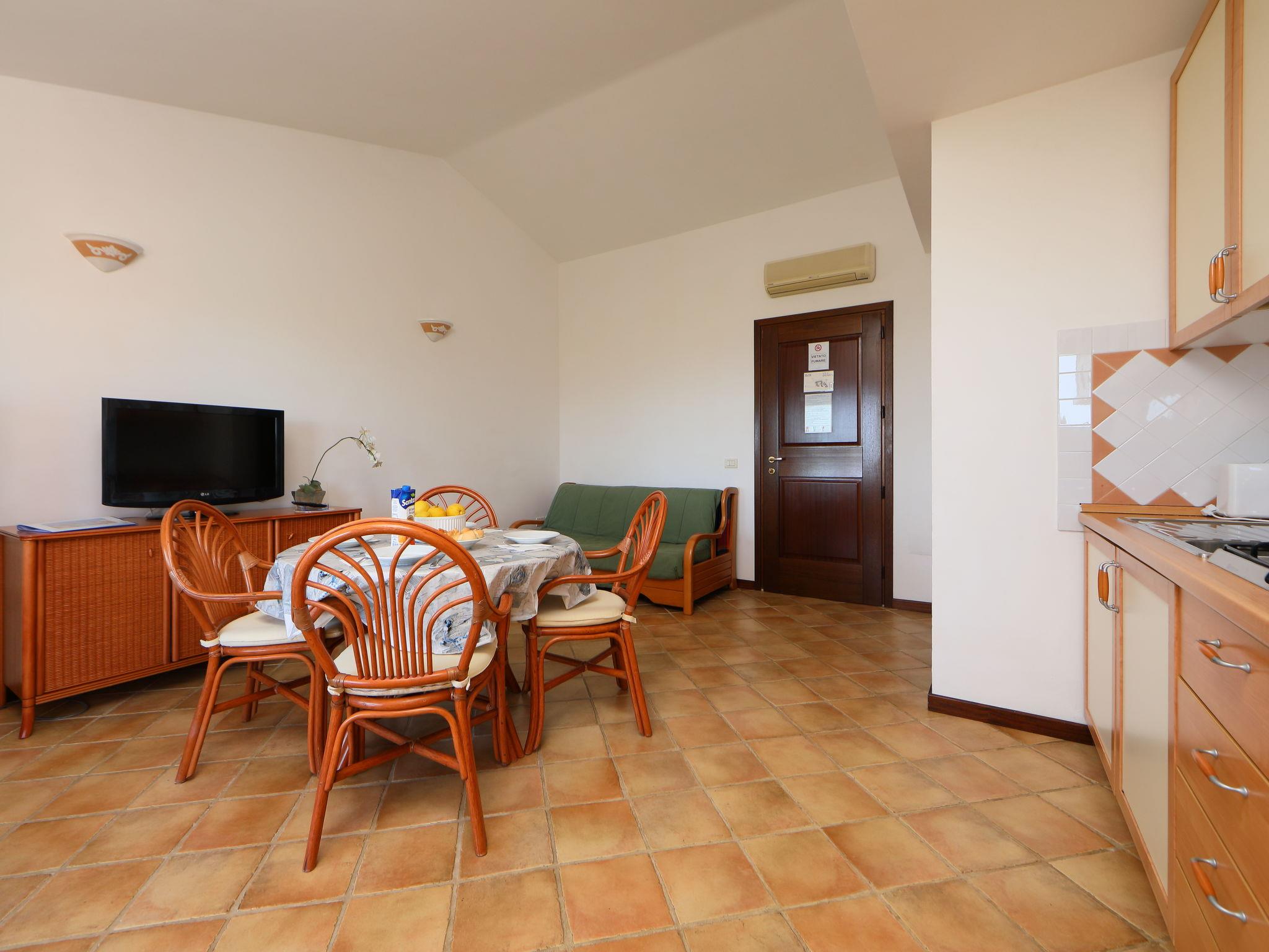 "Dalia 18 - Vista Village", 2-room terraced house 57 m2, on the ground floor. Comfortable and cosy furnishings: living/dining room with 1 double sofabed, satellite TV and flat screen. Exit to the veranda. 1 double bedroom. Walk-through room with 1 bed. Kitchenette (4 hot plates, dishwasher, freezer) with dining table. Shower/bidet/WC. Air-conditioning, forced-air heating. Patio partly roofed. Terrace furniture. Beautiful view of the sea. Facilities: safe, hair dryer. Parking space n D18 (roofed, fenced), width 230 cm. IT090084B4000E2088
