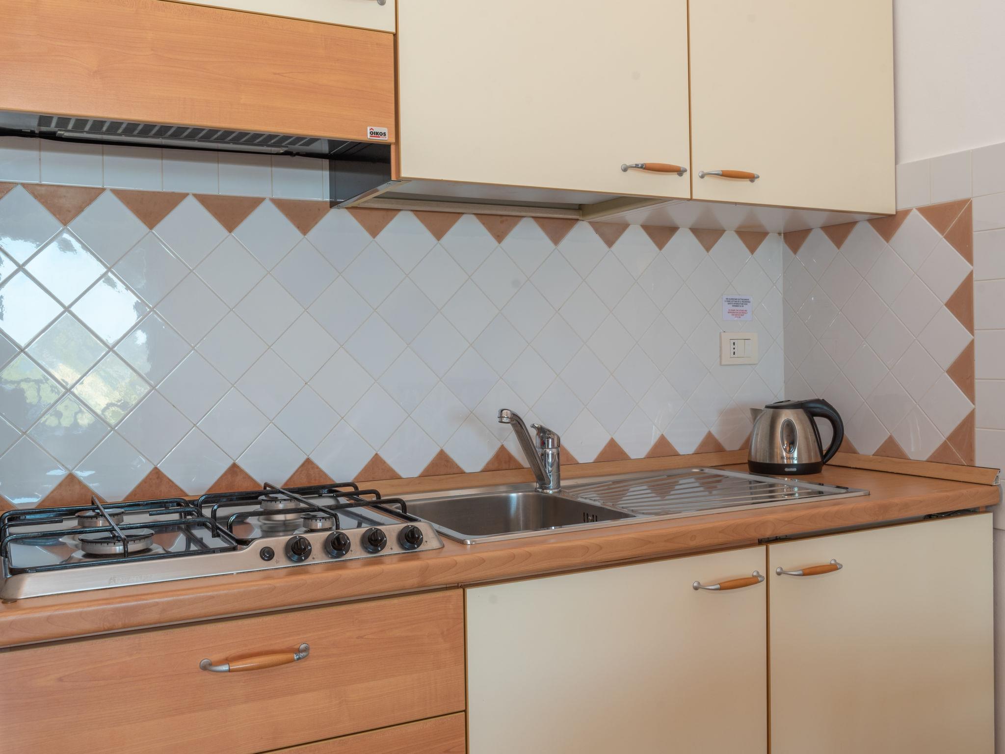 "Dalia 19 - Vista Village", 2-room terraced house 55 m2 on 1st floor. Comfortable and cosy furnishings: living/dining room with 1 double sofabed, satellite TV and flat screen. Exit to the terrace. 1 double bedroom with veranda. Kitchenette (4 hot plates). 2 showers/bidet/WC. Air-conditioning, forced-air heating. Terrace roofed, garden. Terrace furniture. View of the sea. Facilities: children's high chair, baby cot (extra). Parking space n D19 (roofed, fenced), width 230 cm. Please note: the house is on two levels separated by some steps. IT090084B4000E2088