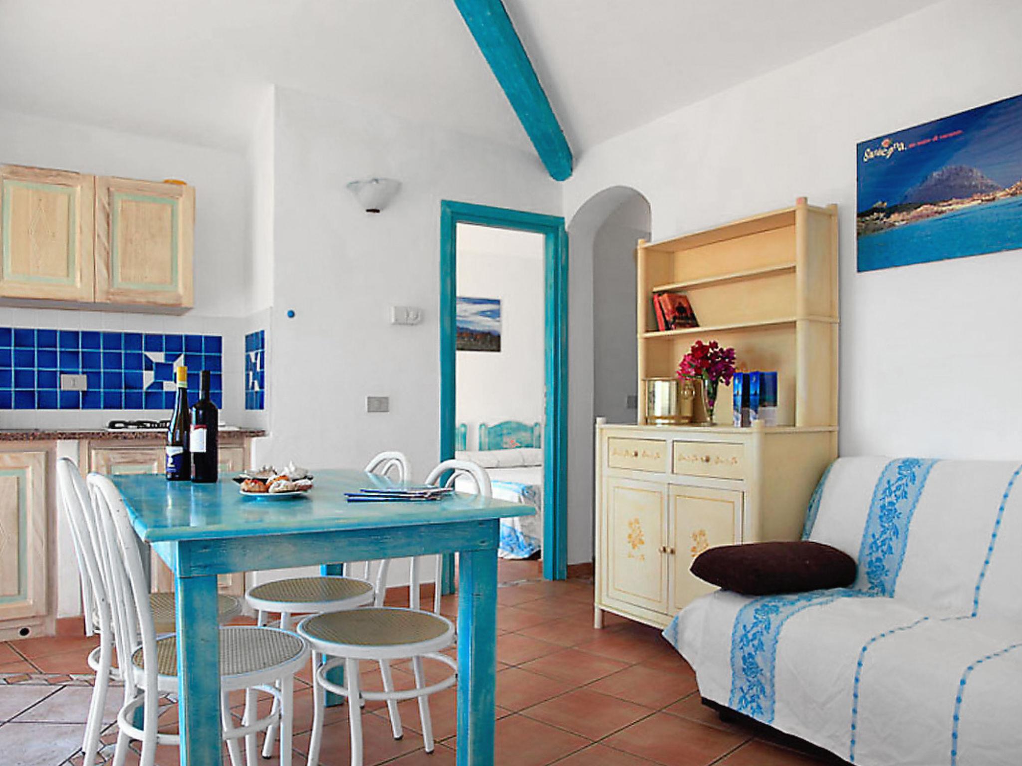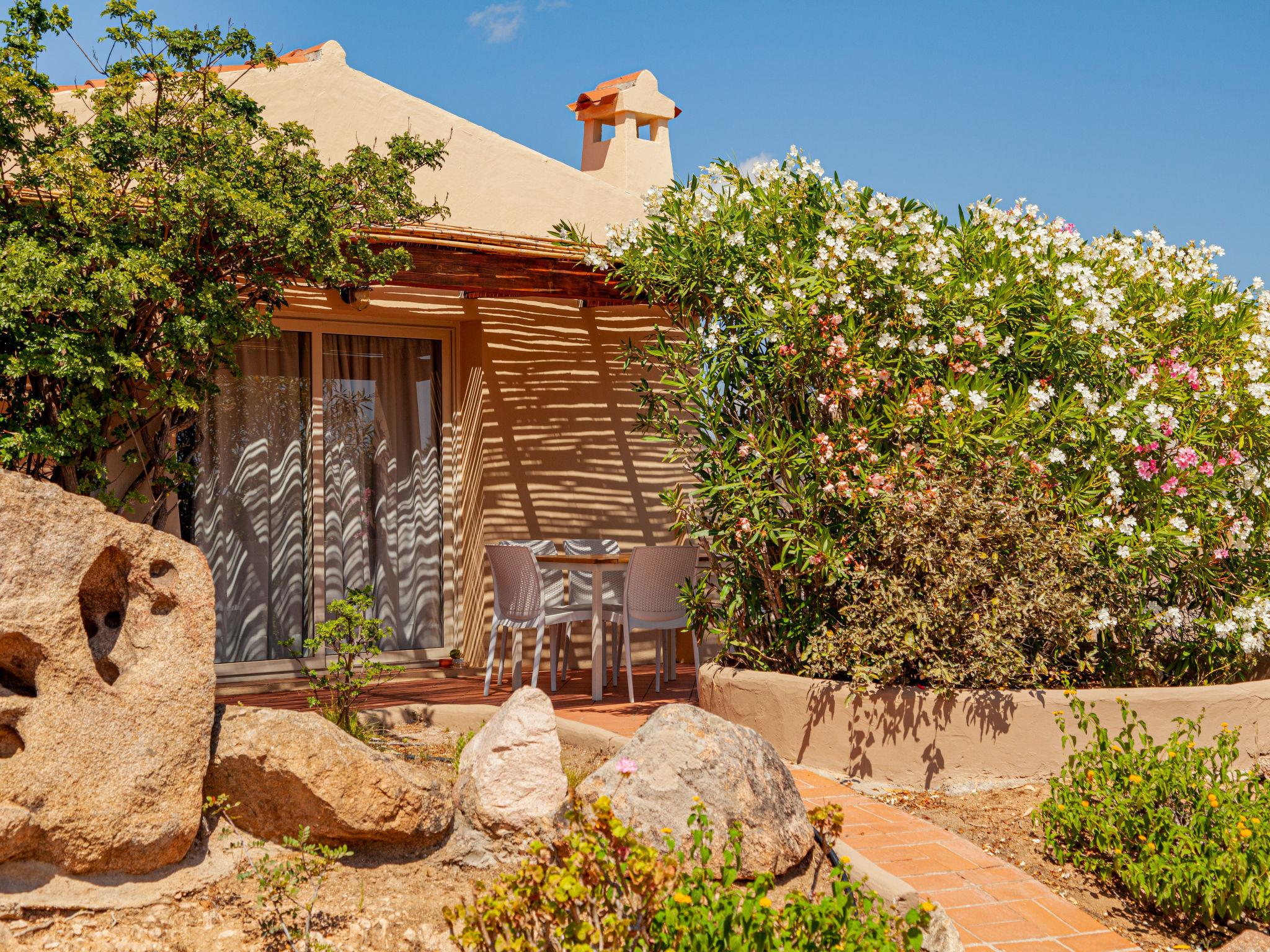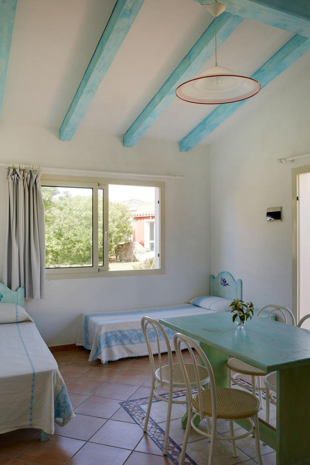 "Villa 6 - Lu Nibareddu", 3-room house 60 to 65 m2. Simple furnishings: living/sleeping room with 2 beds, dining table, satellite TV, air conditioning and forced-air heating. 1 double bedroom with shower/WC. 1 room with 2 sleeping facilities. Kitchenette (4 gas rings). Shower/WC. Heating not available in all rooms. Terrace. Terrace furniture. Facilities: baby cot (extra). Maximum 1 pet/ dog allowed. IT090084A1000F2027