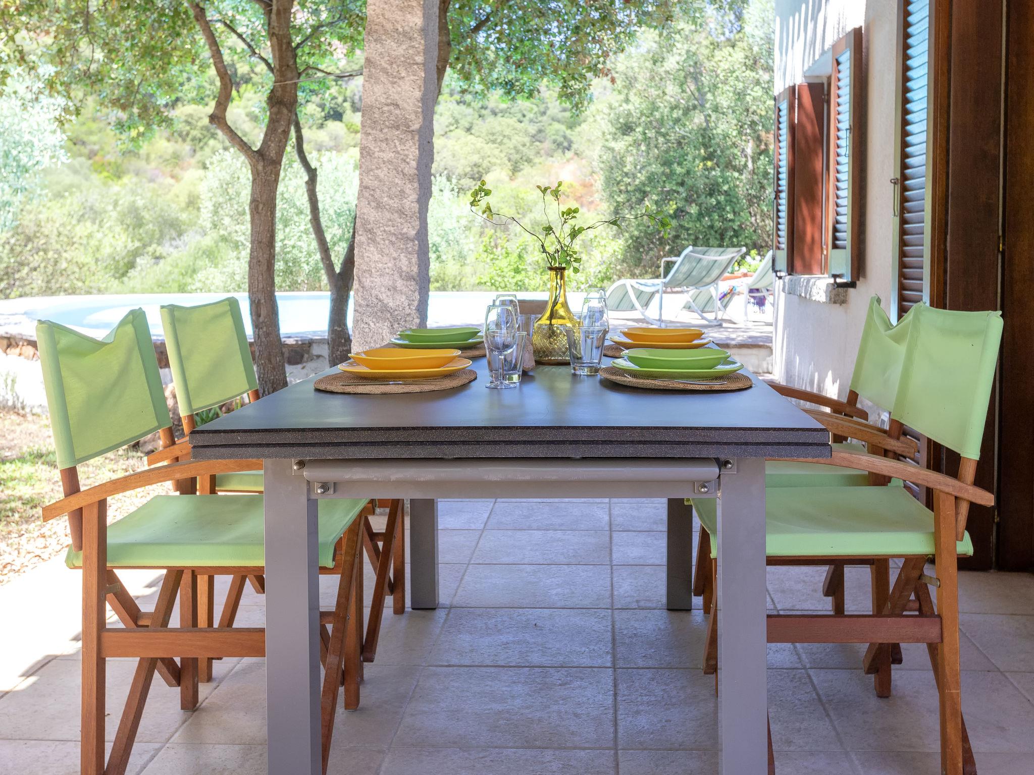 Cosy, comfortable single-family house "Chidda Di", surrounded by trees. In the resort Trudda, 17 km from the centre of San Teodoro, in the residential district, 12 km from the sea, 12 km from the beach. Private: property (fenced), garden 480 m2 with wildlife garden and flowers, swimming pool (10 x 4 m, depth 140 cm, seasonal availability: 01.May. - 30.Sep.). Parking at the house, public parking. Supermarket 5.4 km, restaurant 7.5 km, bar 2.2 km, bus stop "Loiri" 5.7 km, sandy beach "Porto Istana" 12 km. Nearby attractions: San Teodoro 18 km, Porto S. Paolo 12 km, Olbia 13 km, Brandinchi 17 km, Porto Cervo 40 km. Please note: car recommended.