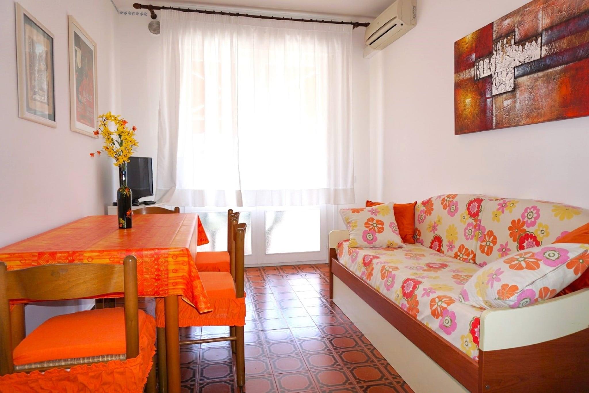 Denne lyse toværelseslejlighed ligger på tredje sal i ViaB.Diaz3 i PortoSantaMargherita, kun 70 m fra havet. Den åbne opholdsstue har en dobbelt sovesofa, TV, spiseplads og siddekrog, der løber ud til et fuldt udstyret køkken med kogeplader, mikrobølgeovn, køleskab med fryser, vask og vaskemaskine. Soveværelset tilbyder fleksibel soveplads med en dobbeltseng og en enkelt sovesofa. Et moderne badeværelse har bruser, bidet og toilet. Skub balkondørene op for at nyde den friske havbrise og ophold dig komfortabelt med aircondition. Gæsterne kan benytte sig af dedikeret parkering og fælles udendørs faciliteter, herunder en sæsonbestemt swimmingpool og tennisbane, perfekt til familiesjov eller aktive ophold. Indenfor møder praktisk komfort rummeligt design. Fuldt udstyret køkken og vaskeri sikrer bekvemmelighed, mens balkonen bliver et roligt sted til morgenkaffe eller aftenafslapning. Aircondition forbedrer komforten efter en dag i solen. Den fælles pool og tennisbane inviterer til venskabelig konkurrence og fritid. Med plads til udstyr i opbevaringsrummet og problemfri parkering er denne lejlighed velegnet til familier, venner eller par, og den byder kæledyr varmt velkommen til en virkelig inkluderende ferie. Omgivet af Veneto-kystens naturlige charme og kulturelle rigdom, befinder du dig få skridt fra sandstrande og den pulserende marina ved Porto Santa Margherita, hvor både blidt dukker op, og kystspaads lindrer humøret. Kryds floden ind i historiske Caorle for at beundre det karakteristiske cylindriske klokketårn i den romanske katedral, og besøg Madonna dell'Angelo-helligdommen ved havet, der begge er bemærkelsesværdige for deres skønhed, kulturarv og tidløse kystudsigt. For friluftsentusiaster tilbyder det nærliggende LidoAltanea naturskønne cykelture langs skyggefulde stier, mens strandsjov venter i vandlandet Aquafollie og Luna Park. Middag er et højdepunkt: prøv frisk fisk og skaldyr og familiefavoritter på lokale trattoriaer i Porto Santa Margherita, eller tag en tur til Caorle for fremragende muligheder som PicNic, DaMì og Costiera Trattoria Moderna, der er berømte for autentiske venetianske smagsoplevelser og varm atmosfære.