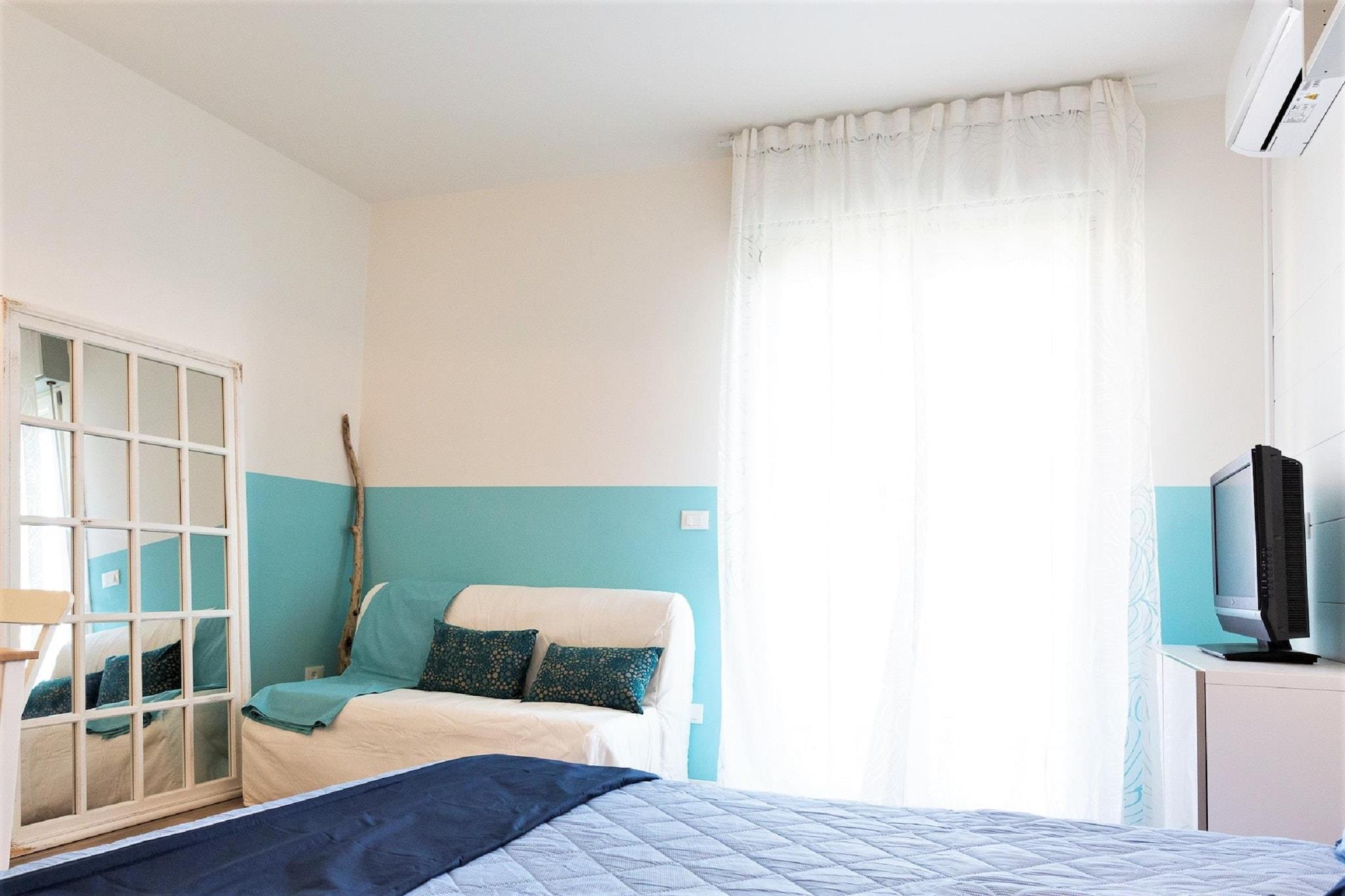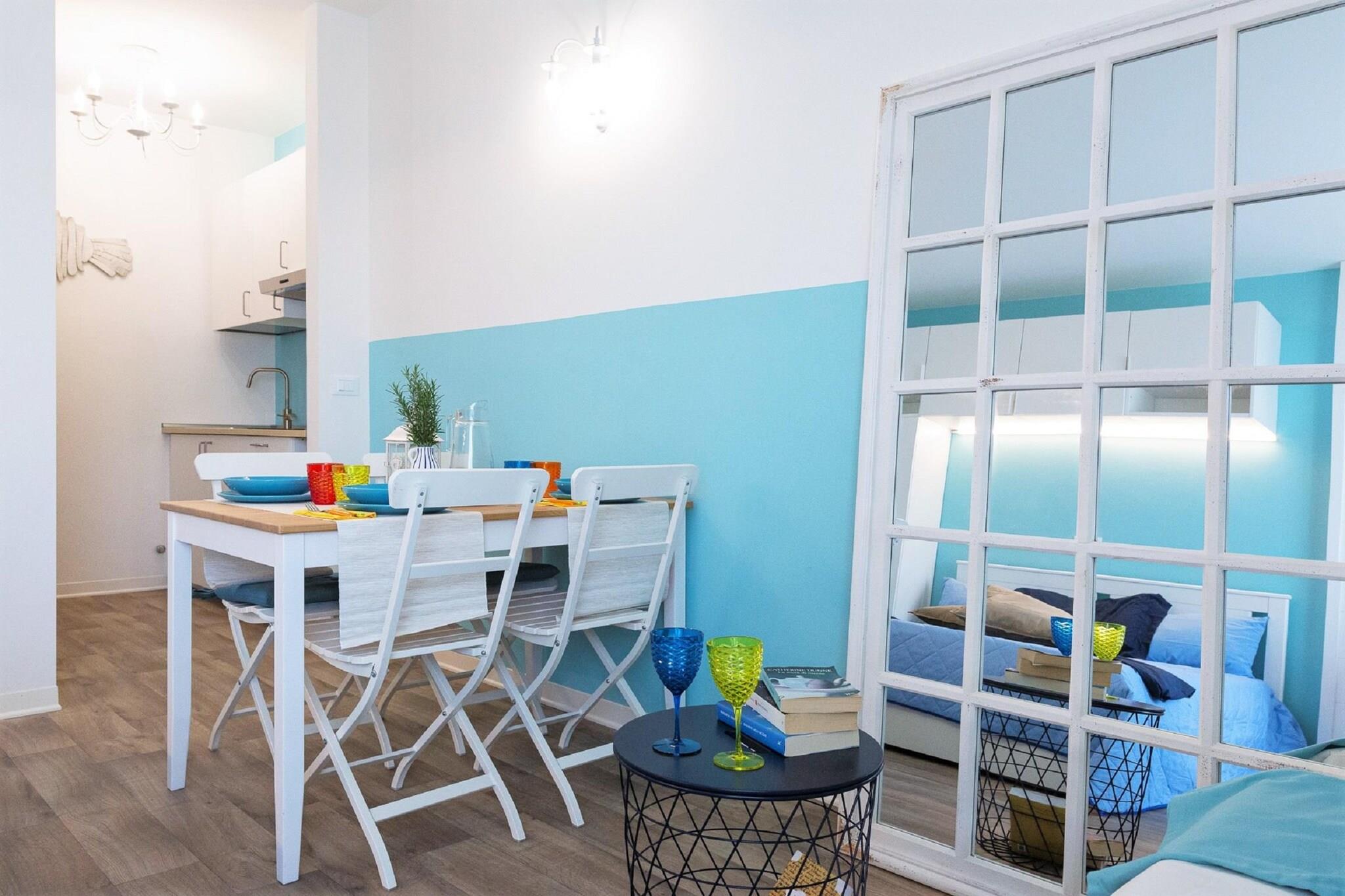 Oplev dette komfortable ophold på første sal i et feriehus i Porto Santa Margherita, omhyggeligt indrettet til par, familier eller små grupper, der ønsker at opleve Italiens adriaterhavskyst i deres eget tempo. Beliggende i et roligt boligområde tæt på kysten, tilbyder huset en afslappet atmosfære med bekvemmeligheden af nærliggende strande, butikker og spisemuligheder. Interiøret er designet til praktisk hverdagsliv med et lyst åbent rum, der kombinerer et opholdsområde, spisehjørne og fuldt udstyret køkken. Uanset om du tilbereder morgenmad før en stranddag eller nyder en afslappet middag efter at have udforsket byen, understøtter planløsningen nem selvforplejning og komfortabel fritid. Stuen har to dobbeltsofaer, der giver plads til op til fire gæster. Et moderne badeværelse med bruser betjener husstanden og tilbyder alle nødvendige faciliteter til et problemfrit og bekvemt ophold. Træd ud på din private terrasse for at nyde den friske havluft og et fredeligt øjeblik med din morgenkaffe eller aftendrink. Komfortfunktioner som aircondition sikrer et behageligt indeklima overalt, mens privat parkering på ejendommen gør ankomst og afgang ligetil og stressfri. Med sandstrande, strandpromenader, caféer og restauranter inden for gåafstand tilbyder dette feriested i Porto Santa Margherita en ideel base for at nyde kystlivet. Det er et enkelt, veludstyret hjem for rejsende, der sætter pris på beliggenhed, funktionalitet og friheden ved at bo uafhængigt ved havet.