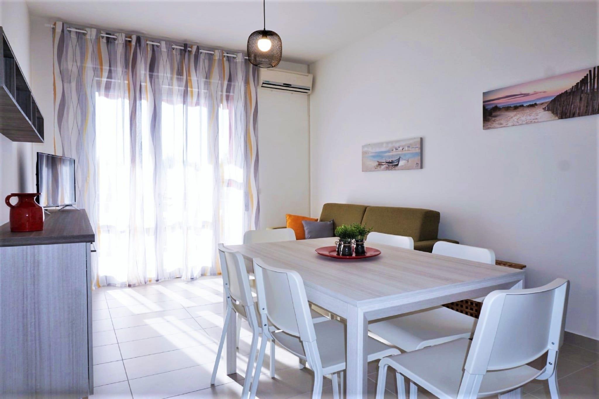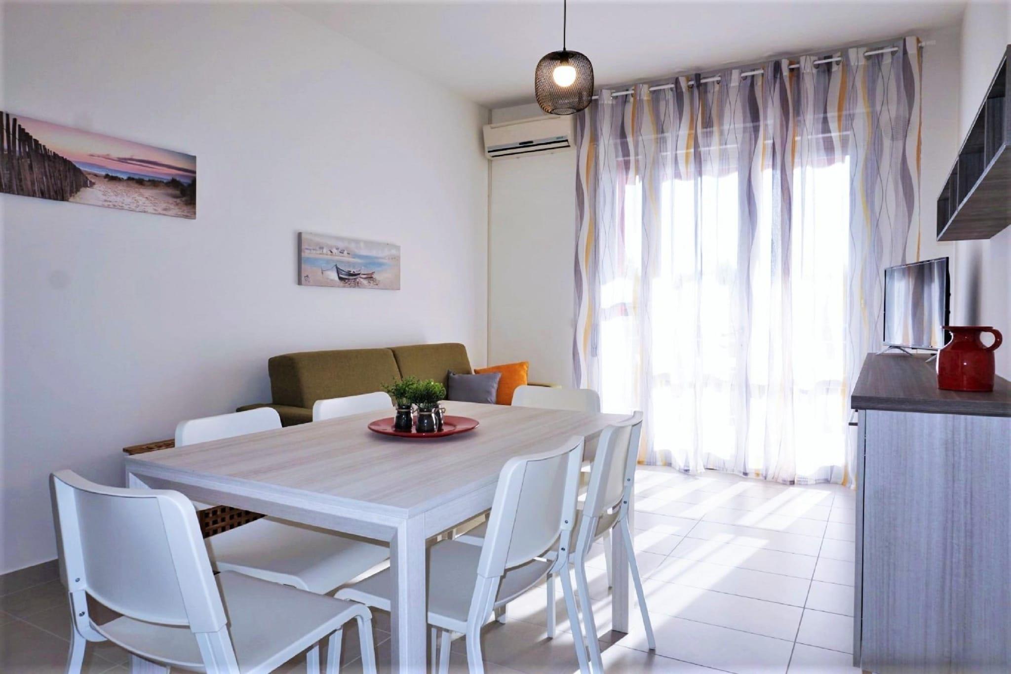 Bo i dette smukke feriehus, der er udstyret med en attraktiv privat terrasse og et attraktivt miljø - beliggende på første sal i et boligkompleks i Caorle, er denne praktiske ferielejlighed ideel til par eller små familier, der søger et afslappet strandophold med fordelen af fælles poolfaciliteter. Opholdsstuen er indrettet med en dobbelt sovesofa, TV, spisebord og et siddeområde, hvor alle kan samles komfortabelt. Det åbne køkken er udstyret med kogeplader, mikrobølgeovn og køleskab med fryser, hvilket gør det nemt at tilberede måltider under dit ophold. Soveværelset har en dobbeltseng samt en enkeltseng, der tilbyder fleksible sovemuligheder. Et fuldt udstyret badeværelse fuldender den indendørs planløsning, mens den private balkon giver et behageligt sted at nyde frisk luft når som helst på dagen. Gæsterne kan drage fordel af aircondition, vaskemaskine og privat parkering, hvilket sikrer et bekvemt og komfortabelt ophold. Højdepunktet ved boligen er den udendørs fælles swimmingpool, der er åben fra juni til september, hvor du kan køle af og slappe af efter at have tilbragt tid på stranden. Med sandstrande, strandpromenader, lokale restauranter, caféer og Caorles charmerende historiske centrum inden for rækkevidde, tilbyder denne lejlighed en afbalanceret blanding af bekvemmelighed, komfort og klassisk adriatisk ferieliv.