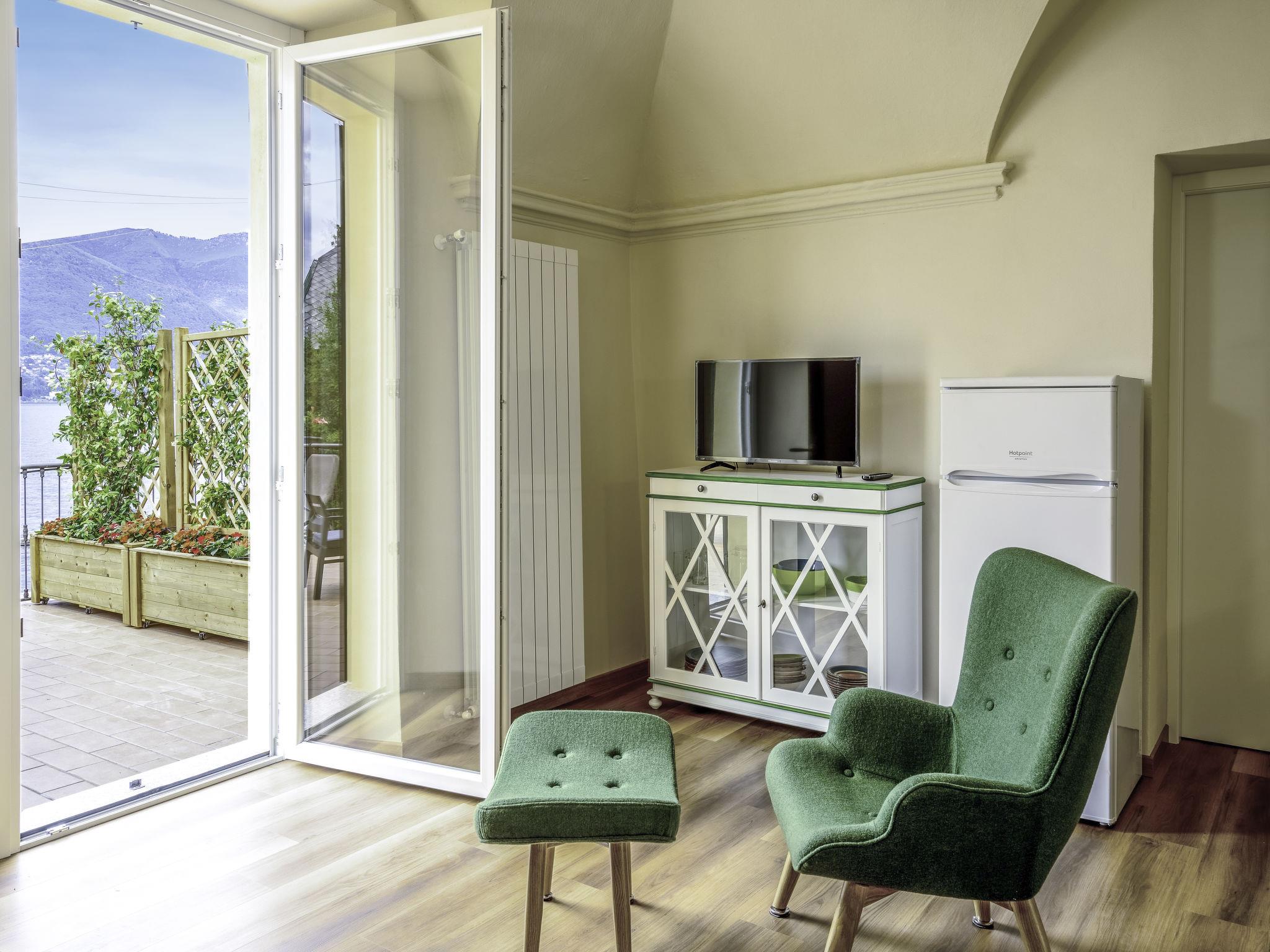 "Verde", 3-room apartment 60 m2 on 2nd floor. Fully renovated in 2020, comfortable furnishings: entrance hall. Living/dining room with 1 double sofabed and satellite TV. Exit to the terrace. 1 double bedroom. 1 room with 2 beds. Kitchenette (dishwasher, 4 induction hot plates, microwave, freezer, electric coffee machine). Shower/bidet/WC. Gas heating. Parquet floors. Terrace 25 m2. Terrace furniture. Very beautiful view of the lake. Facilities: washing machine, hair dryer. Internet (WiFi, free). The terrace is adjacent to that of apartment IT2082.105.2 and separated by flower boxes. IT012114C2DVJC2X2B