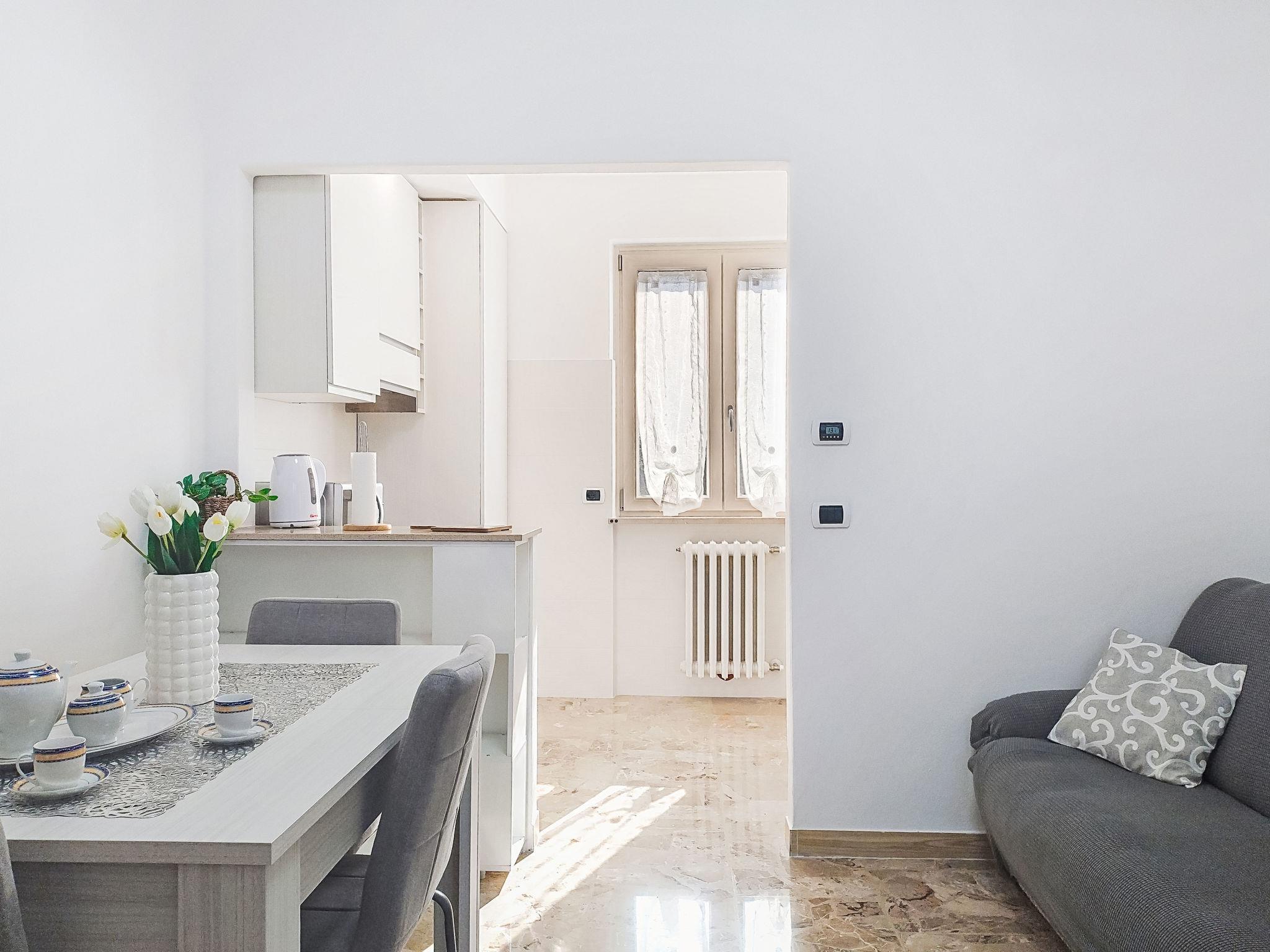 3-room semi-detached house 50 m2, on the upper ground floor. Renovated in 2025, practical and modern furnishings: entrance hall with air conditioning. Living/dining room with TV. 1 room with 1 double bed (160 cm). 1 small room with 1 bed and 1 pull-out bed. Kitchenette (4 induction hot plates, toaster, kettle, microwave, electric coffee machine). Shower/bidet/WC. Gas heating, air-conditioning. Heating available only from 01.10. to 30.04. Facilities: mosquito net, children's high chair, hair dryer. Internet (WiFi, free). Parking (1 car). Please note: non-smoking house. Private entrance, smoke alarm, fire extinguisher. IT012114C2MJQGY2X