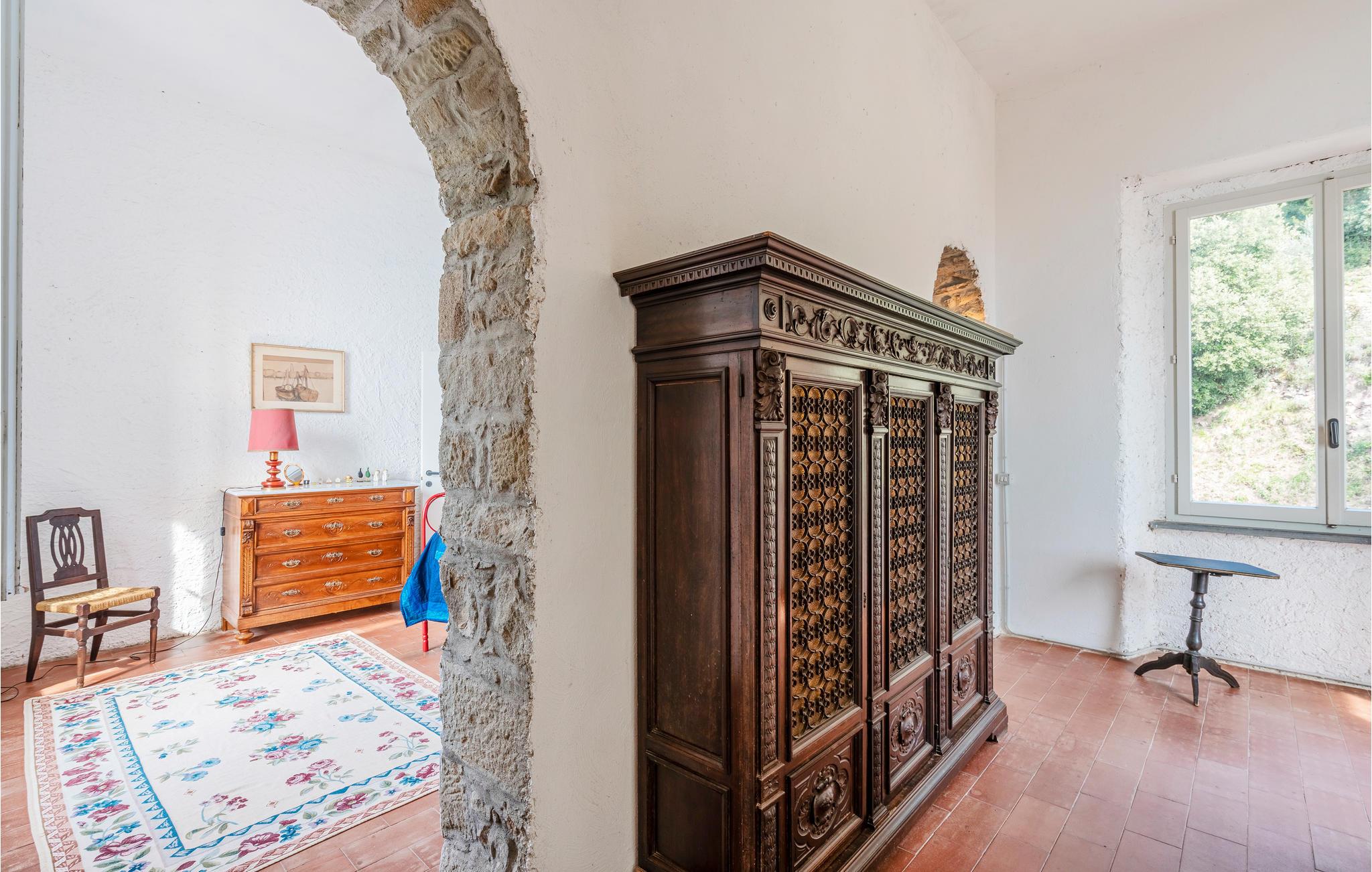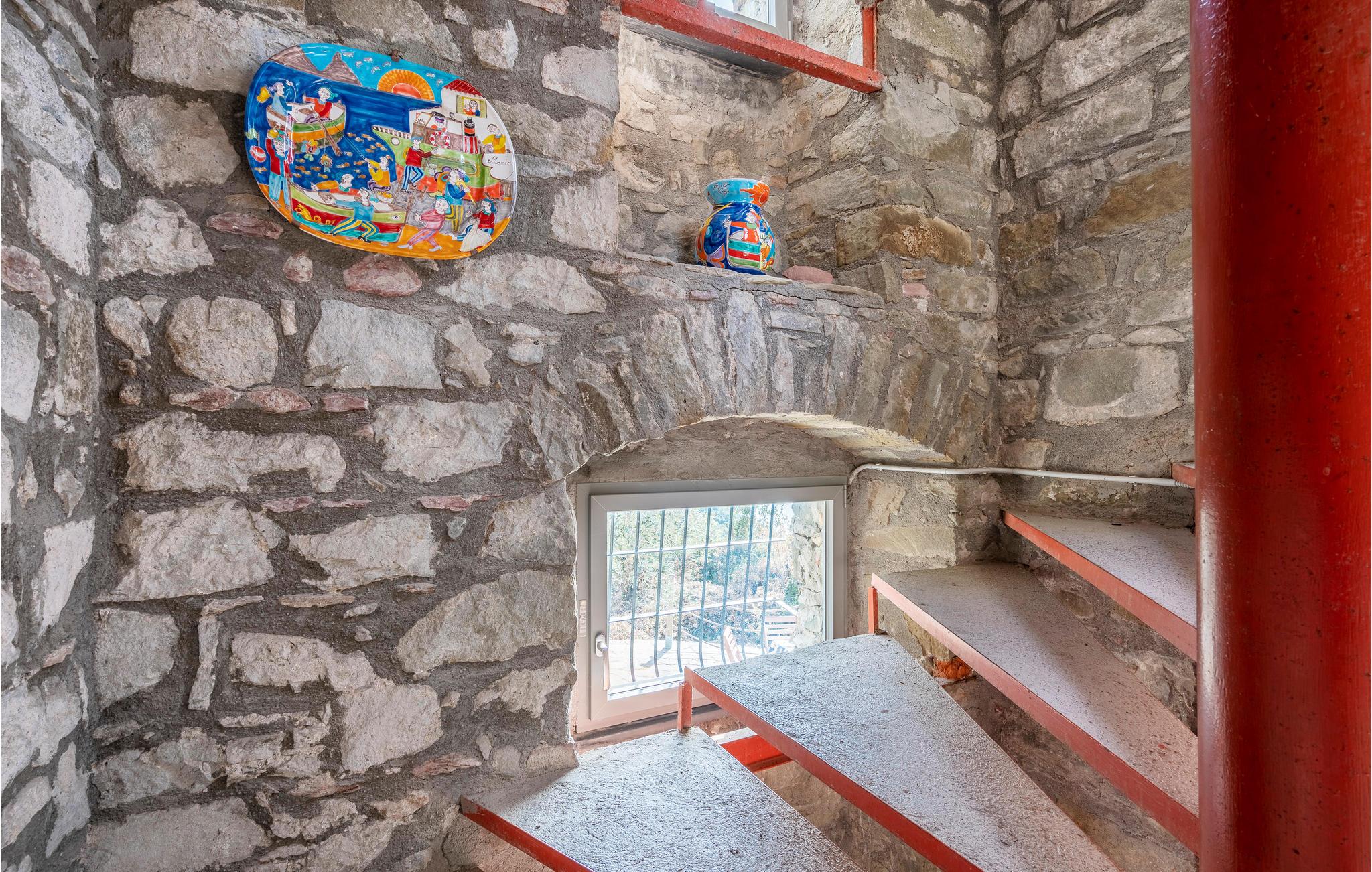 Dette charmende slot ligger i Nationalpark Cinque Terre med en betagende vid havudsigt, mindre end 15 km fra Portovenere. Omgivet af en mere end 20 hektar stor grund med vinbjerge og olivenlunde. Kun få skridet fra huset ligger vandrestien A1 Appennino Ligure, der forbinder regionen med både Toskana og Frankrig. Byerne Monterosso al Mare, Vernazza og Riomaggiore kan nås via bådforbindelse fra Portovenere. Husets ene side i stuplan bliver af og til beboet af ejer. Bemærk venligst: tilkørsel over en ca. 1, 3 km lang grusvej, med en højdeforskel på ca. 120 m, der kun kan passeres med et terrængående køretøj. Ankomst kun mellem klokken 17.00 og 20.00.