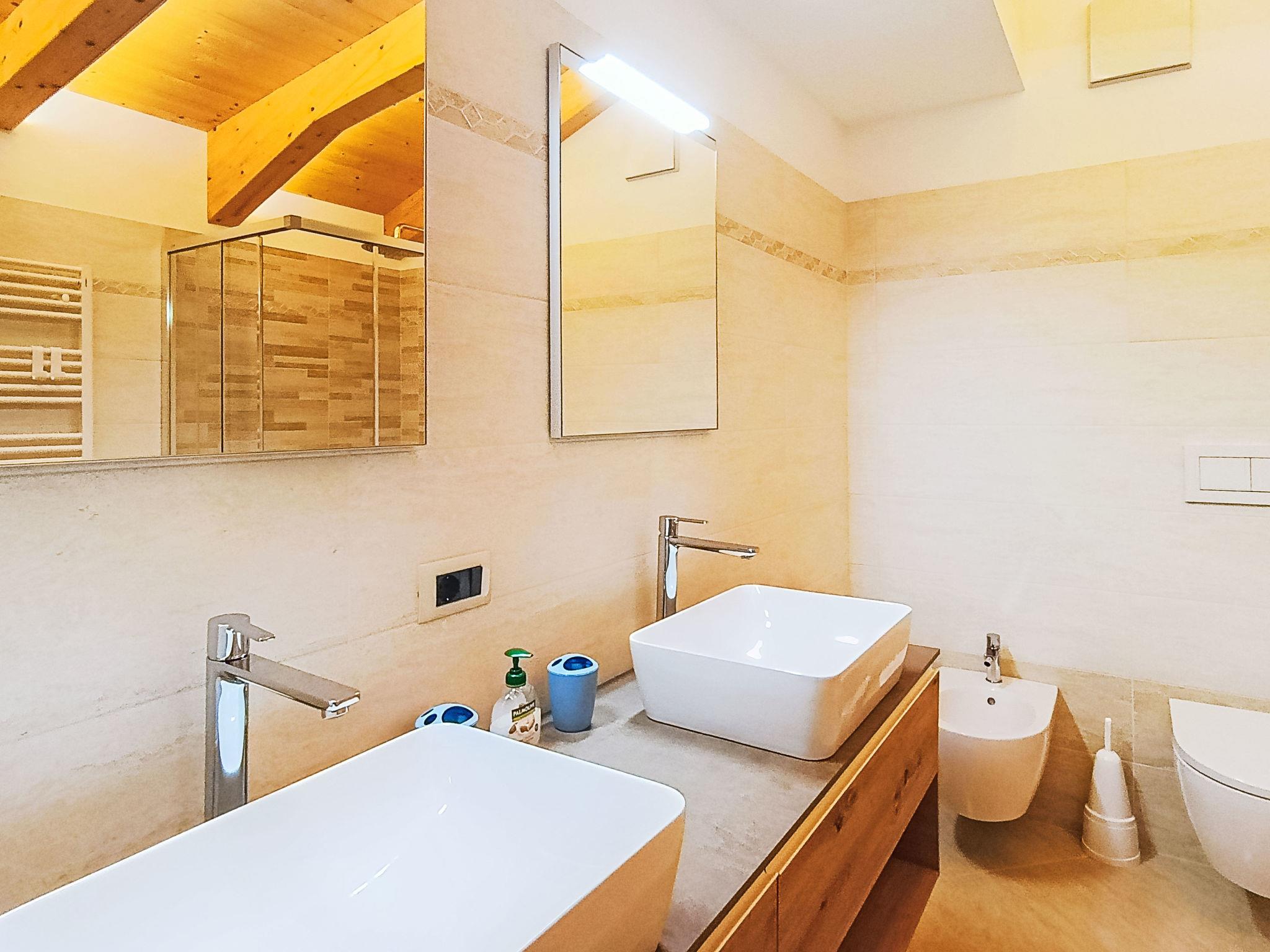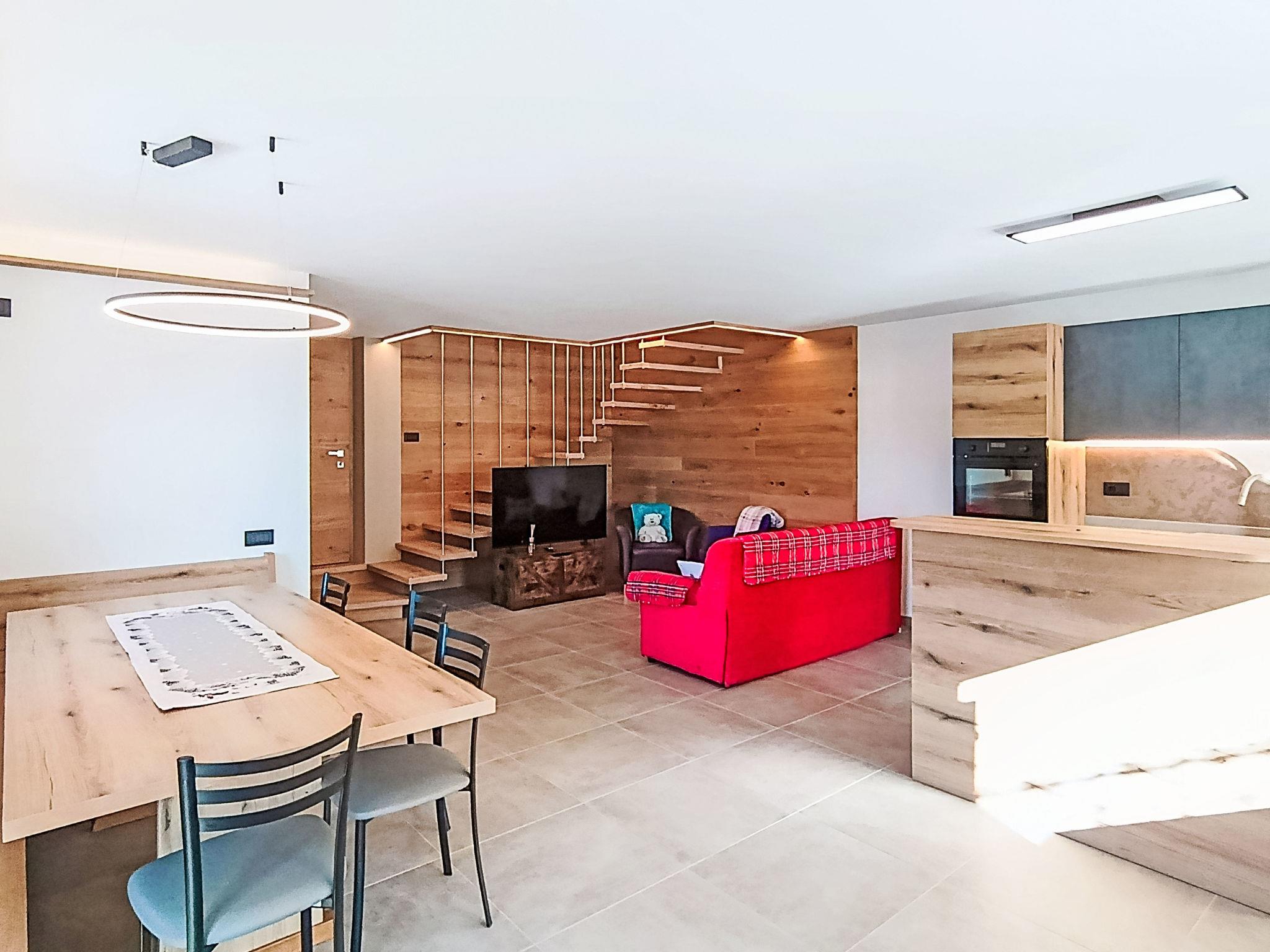"Valeria", 5-room maisonette 130 m2. Spacious and bright, modern and cosy furnishings: living/dining room with TV. Exit to the balcony. Large kitchen (oven, dishwasher, 5 induction hot plates, toaster, kettle, freezer) with bar. Exit to the balcony. Bathroom. Floor heating. Upper floor: 1 room with 2 beds. Exit to the balcony. 1 room with 2 beds. 1 double bedroom. 1 double bedroom with hand-basin and shower/bidet/WC. Shower/bidet/WC, double hand-basin. 2 large balconies. Terrace furniture, sitting area. Very beautiful panoramic view of the mountains and the ski run. Facilities: washing machine, iron, baby cot for up to 2 year olds, hair dryer. Internet (WiFi, free). Parking (2 cars). Please note: non-smokers only. Fire extinguisher, no lift. IT022250C2VQXVLD8J