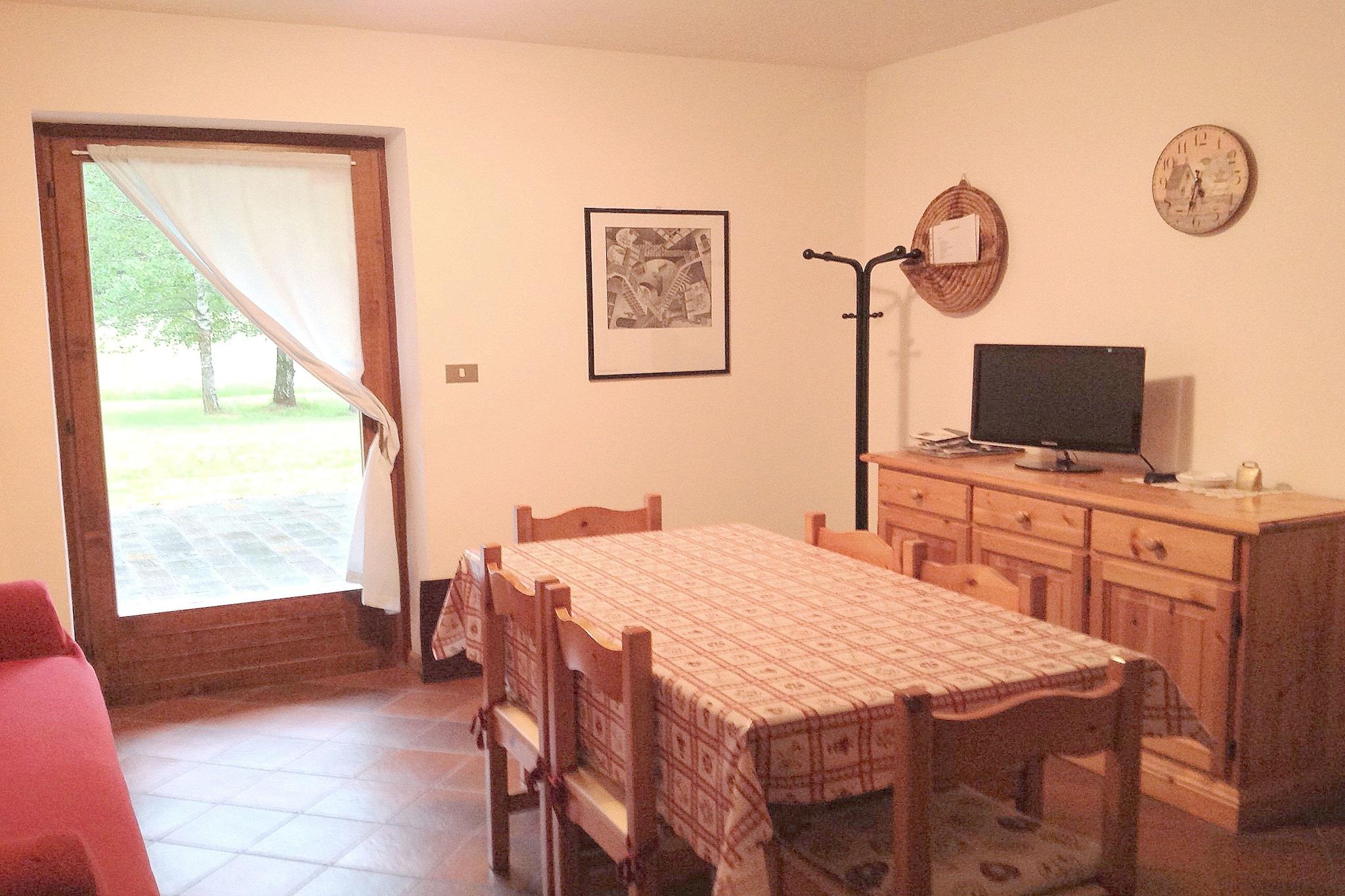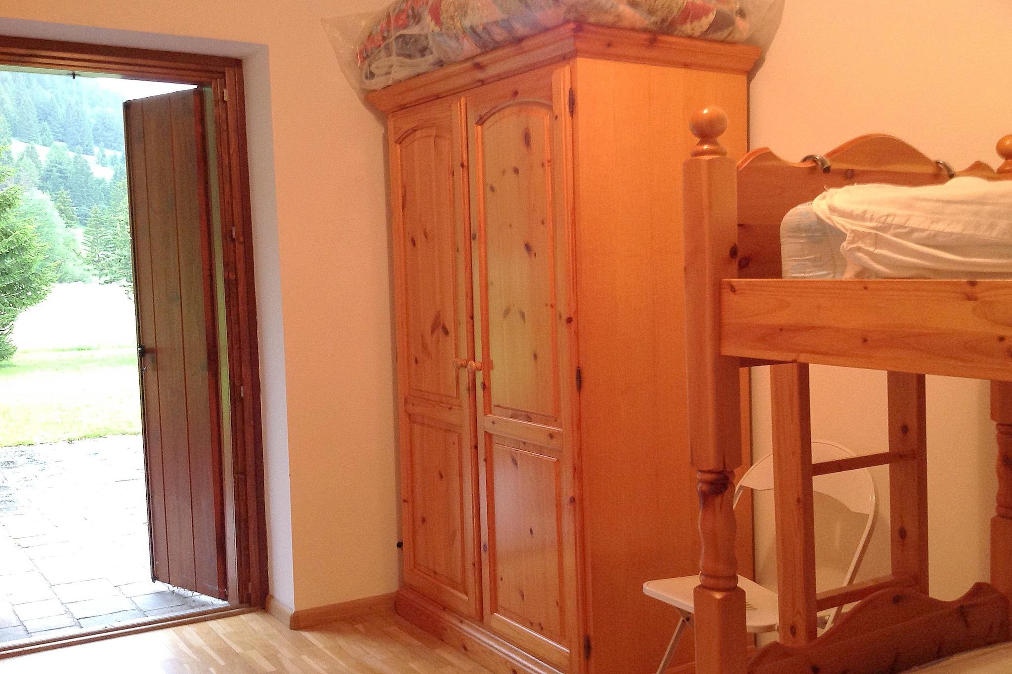 Ground floor: (open kitchen(oven), Living/diningroom(double sofa bed), bedroom(double bed), bedroom(bunk bed), bathroom(shower, washbasin, toilet, washing machine), heating(central)) ski storage(reachable from the outside), garage, terrace(private), garden(shared with other guests), parking