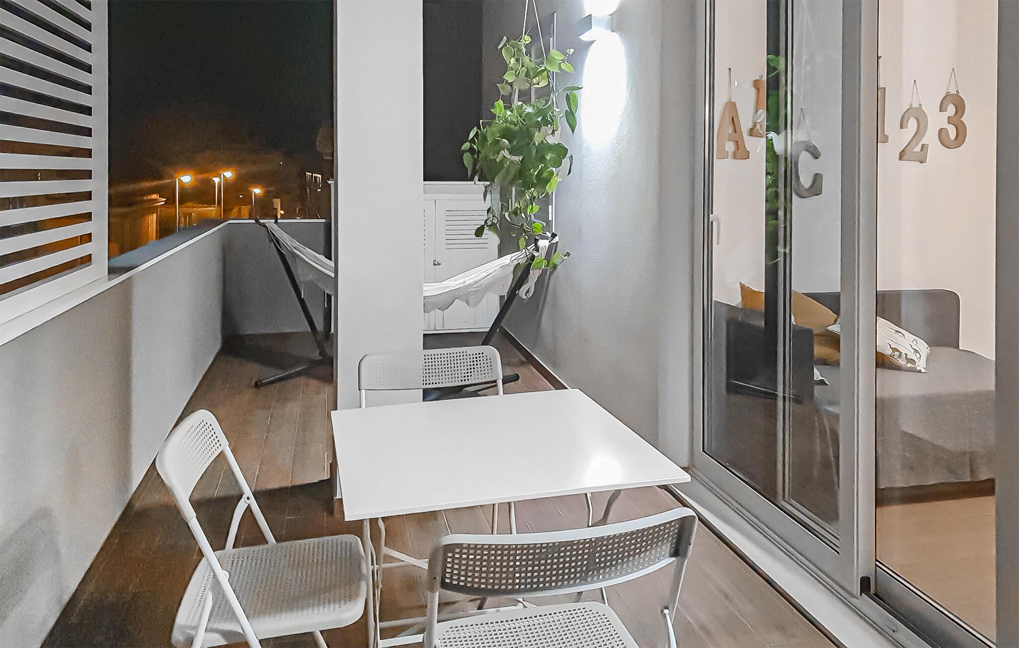 Denne elegante og velindrettede ferielejlighed ligger på 1. sal. Her kan I slappe af med familien mellem alle de spændende udflugter, der venter jer. Nyd en dampende varm kop kaffe på altanen og få et glimt af det blå hav. Planlæg dagens udflugter og aktiviteter til den kommende feriedag.
