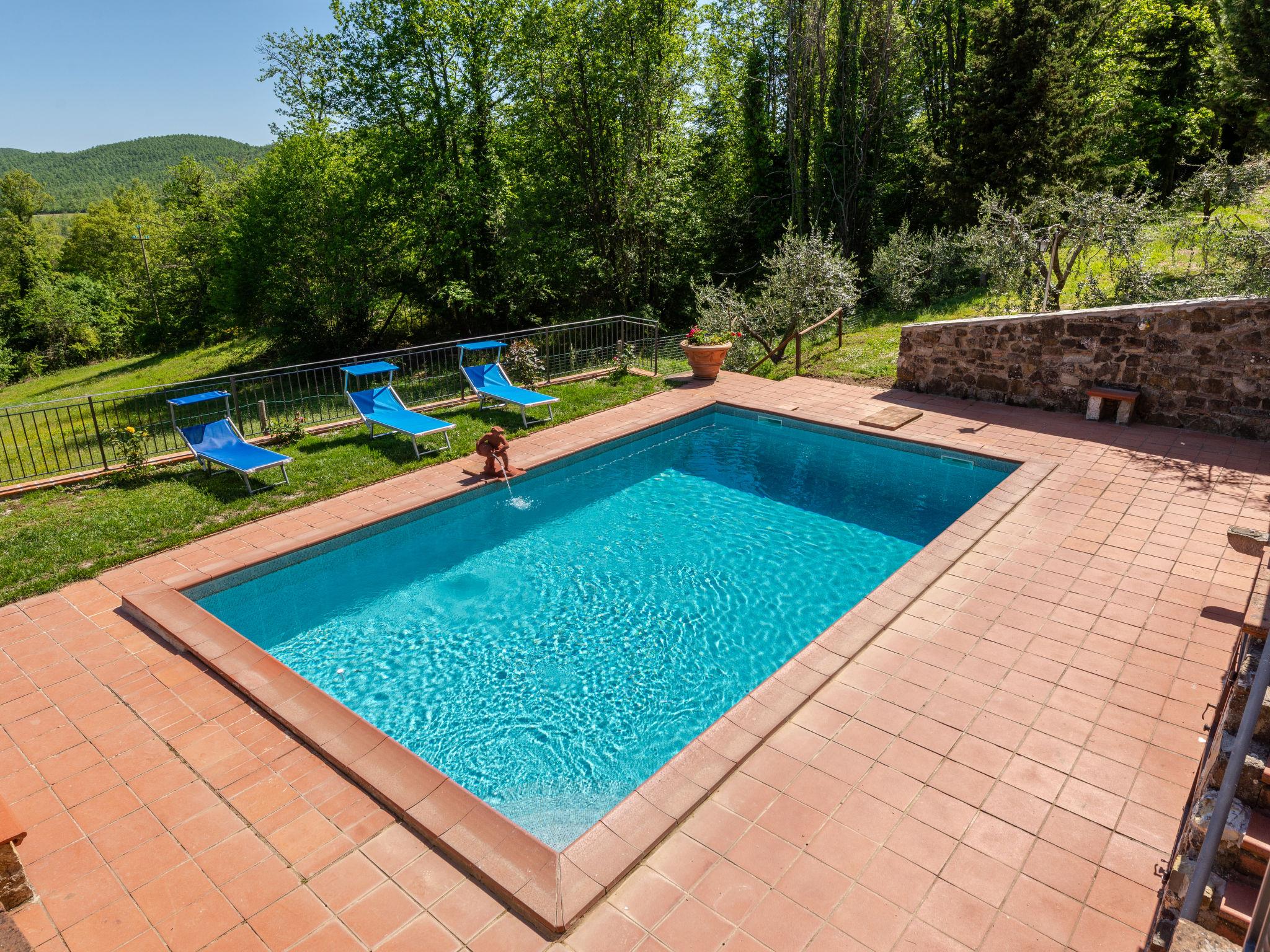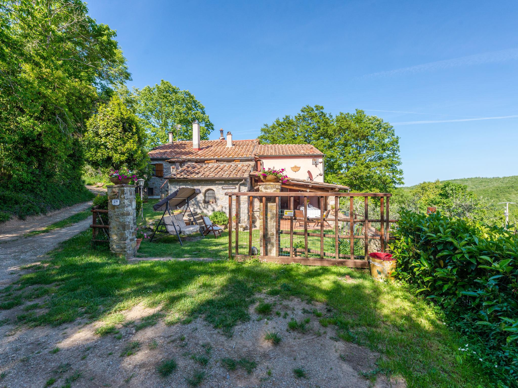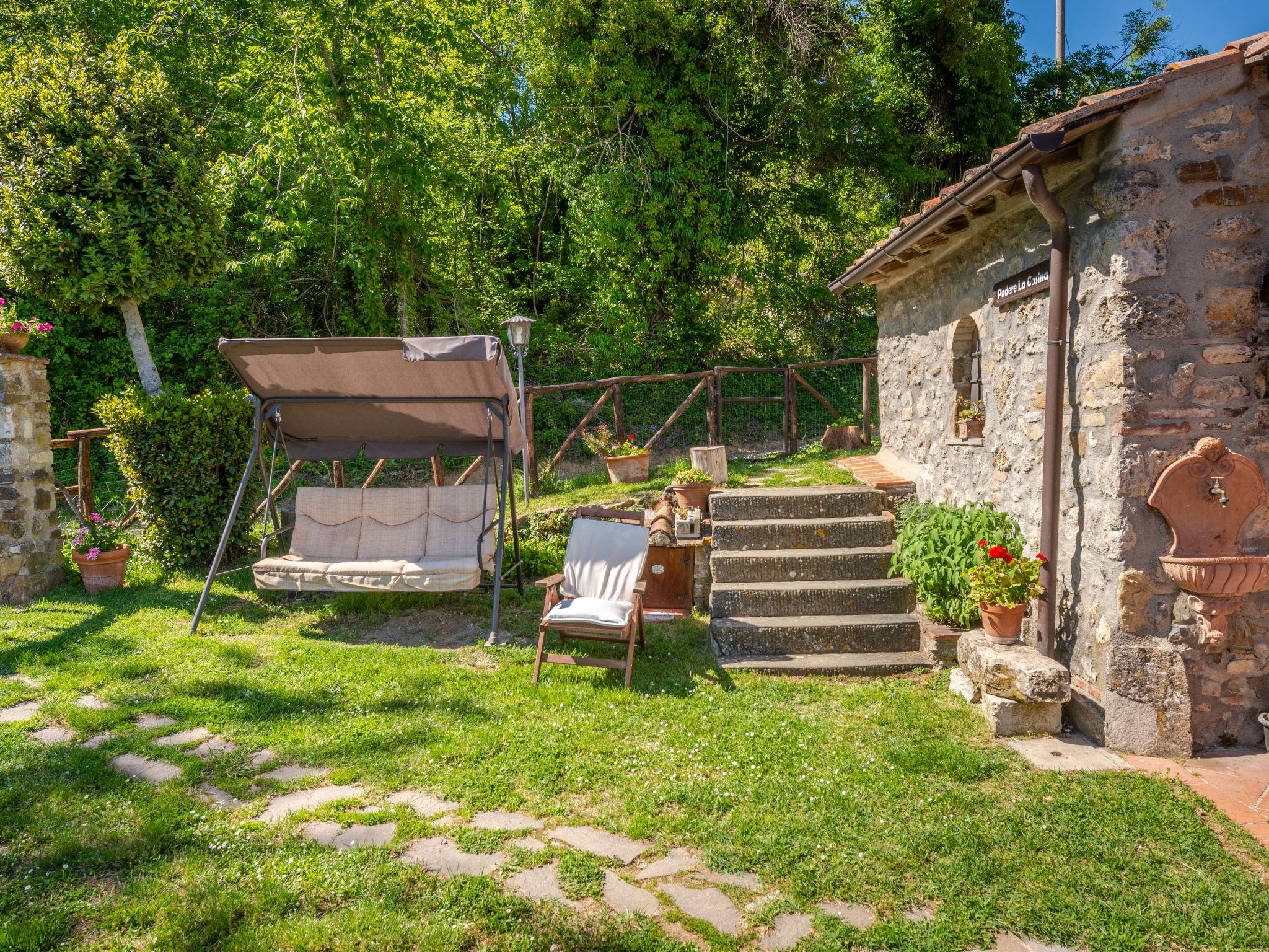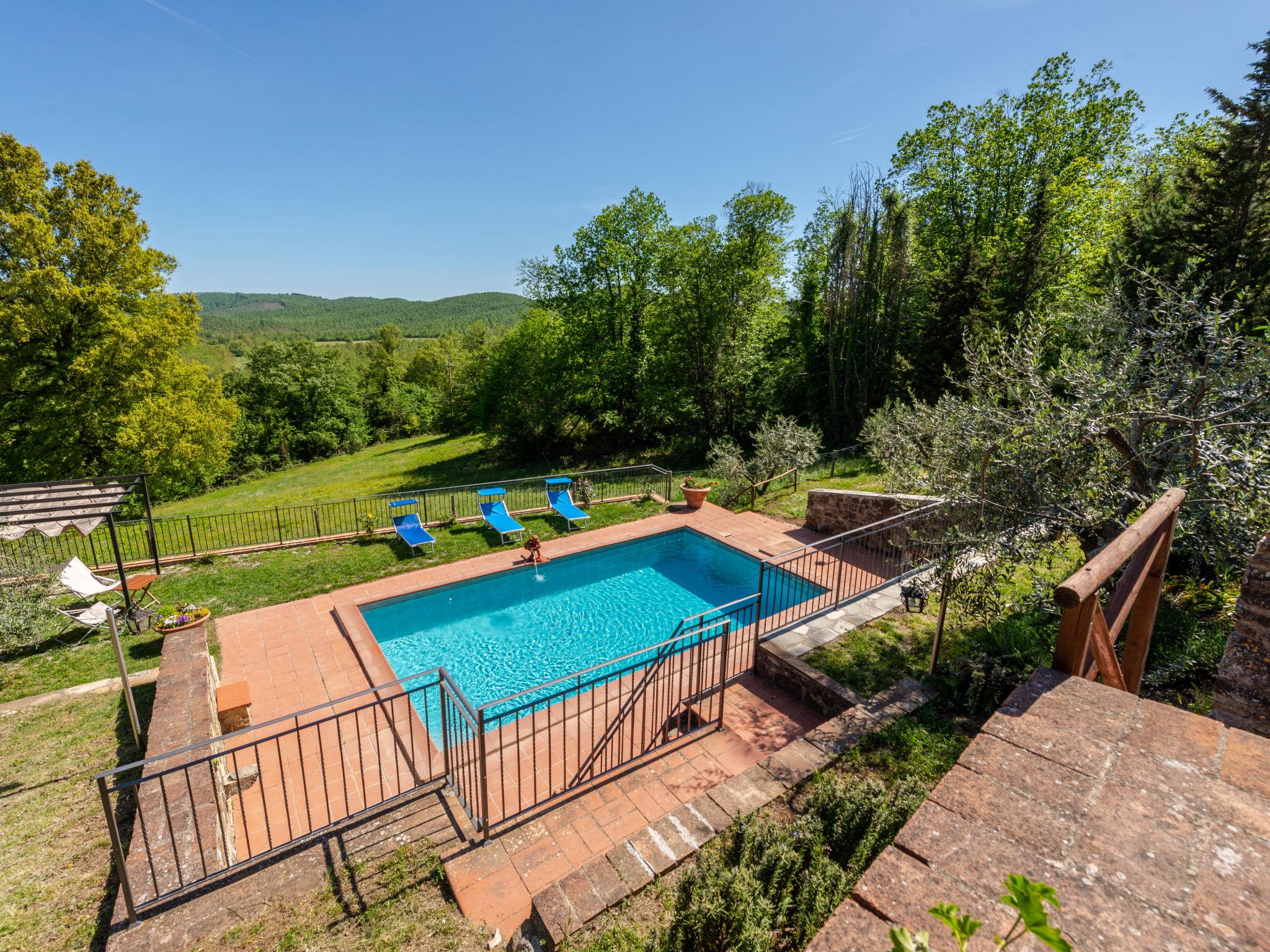 Rustic, comfortable cottage "La Casina", 2 storeys, terraced, surrounded by trees and fields. In the hamlet Montegusciani with 4 houses 4 km from the centre of Prata, 7 km from the centre of Boccheggiano, 17 km from the centre of Massa Marittima, on a slope, 25 km from the lake, in the countryside, in the woods. Private: property 350 m2 (fenced), terraced garden with trees, meadow, swimming pool (8 x 4 m, depth 140 - 180 cm, seasonal availability: 15.May. - 30.Sep.). Outdoor shower, pool maintenance by the owner/gardener. In the house: washing machine. 800 m long bumpy motor access (via unmade road). Parking (for 3 cars). Shop 4 km, grocery 4 km, restaurant 4 km, bar 4 km, bus stop 2.5 km, railway station "Follonica" 35 km, sandy beach "Follonica" 35 km. Riding stable 9 km, walking paths from the house 10 m. Nearby attractions: San Galgano Abbey 16 km, Giardino dei Suoni 5 km. Well-known lakes can easily be reached: Accesa 23 km. Hiking paths: Mountain-bike 9 km.
